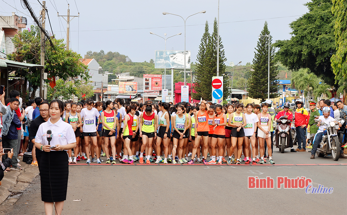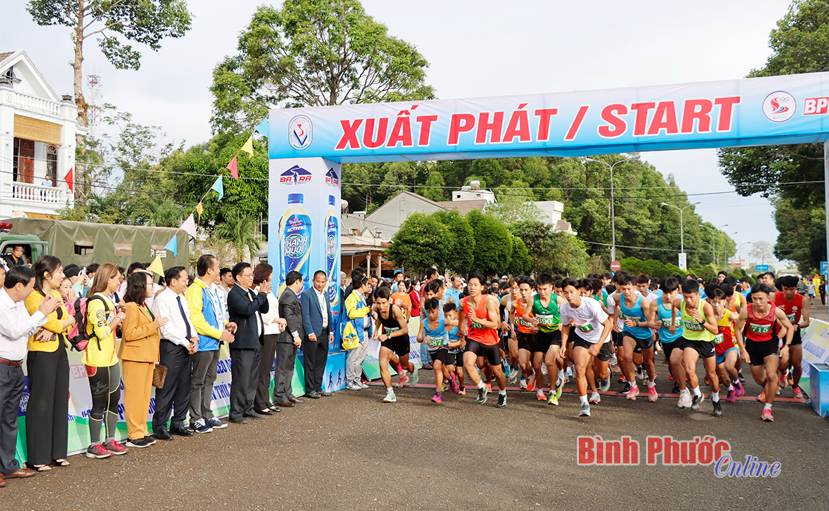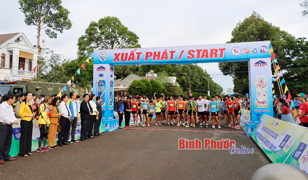 Các vận động viên chuẩn bị và xuất phát tại Tượng đài Phước Long chiến thắng