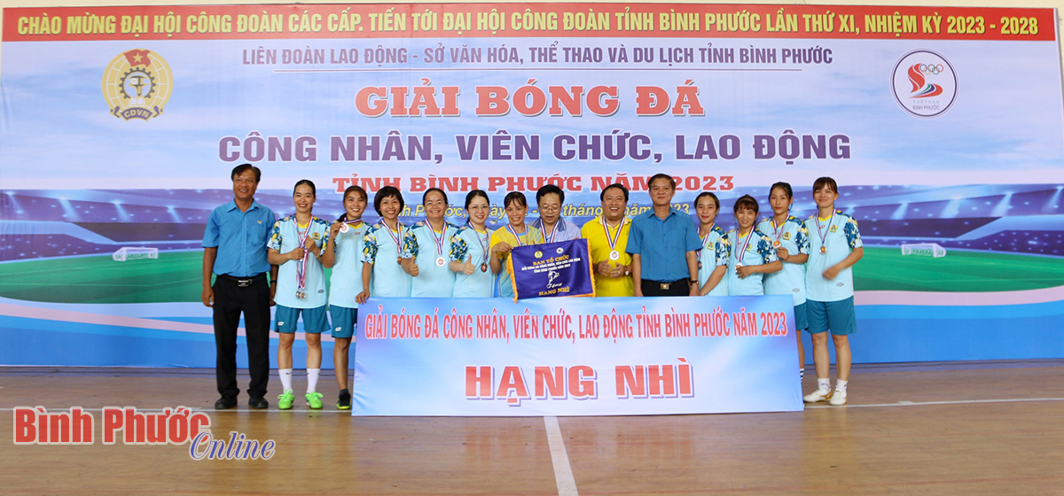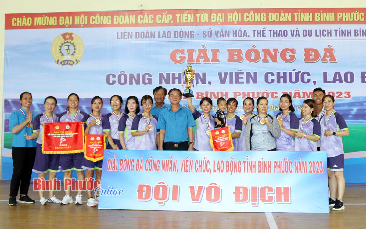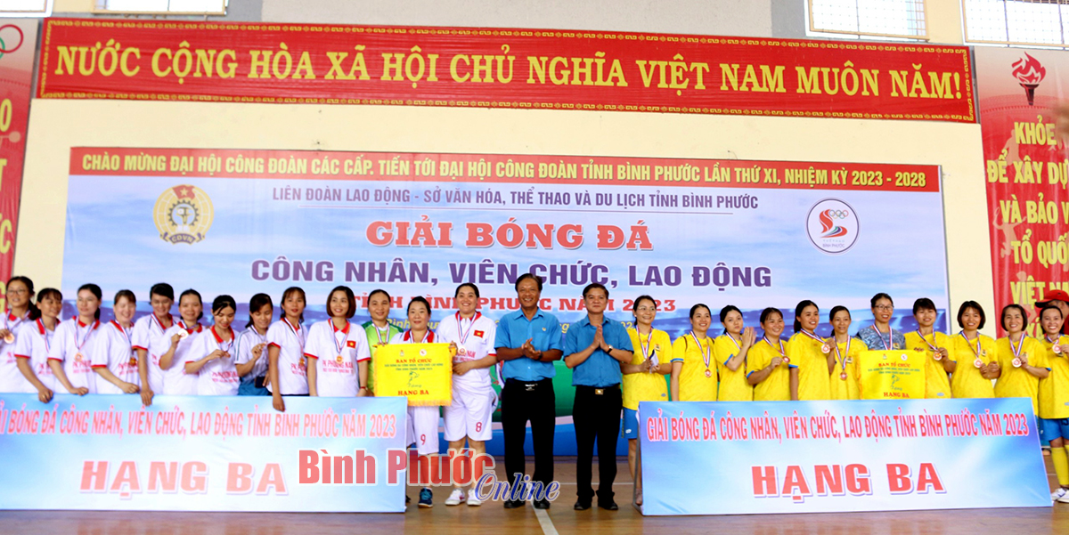 Kết thúc giải đấu, ở nội dung bóng đá nữ, Công đoàn Viên chức tỉnh đoạt ngôi vô địch, giải nhì thuộc về đội bóng LĐLĐ huyện Phú Riềng, đội Công đoàn ngành y tế và LĐLĐ huyện Bù Gia Mập đoạt giải ba, đội bóng Công đoàn Công ty cổ phần cấp thoát nước Bình Phước đoạt giải phong cách. Cầu thủ Giang Thị Hoài Thanh, đơn vị Công đoàn Viên chức tỉnh đạt danh hiệu cầu thủ xuất sắc nhất giải, danh hiệu vua phá lưới thuộc về cầu thủ Võ Thị Thúy Kiều, Công đoàn Viên chức tỉnh, cầu thủ Võ Thị Thu Hương đạt danh hiệu thủ môn xuất sắc nhất.