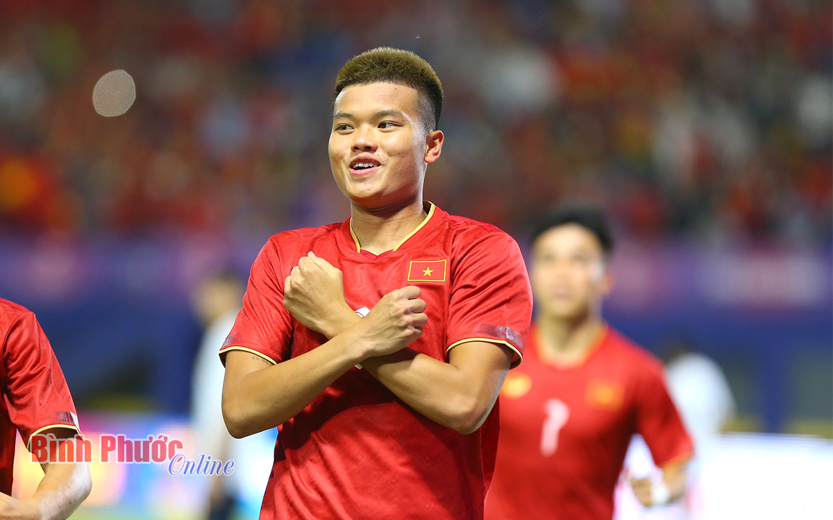 Tiền đạo Văn Tùng (9), tác giả bàn mở tỷ số cho U22 Việt Nam ngay phút thứ 2 - Ảnh: Q.T