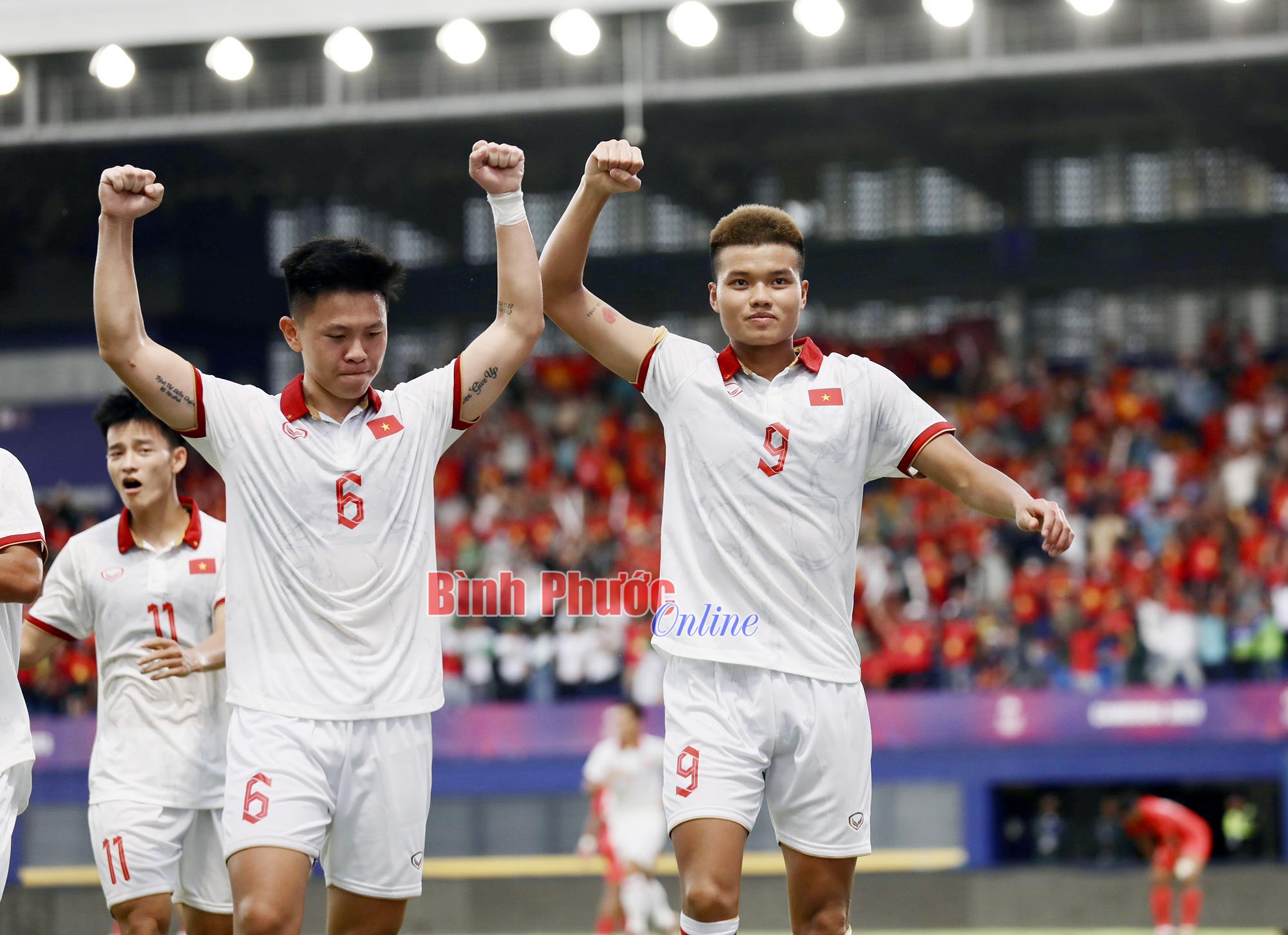 Tiền đạo Văn Tùng (áo số 9) tiếp tục lập công cho U22 Việt Nam