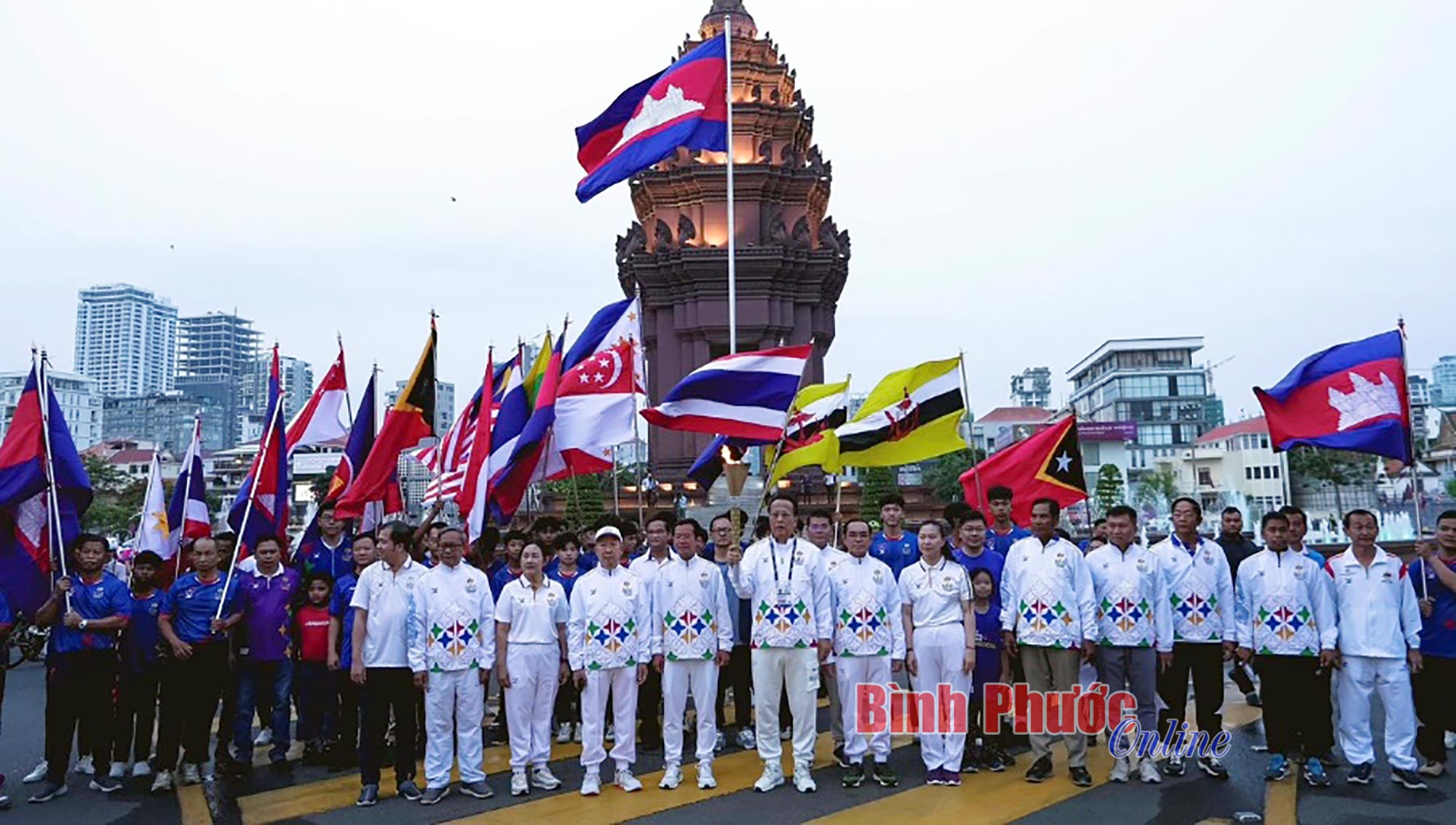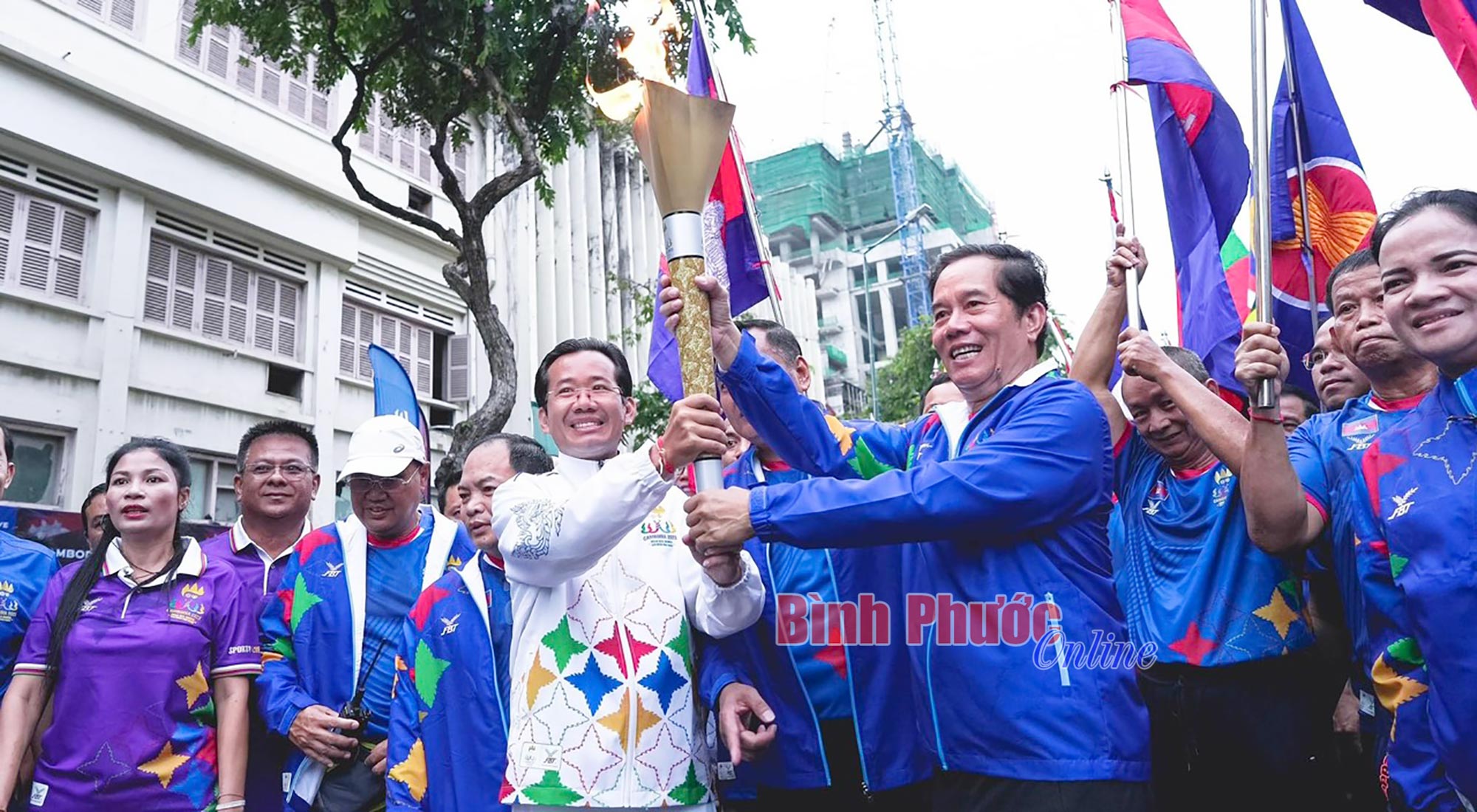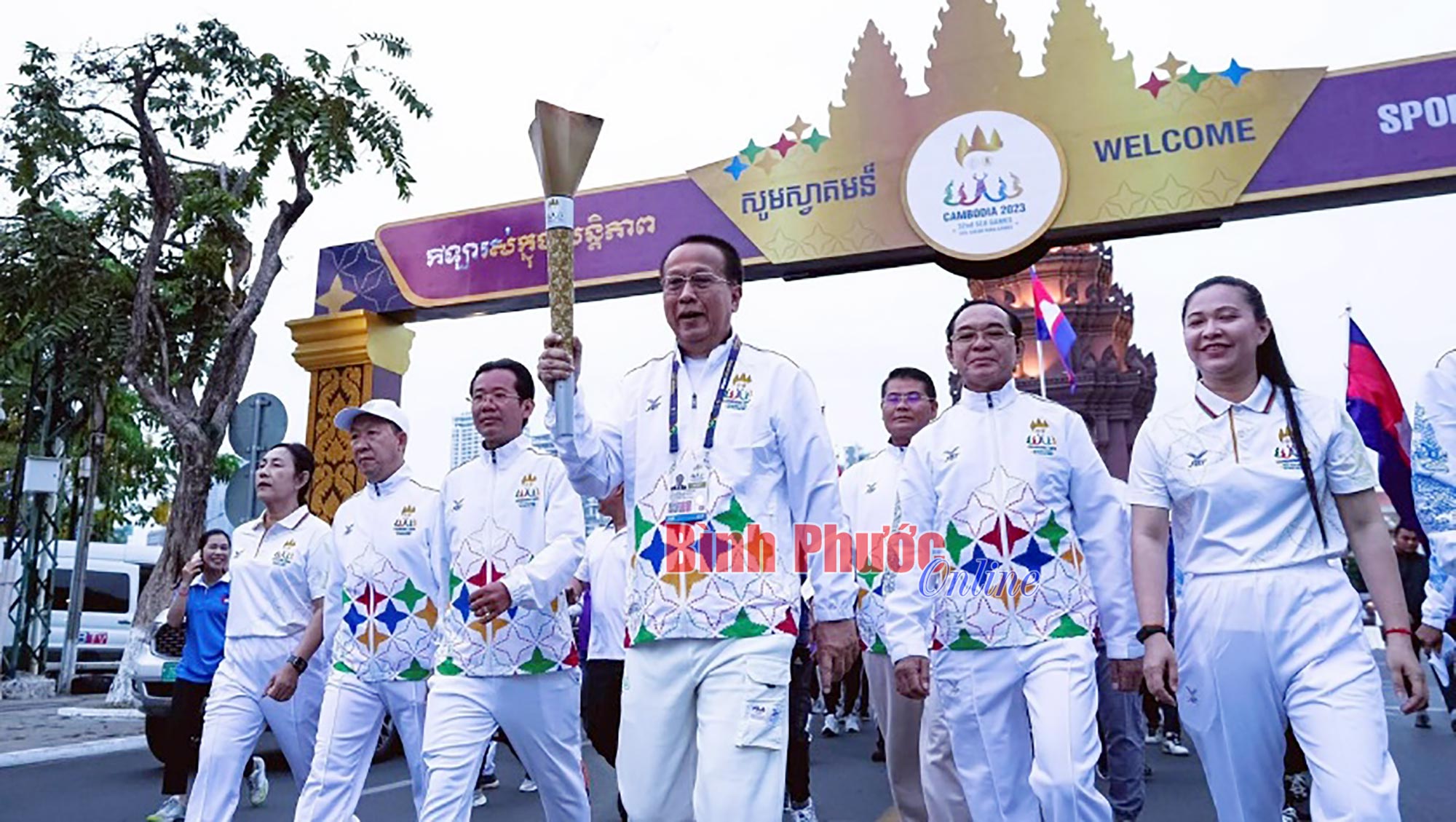Ngọn đuốc thiêng được diễu hành qua 5 thành phố tổ chức SEA Games 32 của đất nước Campuchia