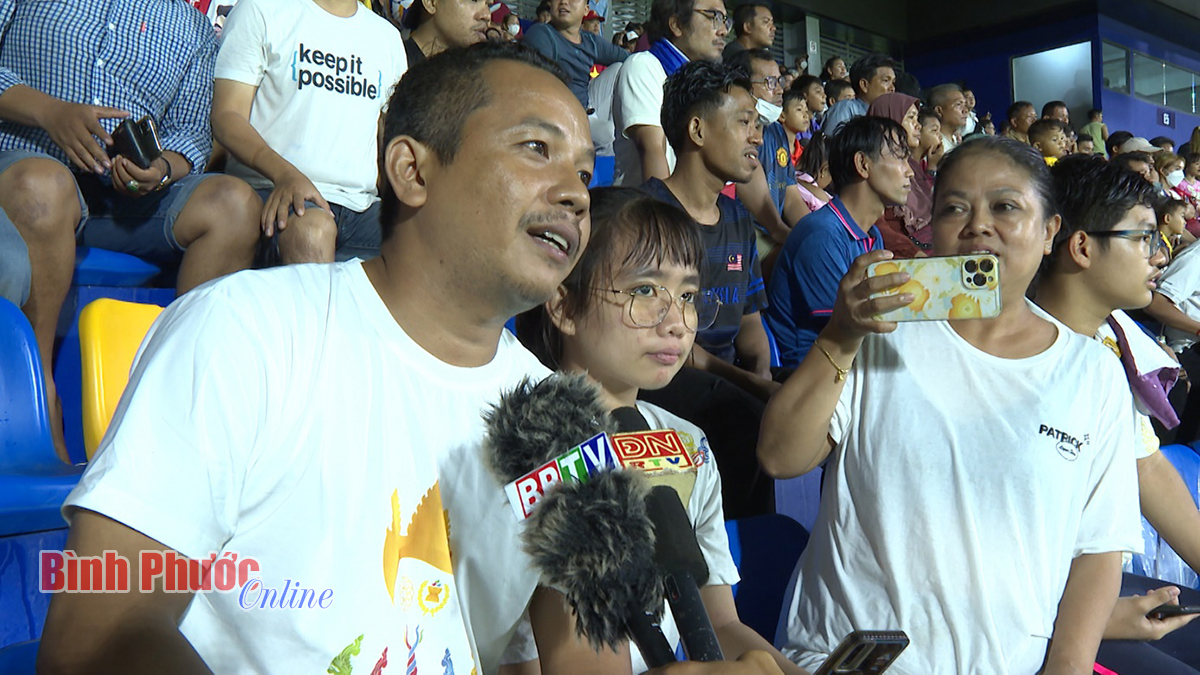 Anh Kear Janith, người dân Thủ đô Phnom Penh, Campuchia bày tỏ: “Tôi rất yêu thích thể thao. Vì thế, bất kể là vận động viên Campuchia hay nước nào thi đấu, chúng tôi vẫn đến cổ vũ. Qua đó cũng để mọi người thấy được cổ động viên Campuchia nồng nhiệt thế nào”.