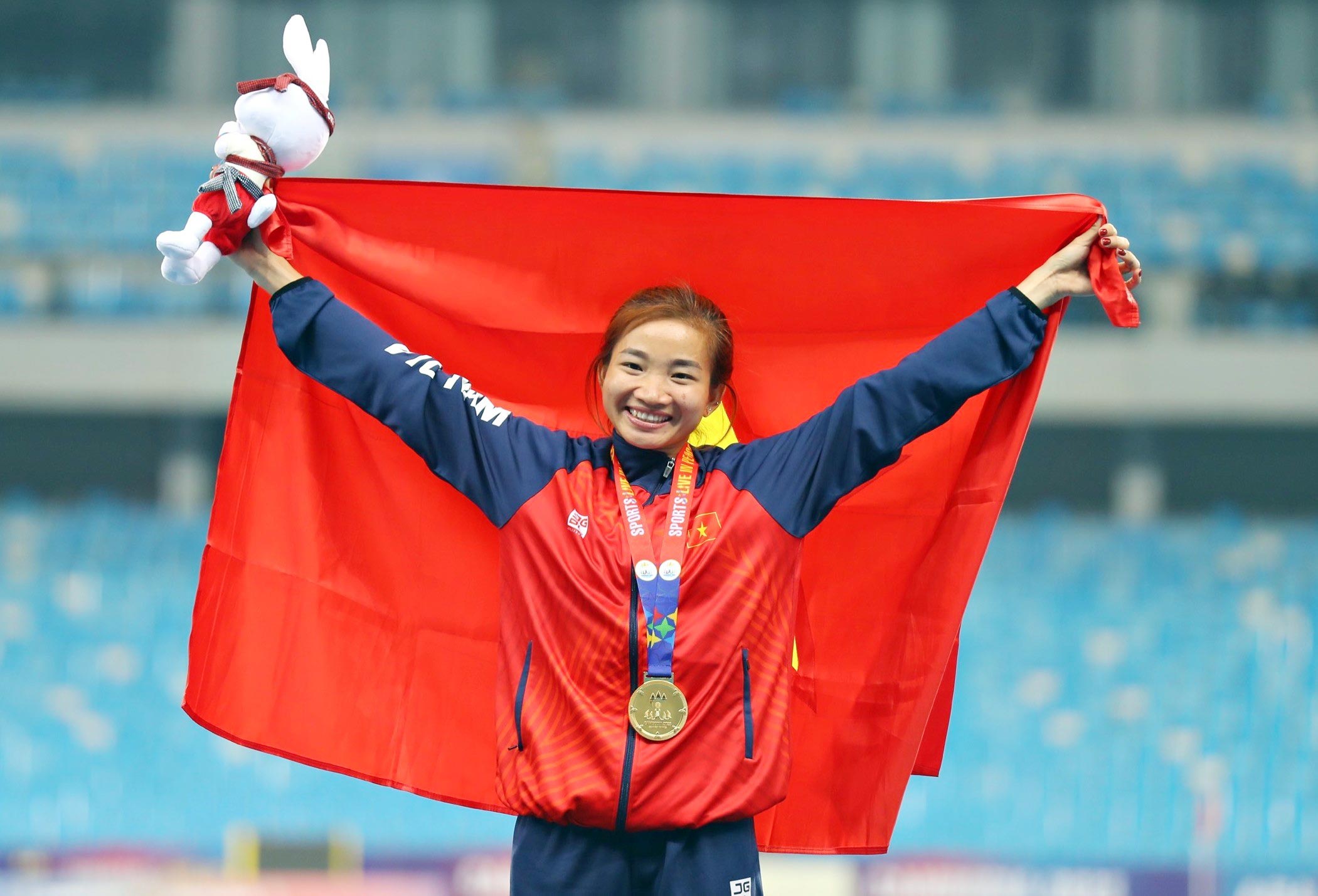 Với 4 chiếc huy chương vàng, Nguyễn Thị Oanh đã đóng góp 1/3 số huy chương vàng của điền kinh Việt Nam tại SEA Games 32. Ảnh: Vietnamnet