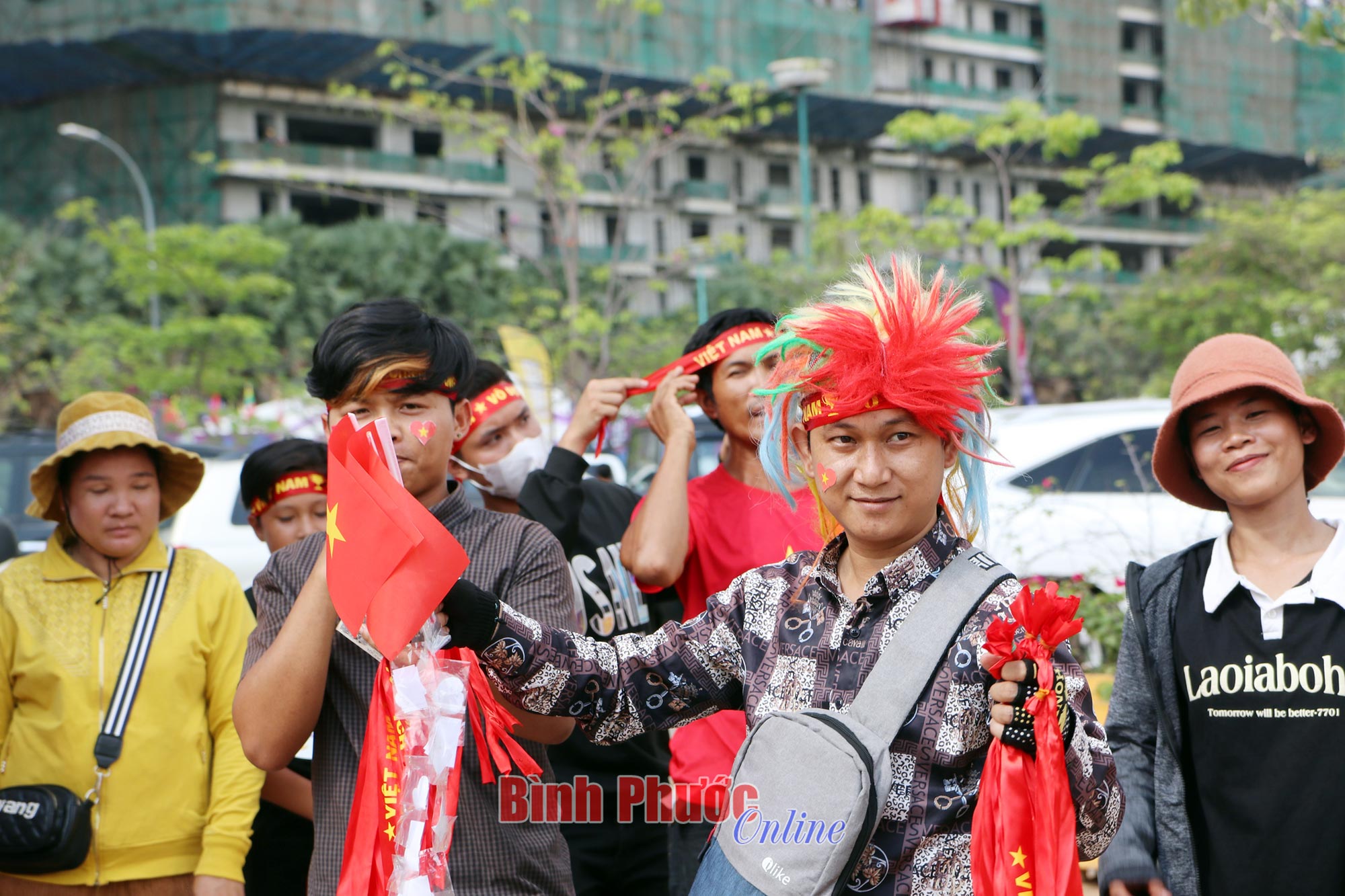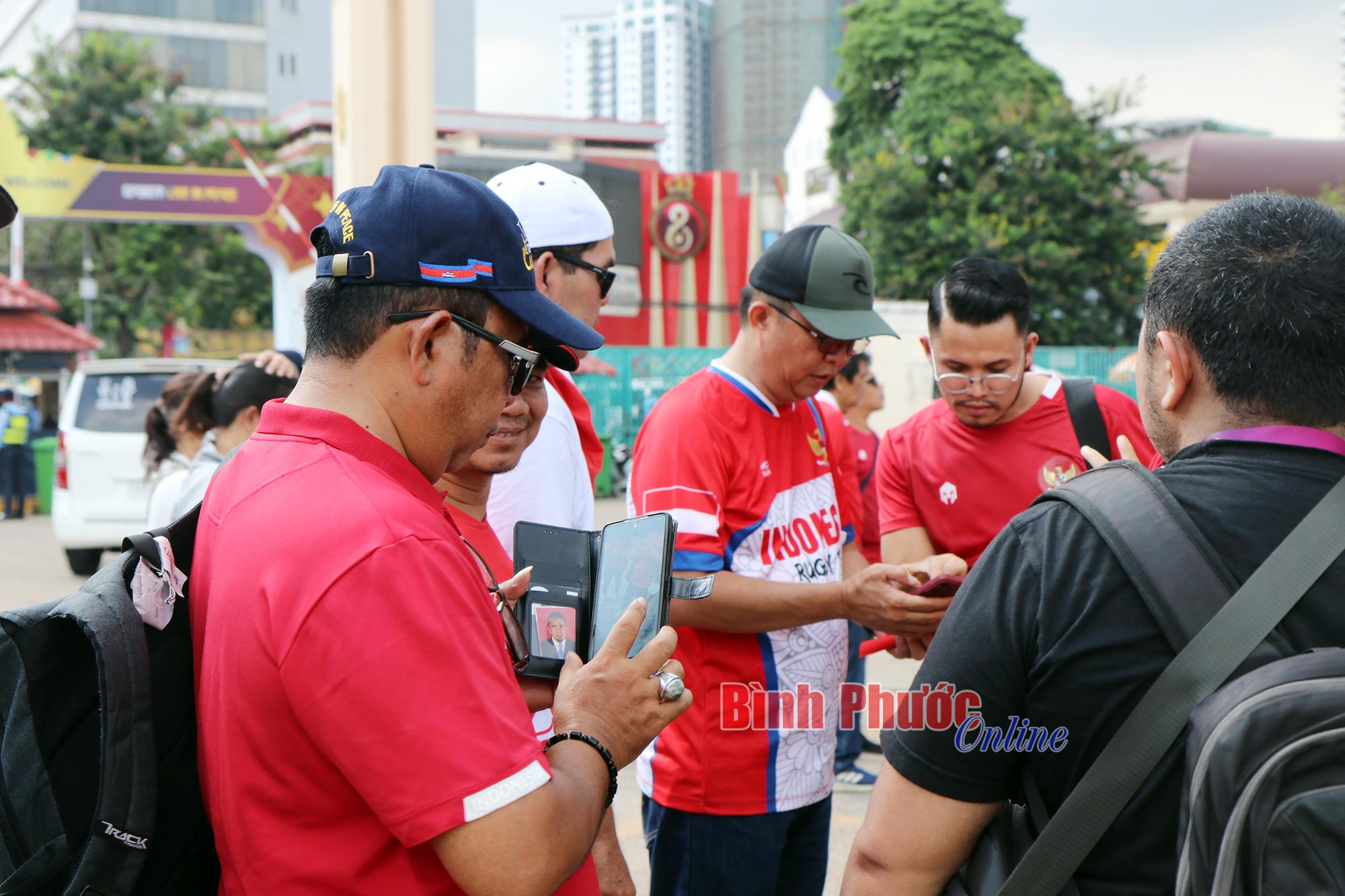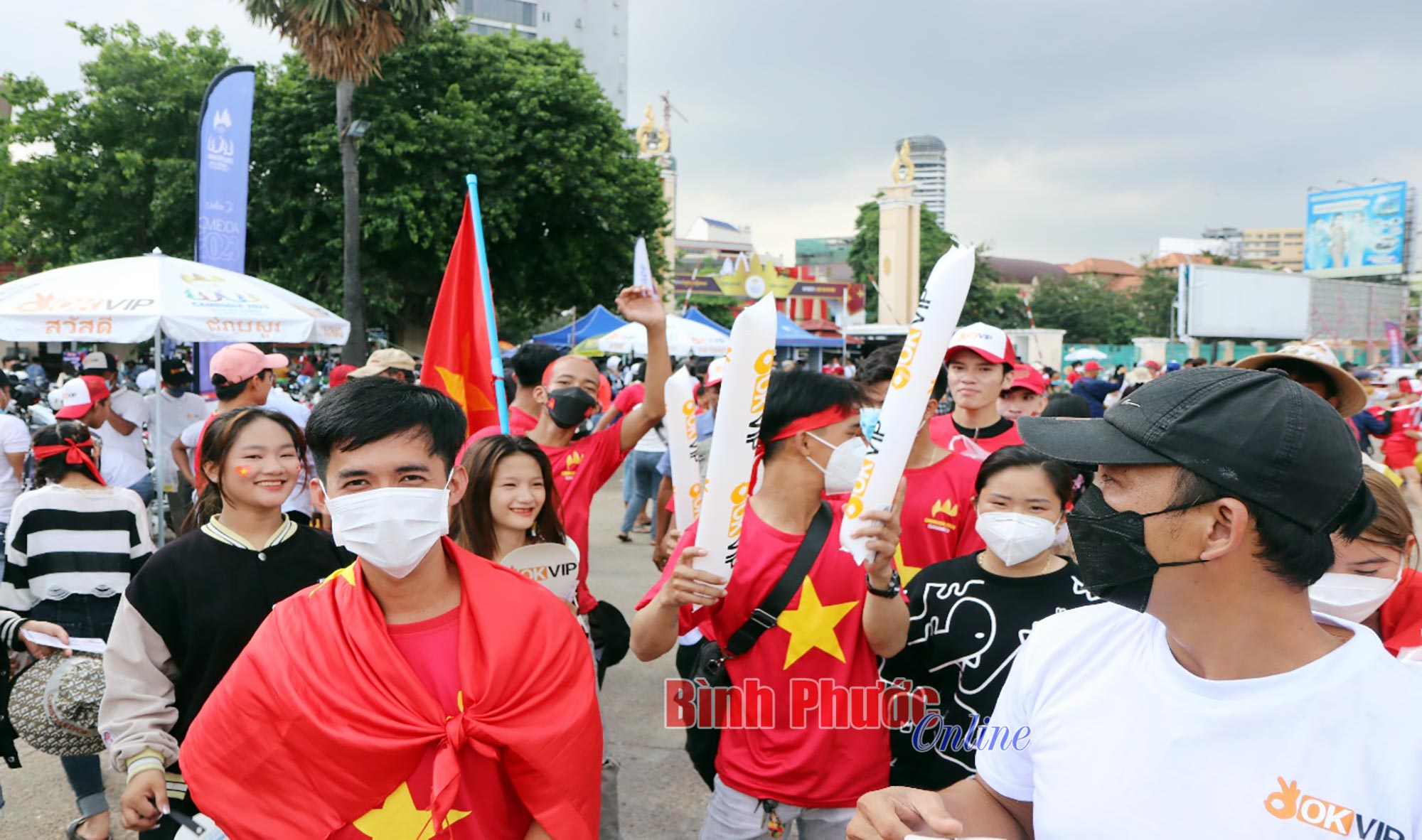 Ngay khi trước giờ bóng lăn, để “tiếp lửa” cho thầy trò Philippe Troussier, cổ động viên Việt Nam đã nhuộm đỏ sân vận động Olympic, thủ đô Phnom Penh - Campuchia.