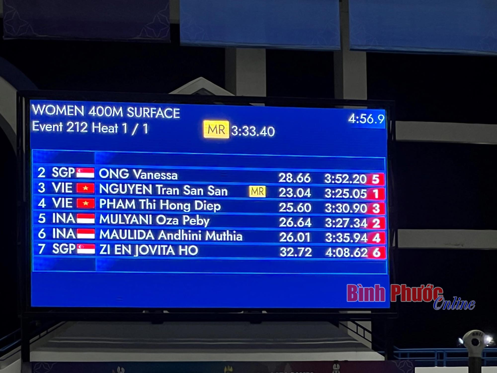 Đáng chú ý, Nguyễn Trần San San năm nay chỉ mới 16 tuổi đã thiết lập kỷ lục SEA Games mới với thành tích 03:25:05