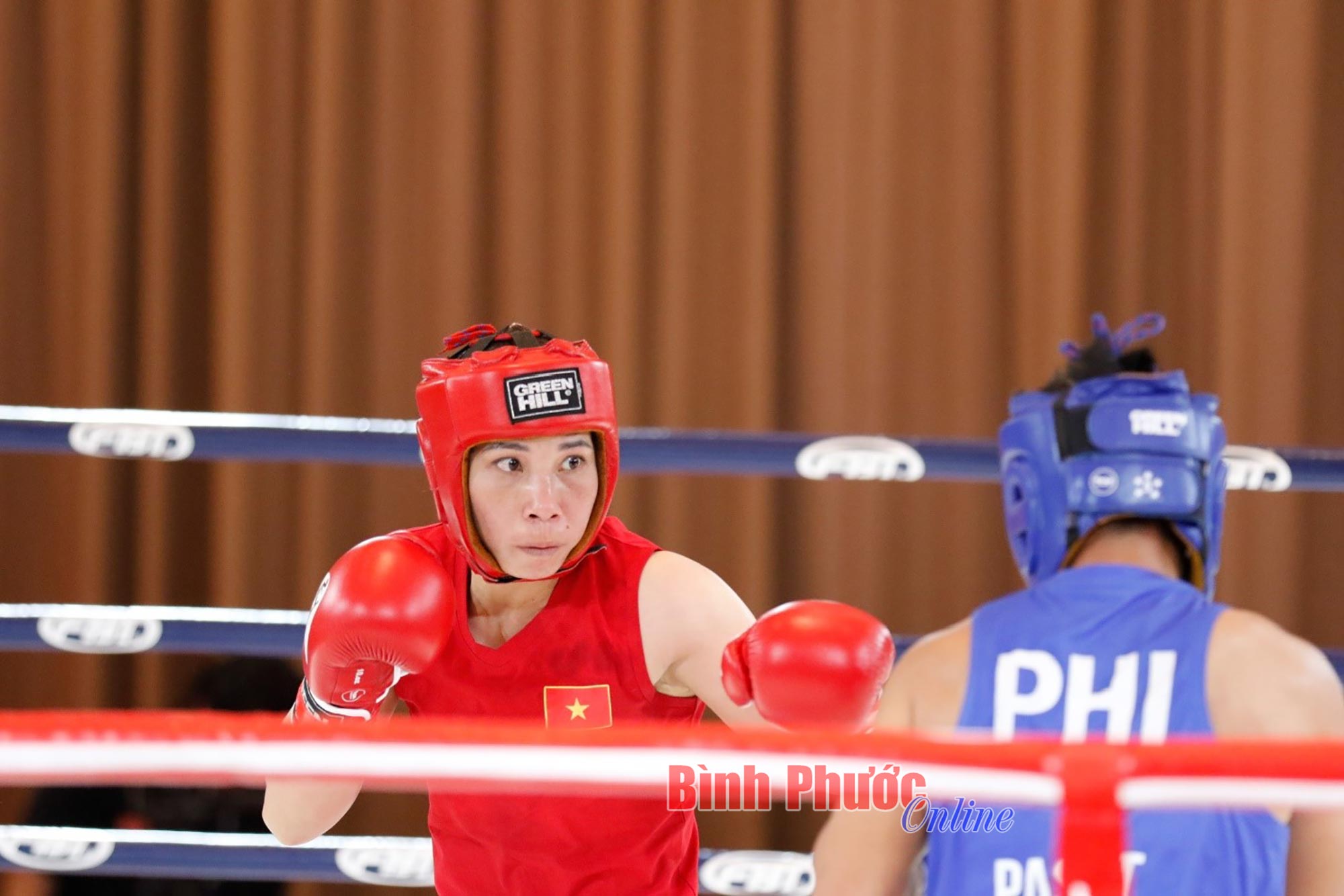 Võ sĩ Hà Thị Linh thắng võ sĩ Philippines trong trận chung kết để đoạt huy chương vàng hạng cân 60-63kg.