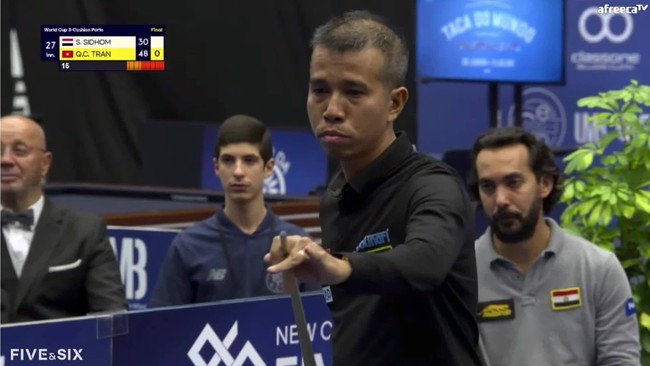 Trần Quyết Chiến đang là cơ thủ số một Việt Nam, và đang xếp hạng 10 thế giới. Đối thủ của anh ở nội dung carom 3 băng tại Porto World Cup này là cơ thủ xếp trên 2 bậc đến từ Ai Cập, Sameh Sidhom. Bước vào đầu trận chung kết, Sameh Sidhom đã tận dụng lợi thế đề-pa để ghi 5 điểm và vươn lên dẫn trước với tỷ số 7-2.