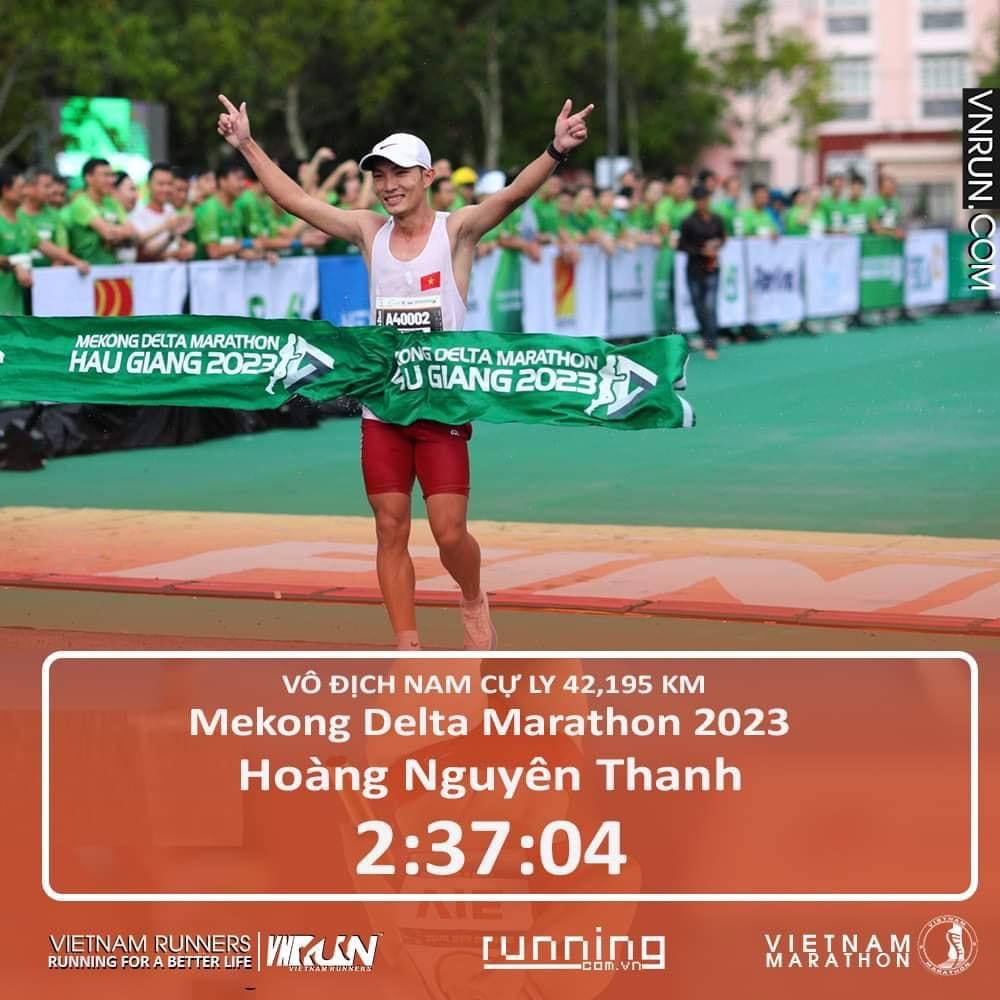 Hoàng Nguyên Thanh, người từng giành HCV SEA Games 31, HCĐ SEA Games 28, 32, bỏ xa người về nhì là cựu tuyển thủ Nguyễn Văn Long (2:52:13) và hạng ba Nguyễn Trần Minh Đức (2:58:02), chàng trai vừa dự Boston Marathon 2023 tại Mỹ hồi tháng 4 vừa qua. Sau cuộc đua, Hoàng Nguyên Thanh chia sẻ: “Đường chạy hôm nay rất thử thách với thời tiết xấu. Tuy nhiên, đó lại là động lực để tôi phấn đấu”.