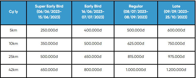Tương tự 2 cự ly nêu trên, 2 cự ly còn lại là 10km và 25km cũng có giá được xem là khá “hạt dẻ” mà Giải Bình Phước marathon - Trường Tươi Group lần thứ I phát hành để khuyến khích các runner.