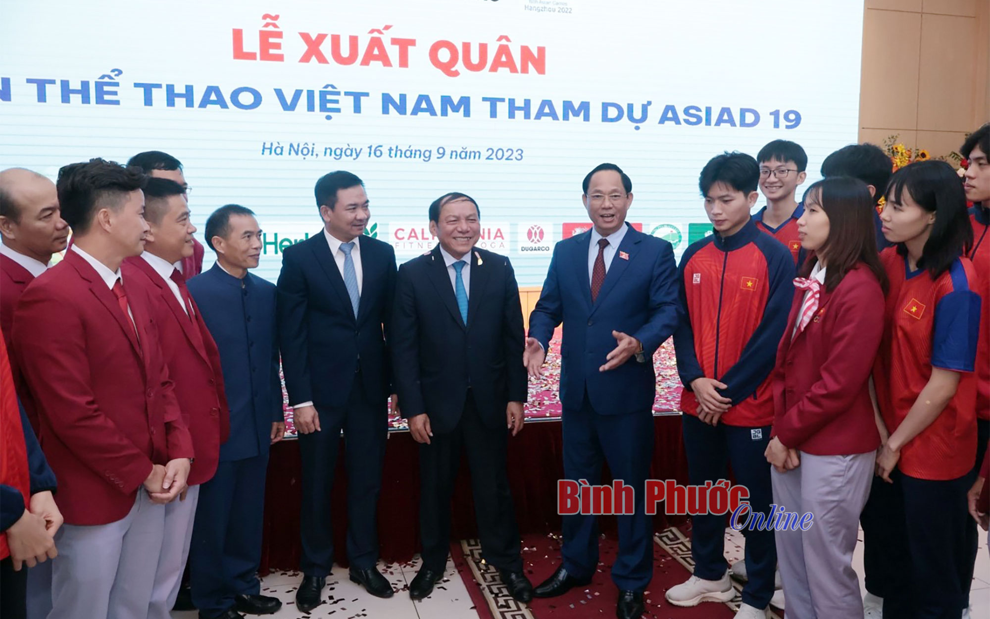 Các đại biểu cùng thành viên Đoàn thể thao Việt Nam dự Asian Games 19 tại lễ xuất quân