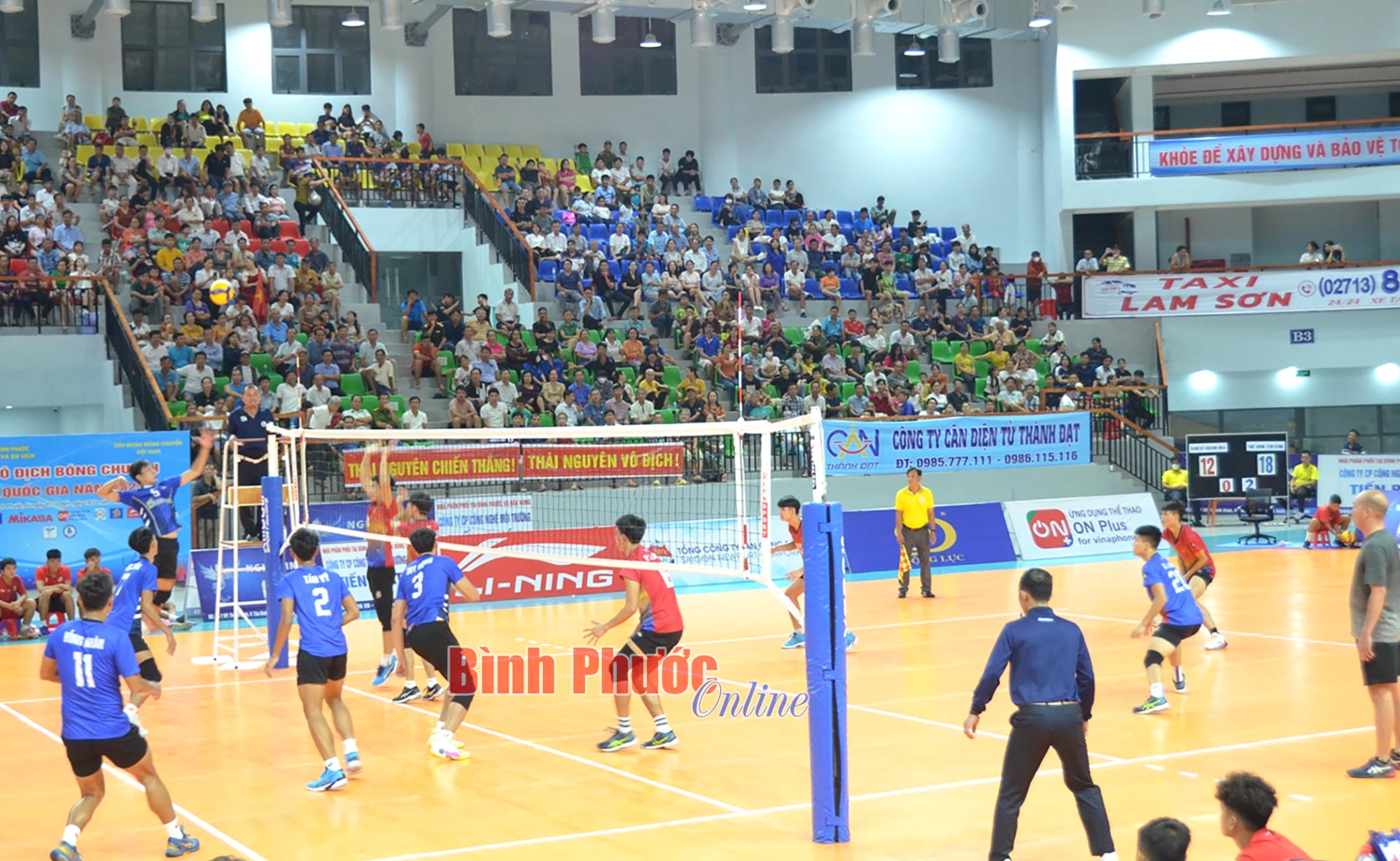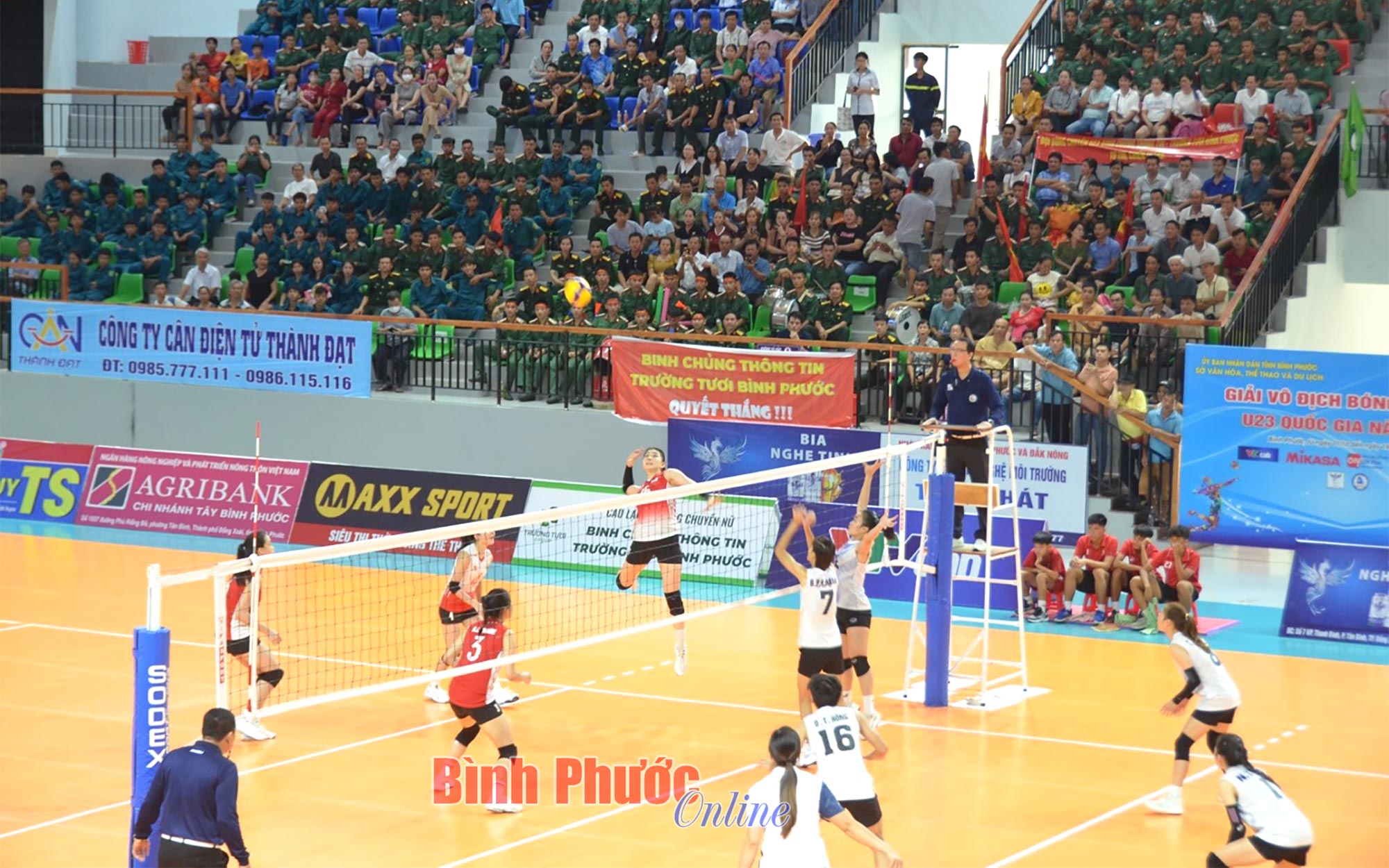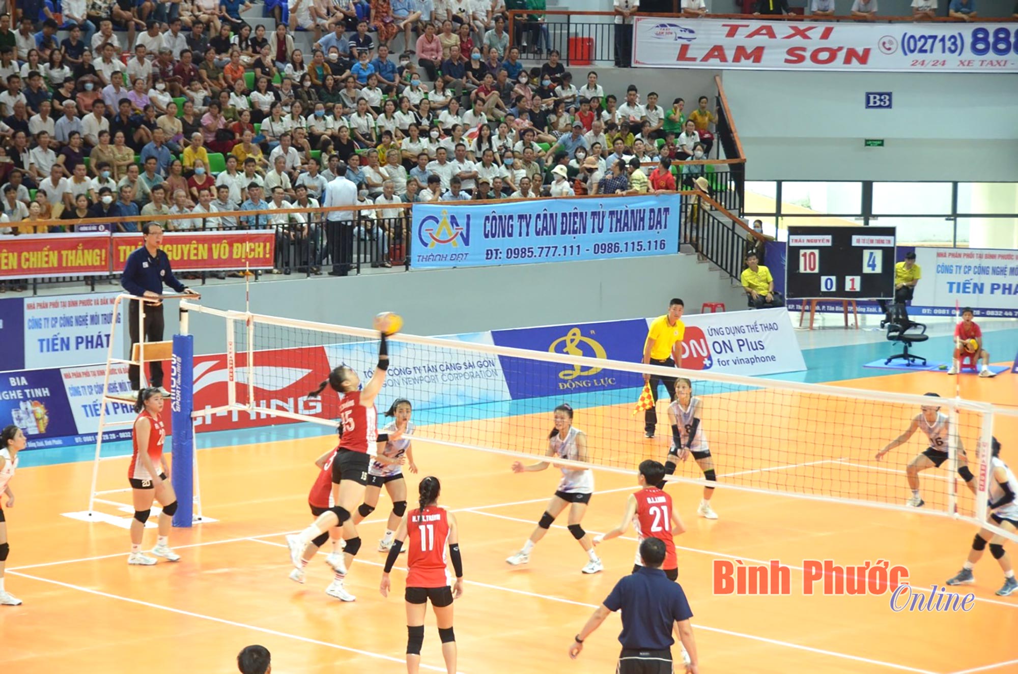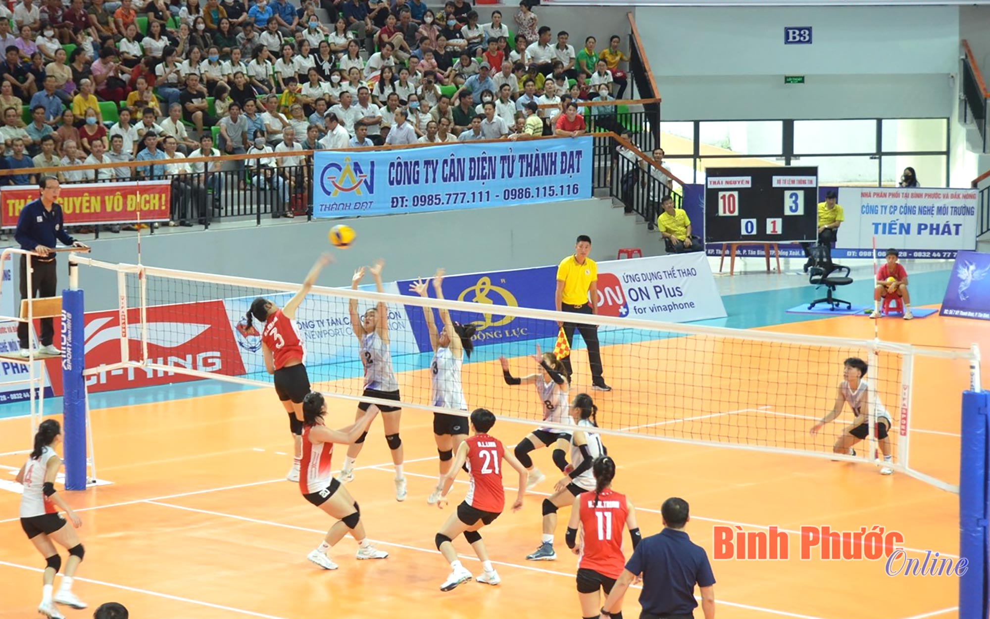 Ở set đấu thứ nhất, các cô gái đội chủ nhà Binh chủng Thông tin - Trường Tươi Bình Phước thi đấu áp đảo, nhanh chóng vươn lên dẫn trước với cách biệt lớn và kết thúc với điểm số thuyết phục 25-17.