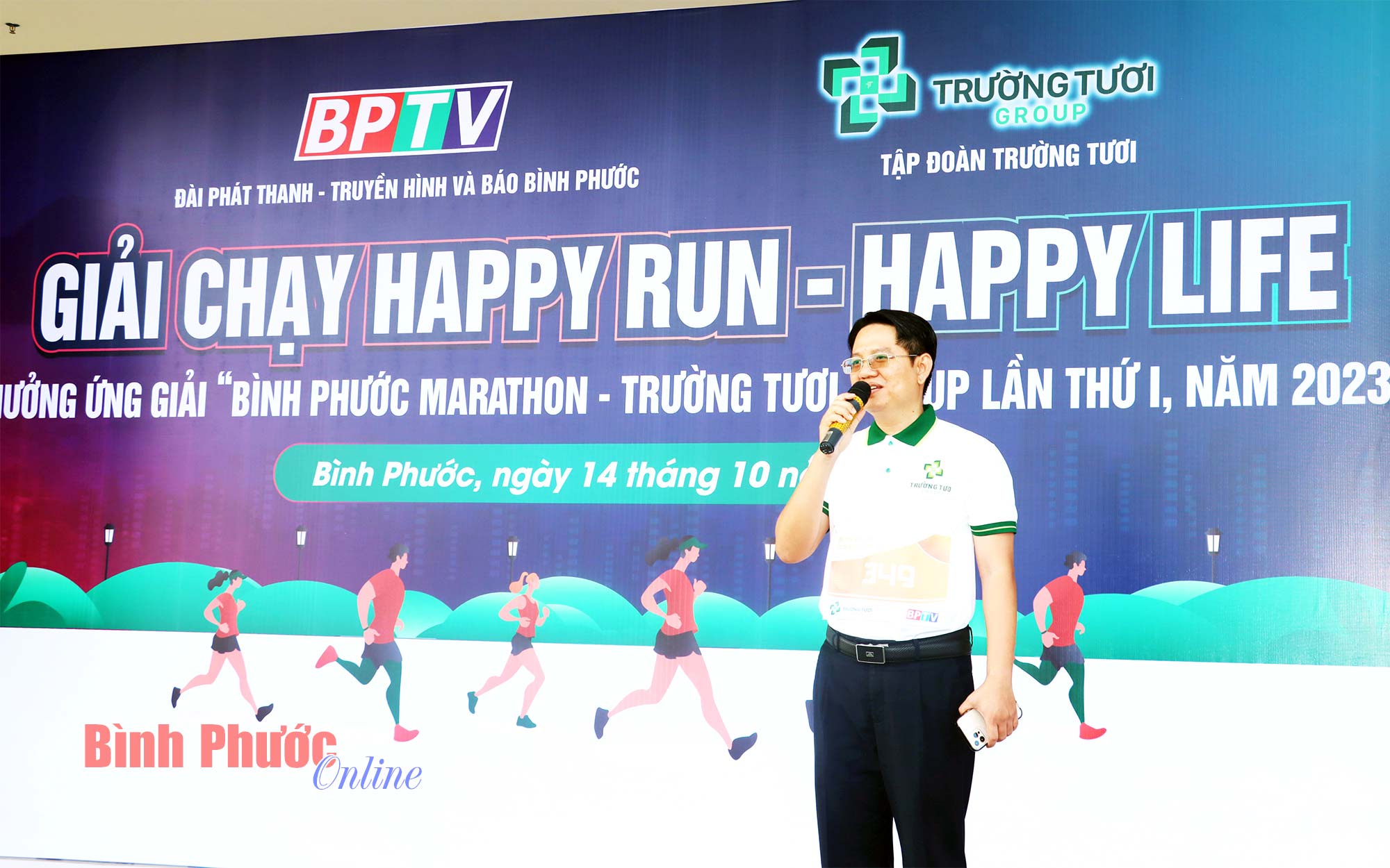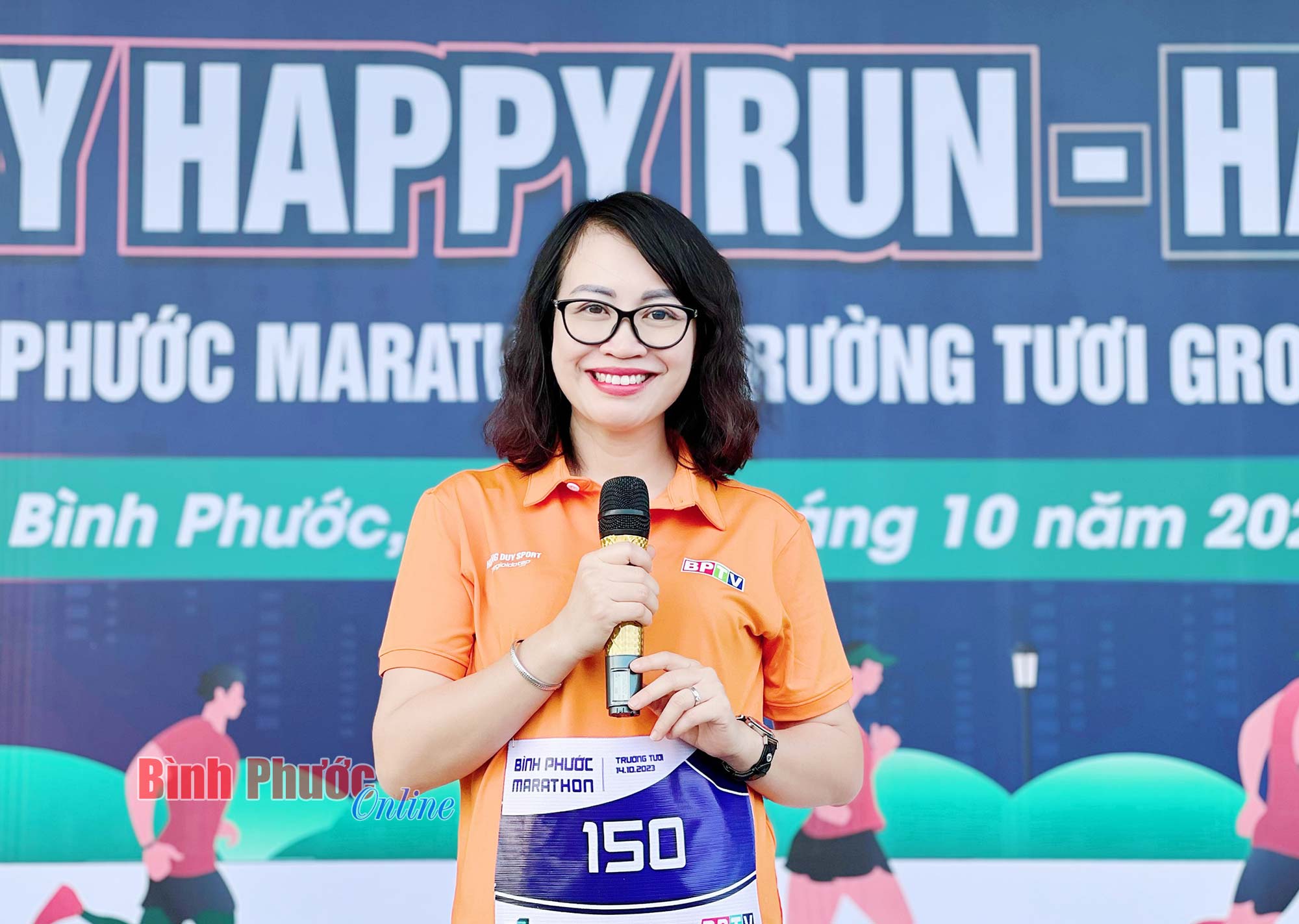 Phát biểu tại buổi lễ, Tỉnh ủy viên, Giám đốc - Tổng Biên tập BPTV Nguyễn Thị Minh Nhâm nhấn mạnh: Giải chạy “Happy Run - Happy Life” được tổ chức với mong muốn mang đến niềm vui cho mọi người trong cuộc sống và đồng hành, hưởng ứng Giải Bình Phước marathon Trường Tươi Group lần thứ I, năm 2023, diễn ra vào 2 ngày 25 và 26-11-2023 tại thị xã Phước Long. Tỉnh ủy viên, Giám đốc - Tổng Biên tập BPTV Nguyễn Thị Minh Nhâm trân trọng cảm ơn đến các đơn vị tài trợ cho giải và gửi lời chúc tốt đẹp nhất đến tất cả chị em phụ nữ nhân ngày Quốc tế Phụ nữ 20-10.