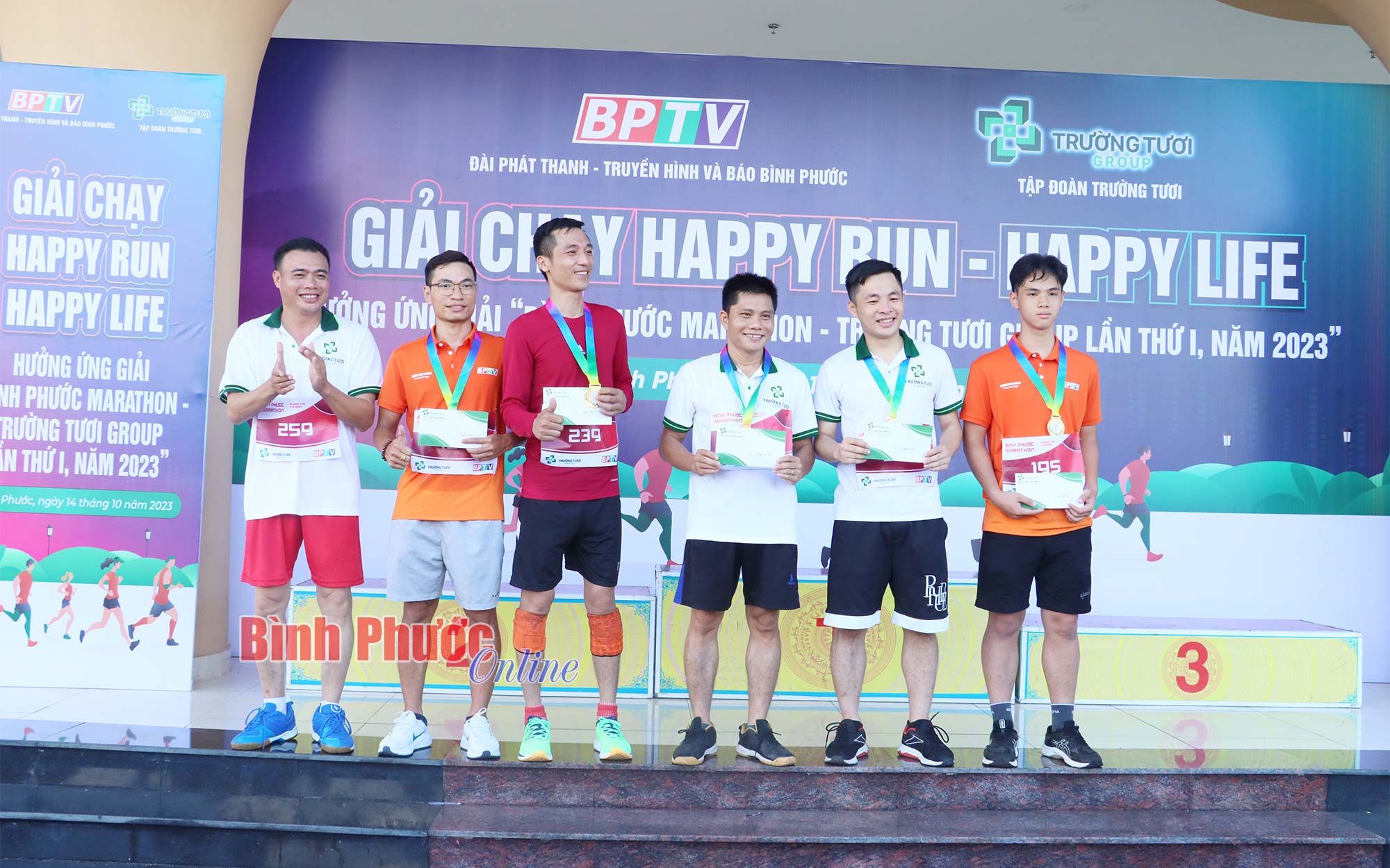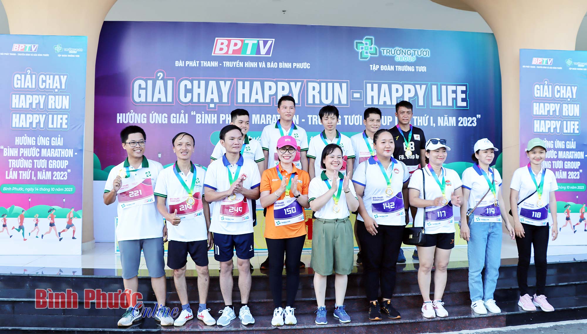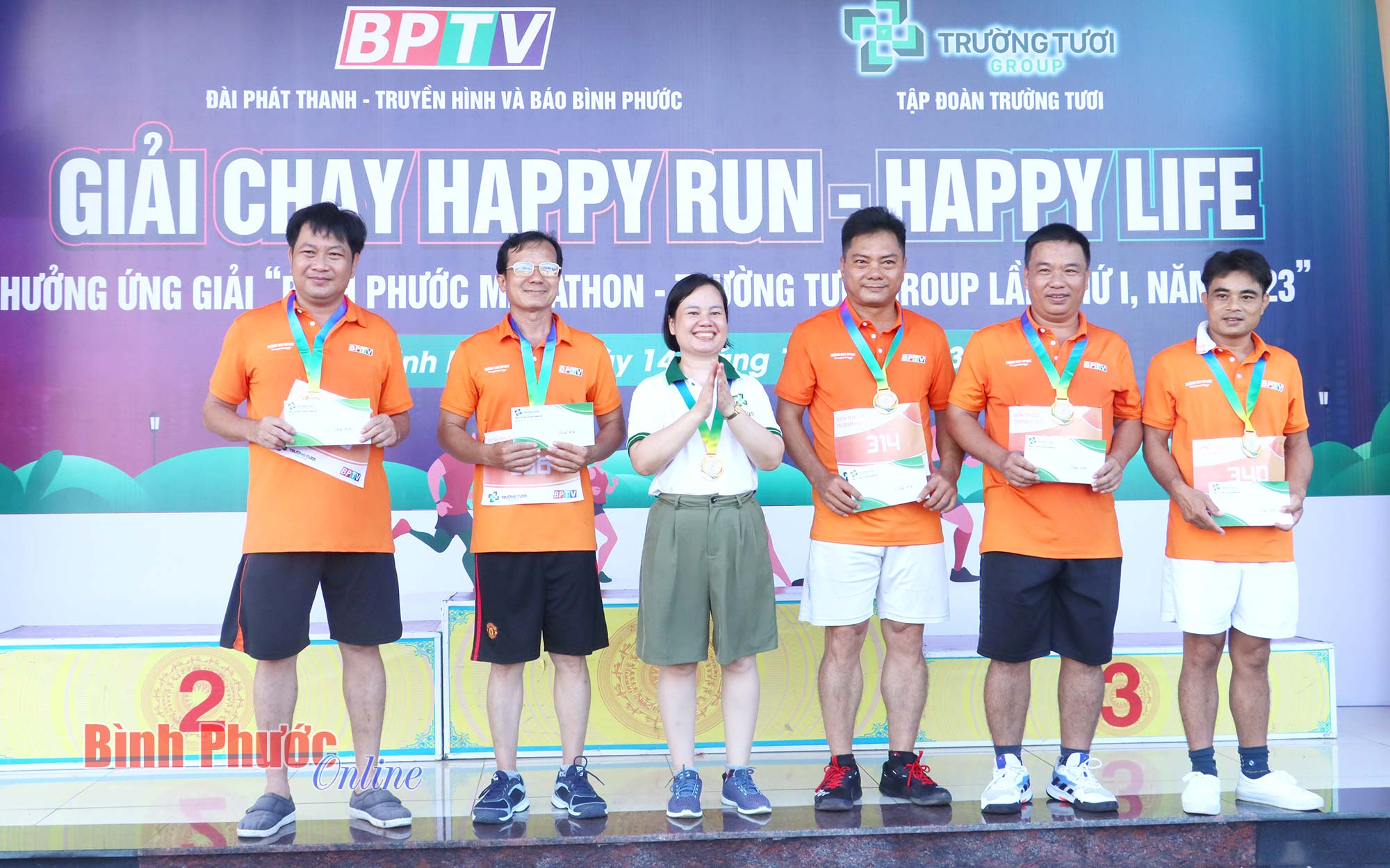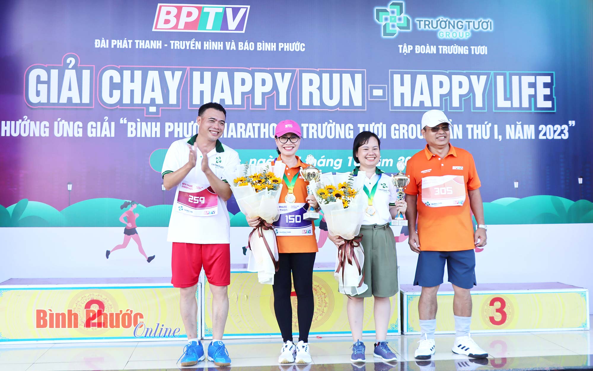 Cùng với các giải thưởng ở những nội dung thi đấu dịp này, Ban tổ chức Giải chạy “Happy Run - Happy Life” còn trao kỷ niệm chương cho các vận động viên hoàn thành cự ly tham gia. Đồng thời, tặng 30 voucher miễn phí 100% tham dự Giải “Bình Phước marathon - Trường Tươi Group lần thứ I, năm 2023” cho 30 vận động viên xuất sắc hoàn thành sớm nhất ở các cự ly.