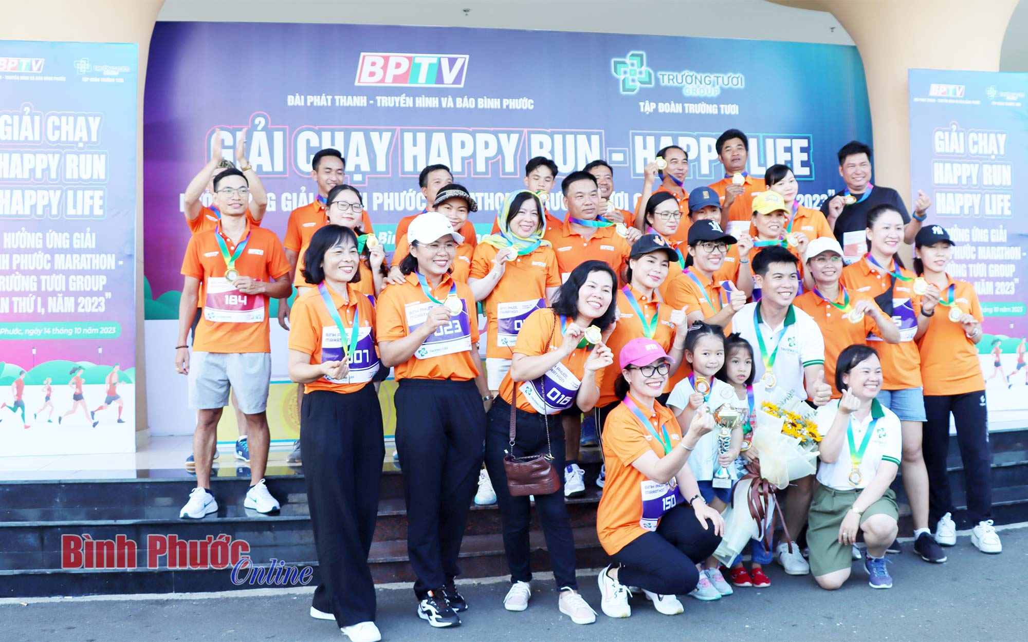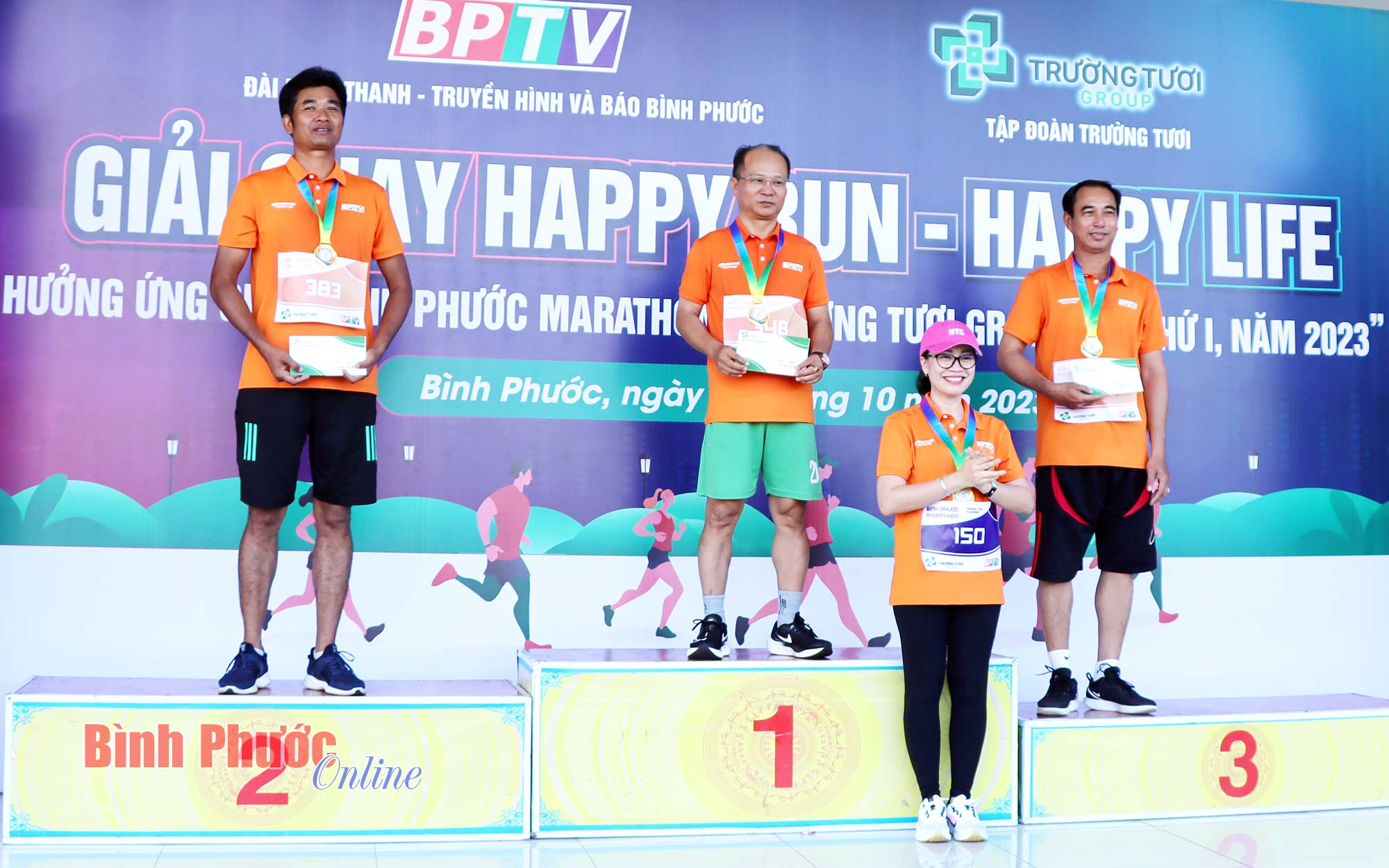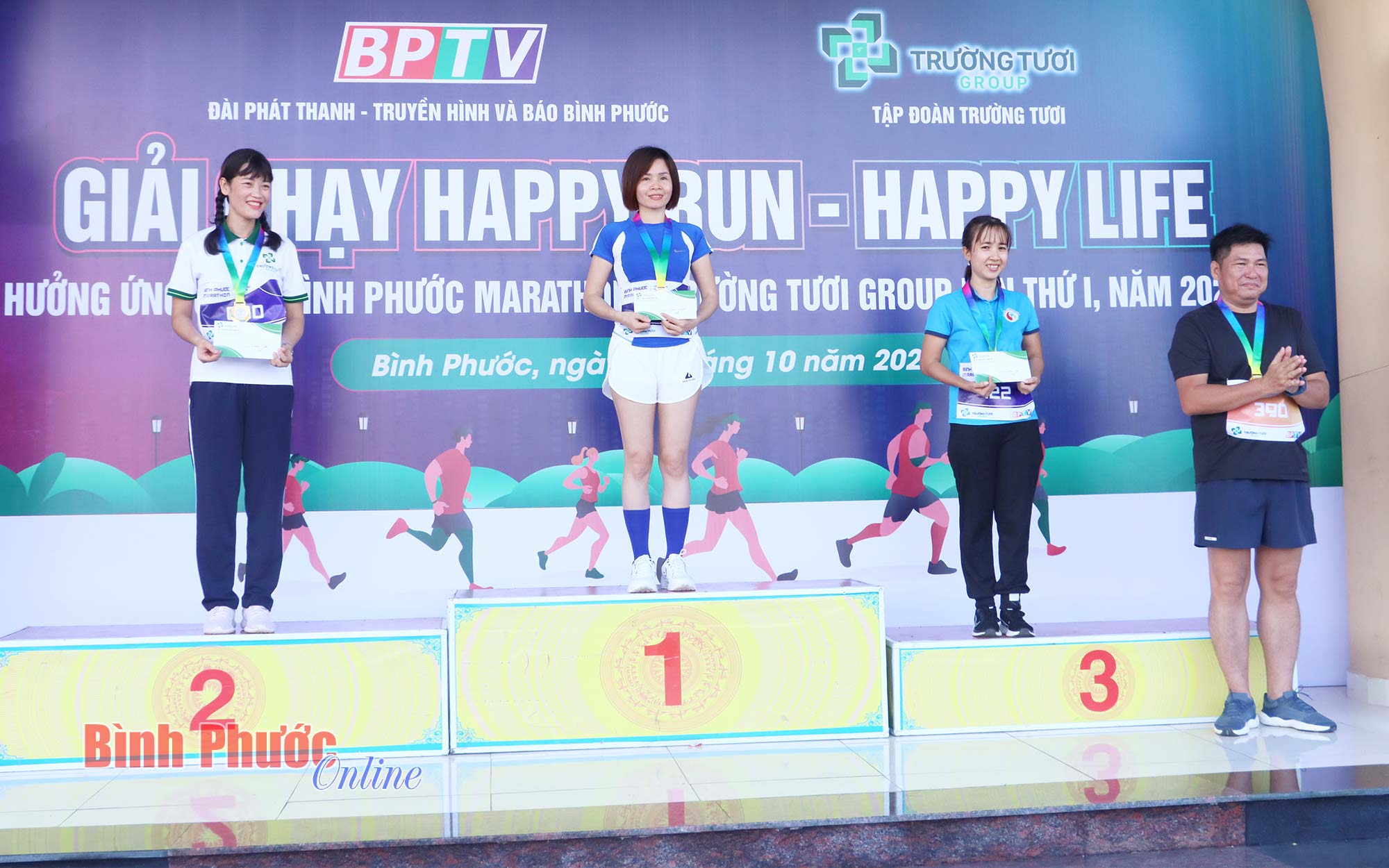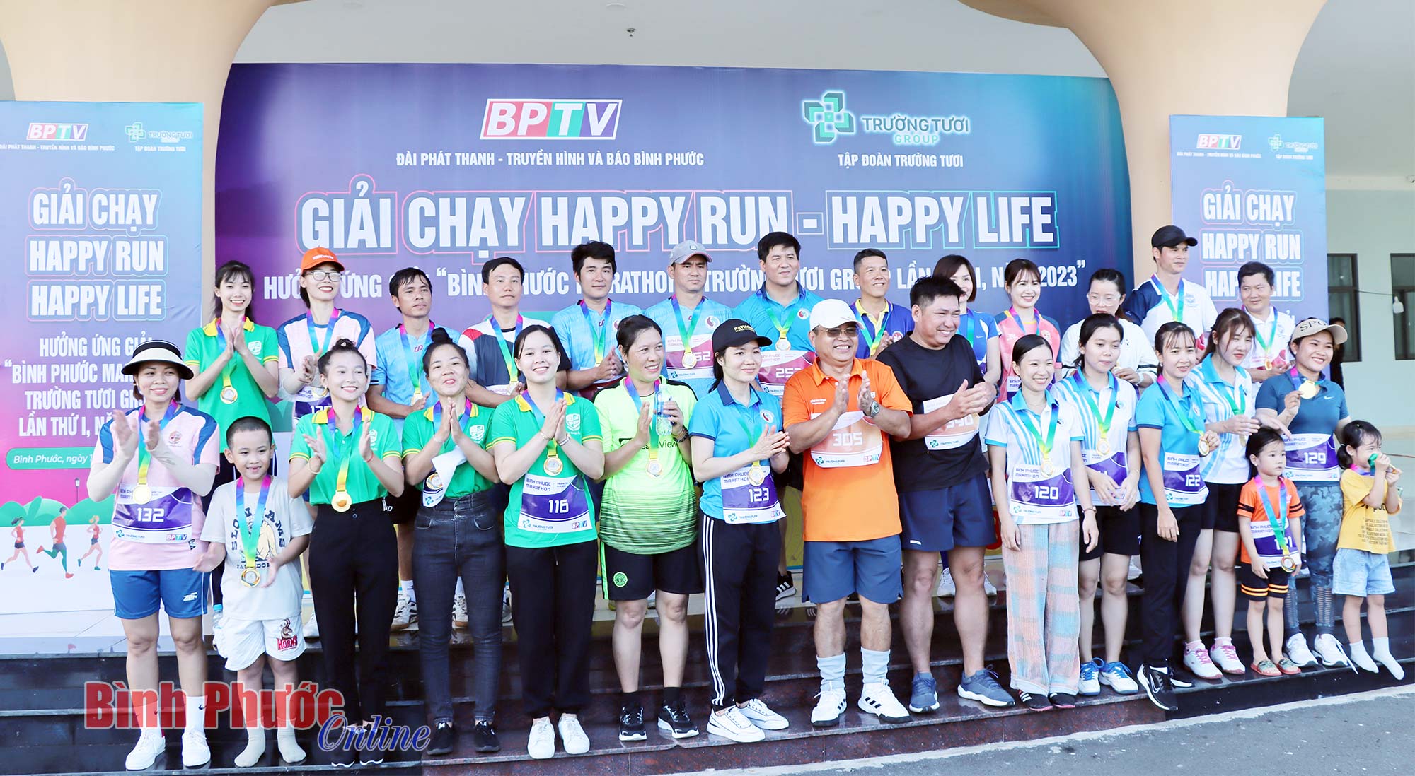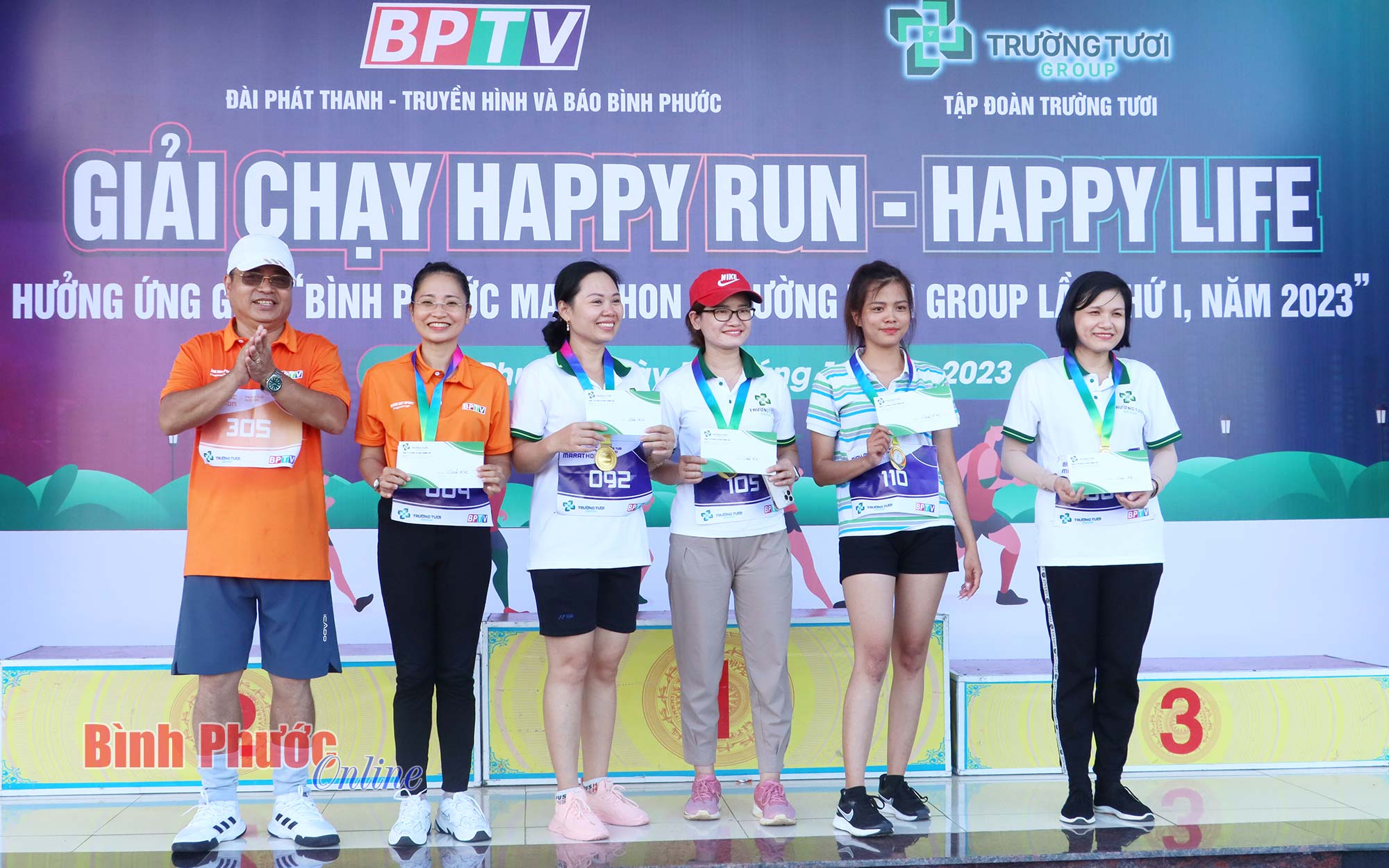 Cùng với các giải thưởng ở những nội dung thi đấu dịp này, Ban tổ chức Giải chạy “Happy Run - Happy Life” còn trao kỷ niệm chương cho các vận động viên hoàn thành cự ly tham gia. Đồng thời, tặng 30 voucher miễn phí 100% tham dự Giải “Bình Phước marathon - Trường Tươi Group lần thứ I, năm 2023” cho 30 vận động viên xuất sắc hoàn thành sớm nhất ở các cự ly.