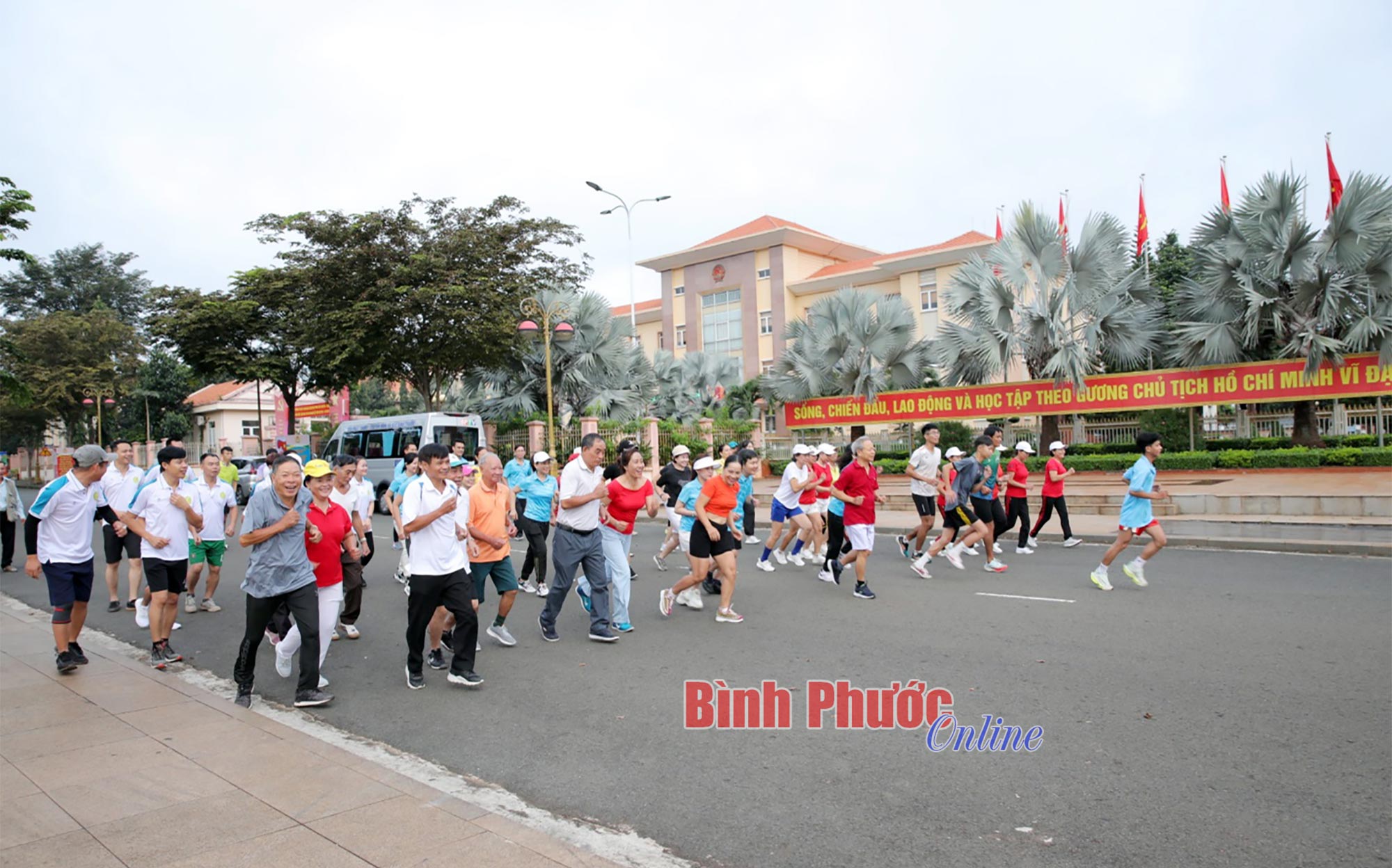 Giải đấu mở ra nhiều cơ hội cho tất cả mọi người cùng tham gia. Trong ảnh: Các cựu chiến binh thị xã Phước Long chạy giao lưu cùng Ban tổ chức - Ảnh: Trương Hiện
