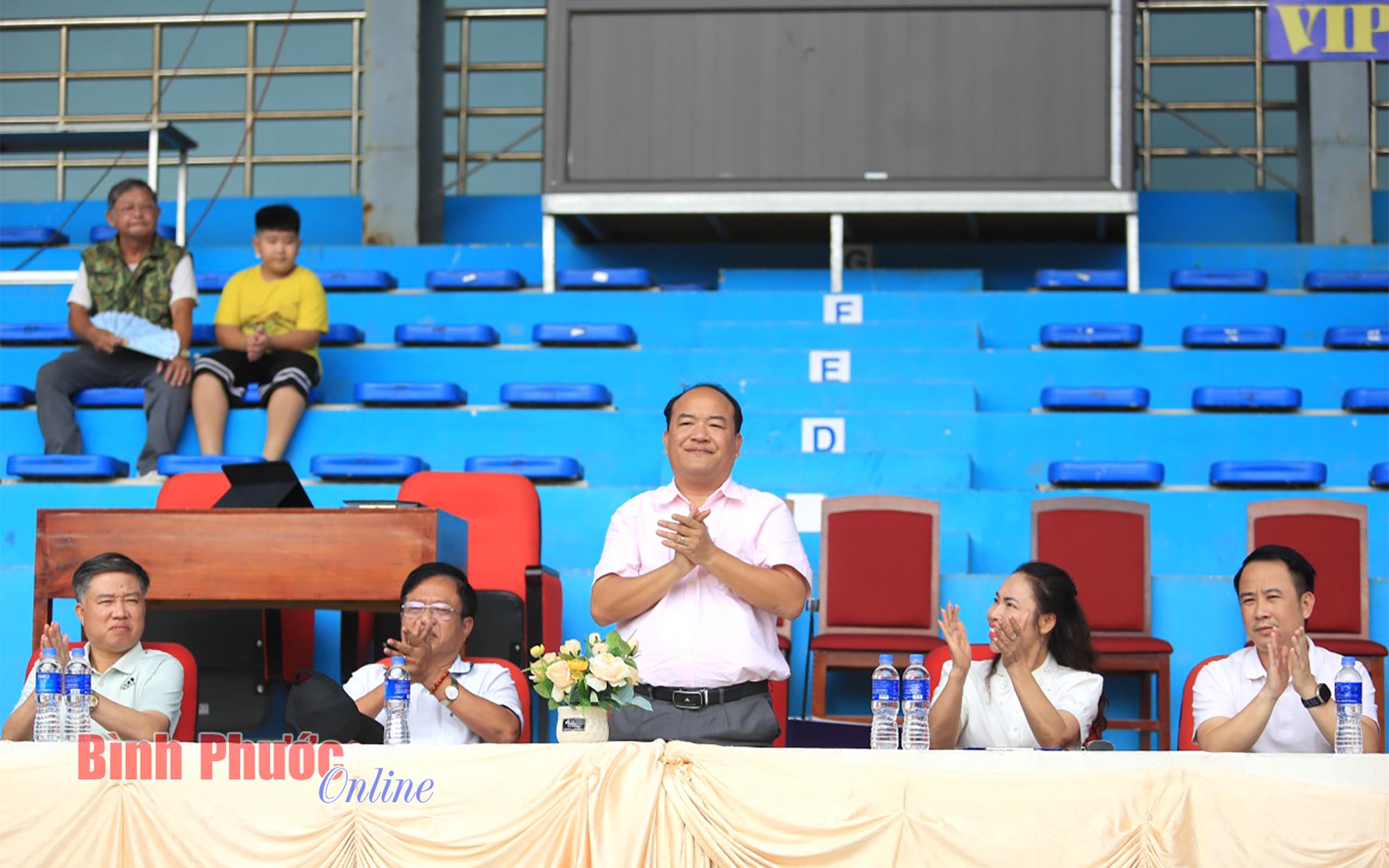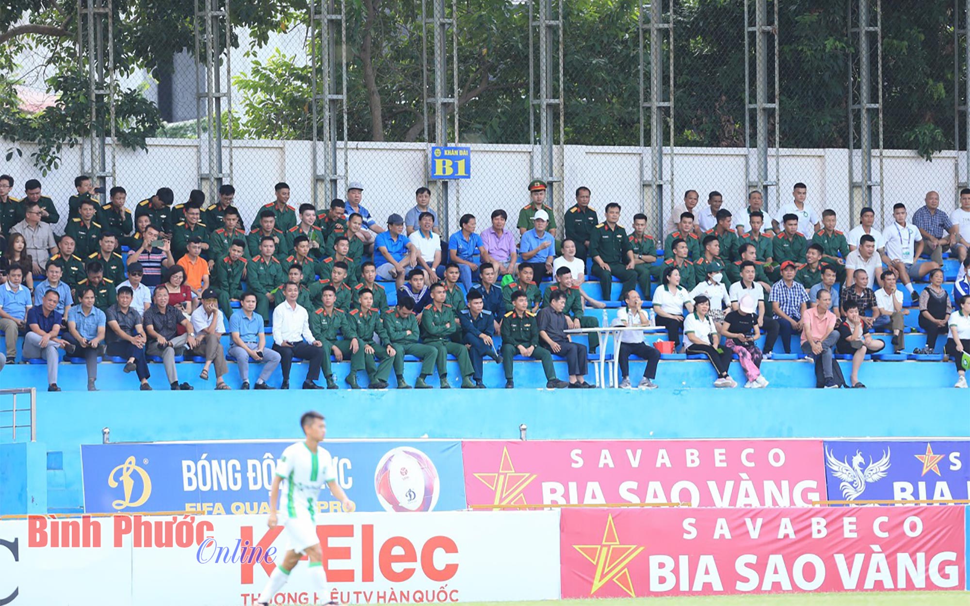 Lãnh đạo Sở Văn hóa, Thể thao và Du lịch tỉnh Bình Phước có mặt trên khán đài sân vận động Hòa Bình để cổ vũ đội nhà thi đấu