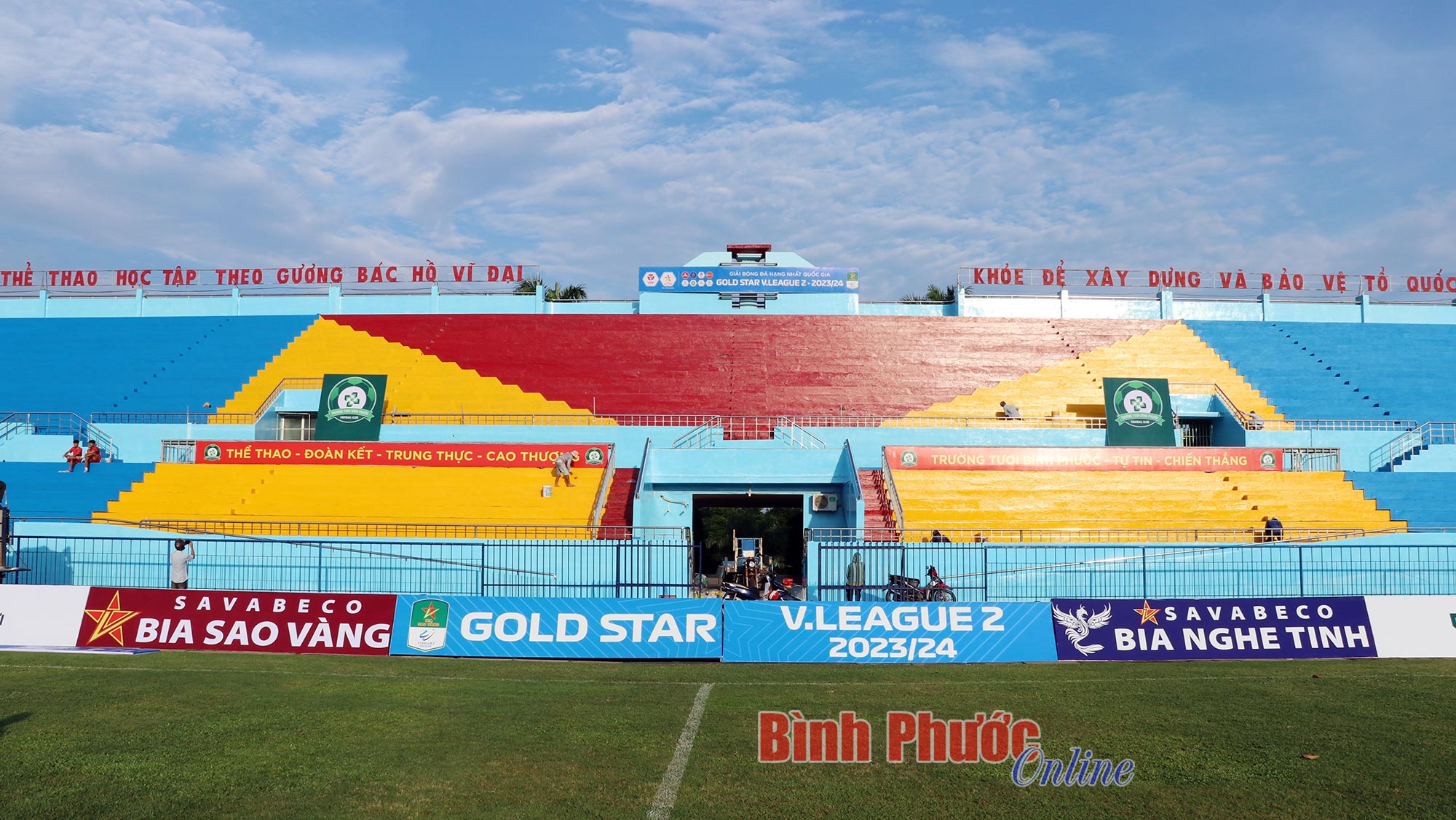 Ở khu vực khán đài B một màu sơn mới đã được phủ lên toàn bộ, đây cũng là khán đài mà Hội cổ động viên Bình Phước thường chọn để có những màn cổ vũ cuồng nhiệt cho đội bóng. Còn bên phía khán đài A, lãnh đạo CLB cho biết, trước khi trận đấu giữa Trường Tươi - Bình Phước gặp Phú Thọ vào 17 giờ ngày 27-10 diễn ra, hàng ghế VIP cũng sẽ được bọc lớp nỉ mới. Các hạng mục khác như phòng thay đồ, phòng VIP, nhà vệ sinh cũng được phủ sơn sạch sẽ. Riêng mặt cỏ của sân vận động cũng được chỉnh trang, chăm sóc lại để các cầu thủ thi đấu tốt nhất và đạt các yếu tố về mặt kỹ thuật.