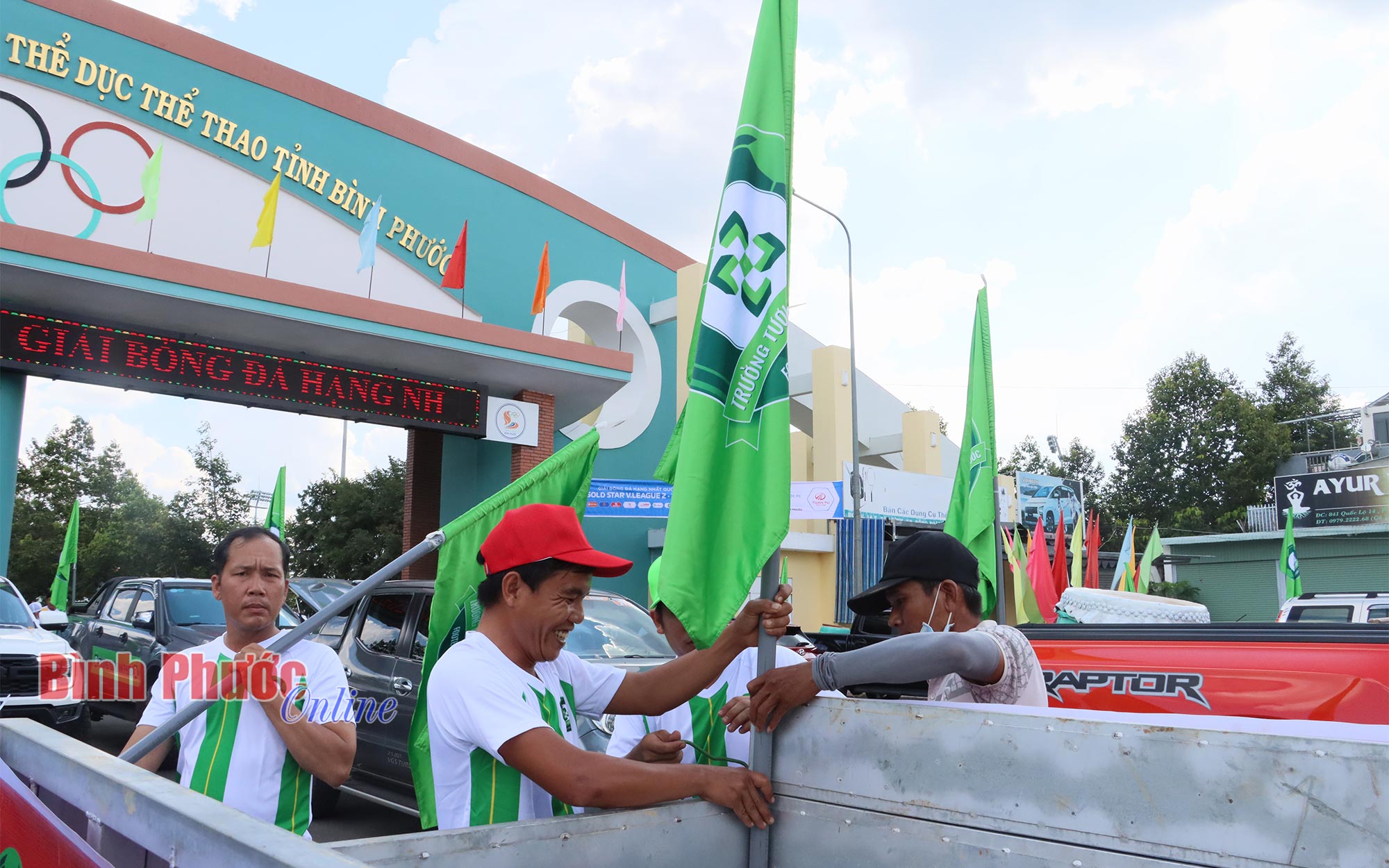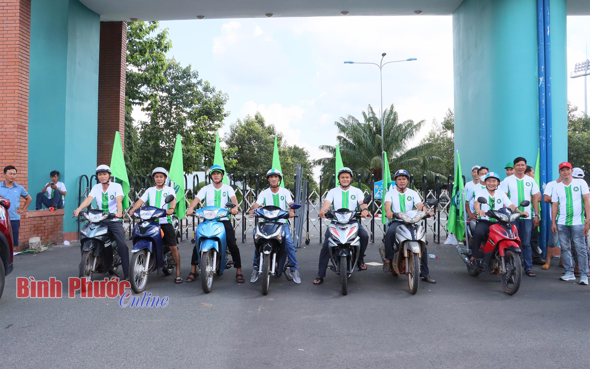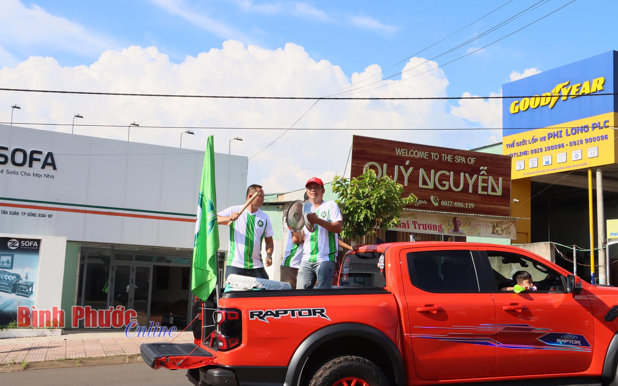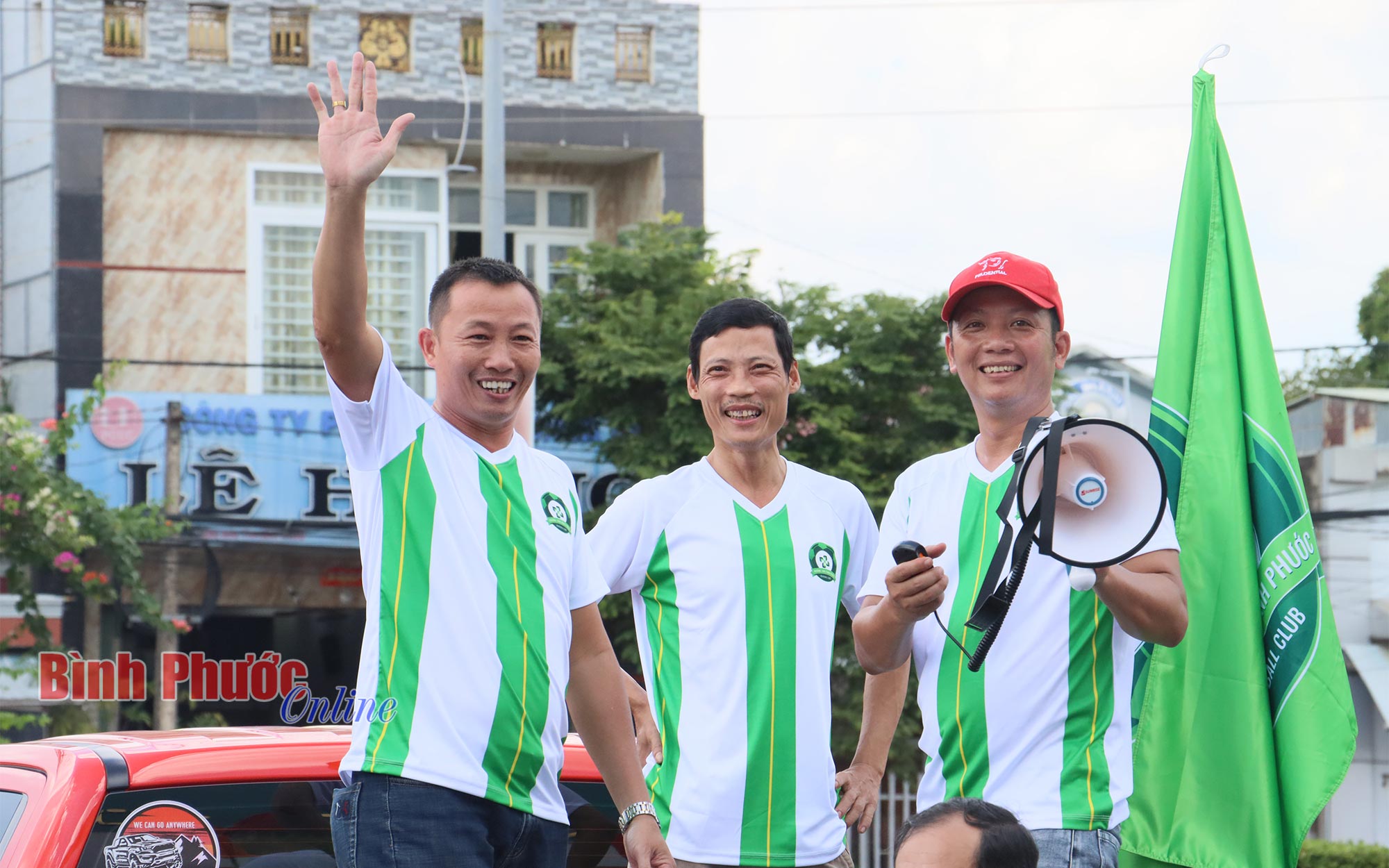 Trước trận đấu, đông đảo người hâm mộ bóng đá Bình Phước đã hâm nóng bầu không khí trận đấu bằng đội hình diễu hành qua các đoạn đường trung tâm thành phố Đồng Xoài.