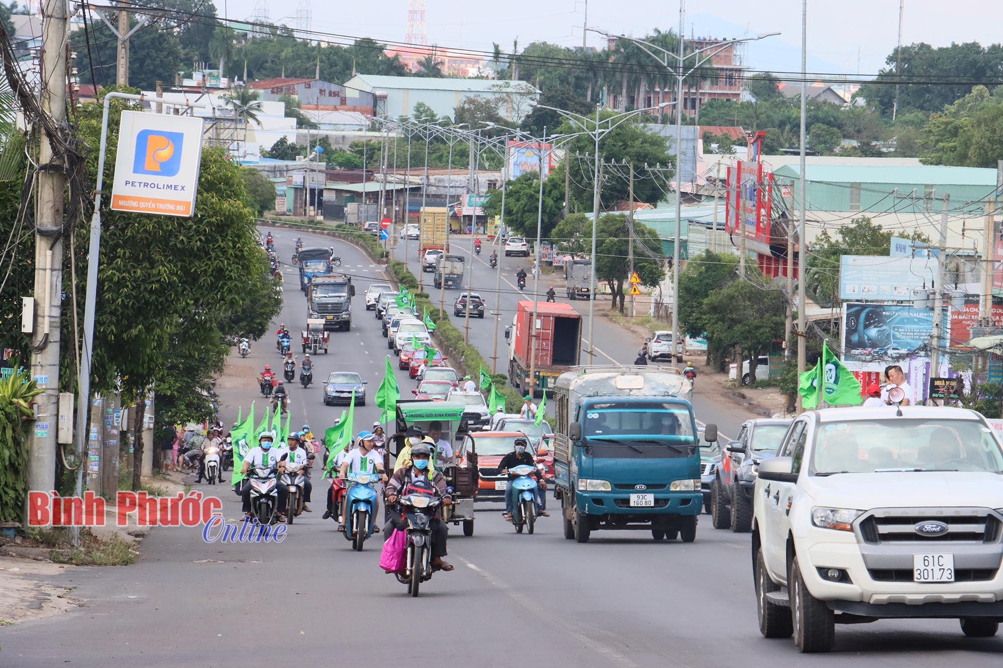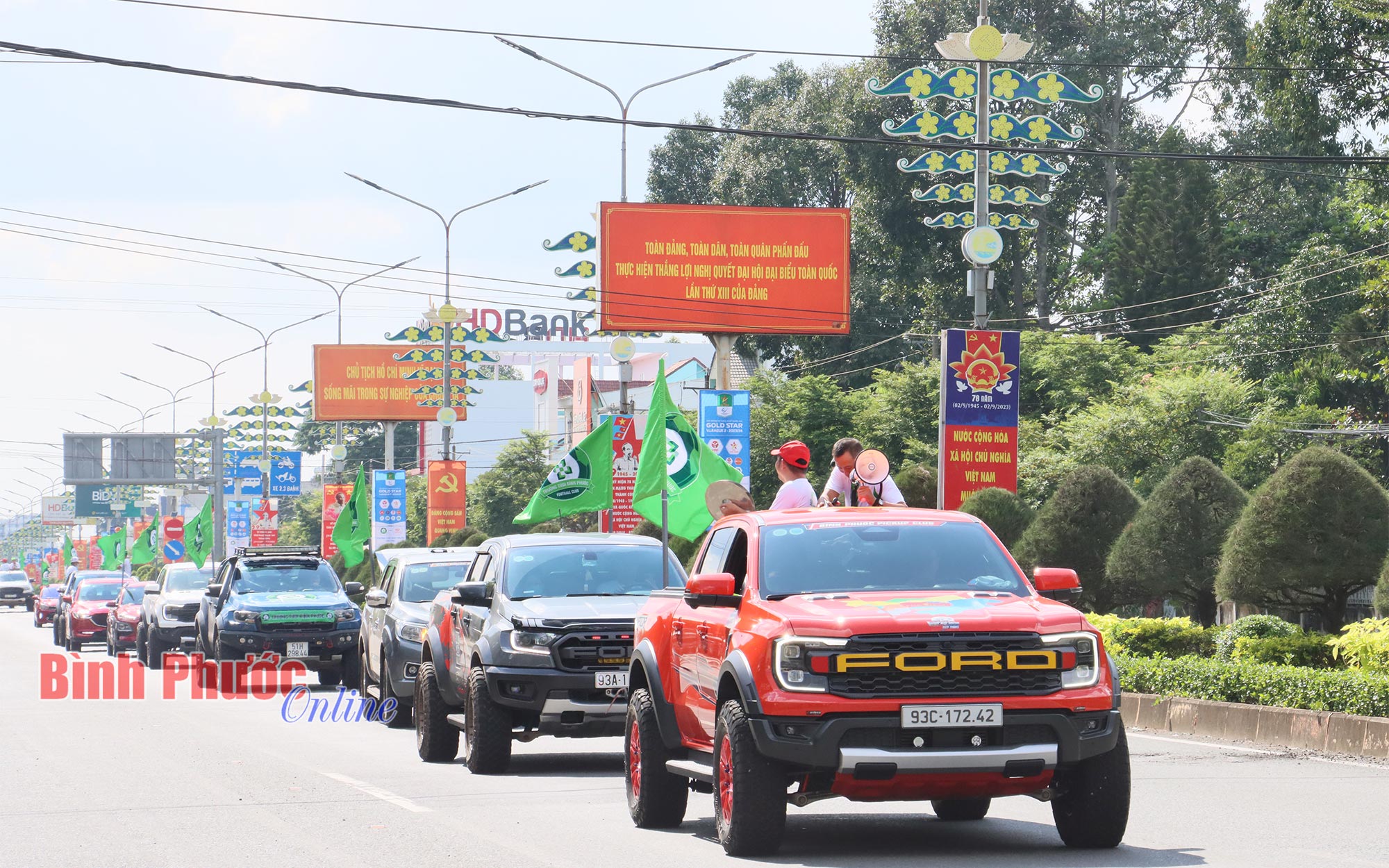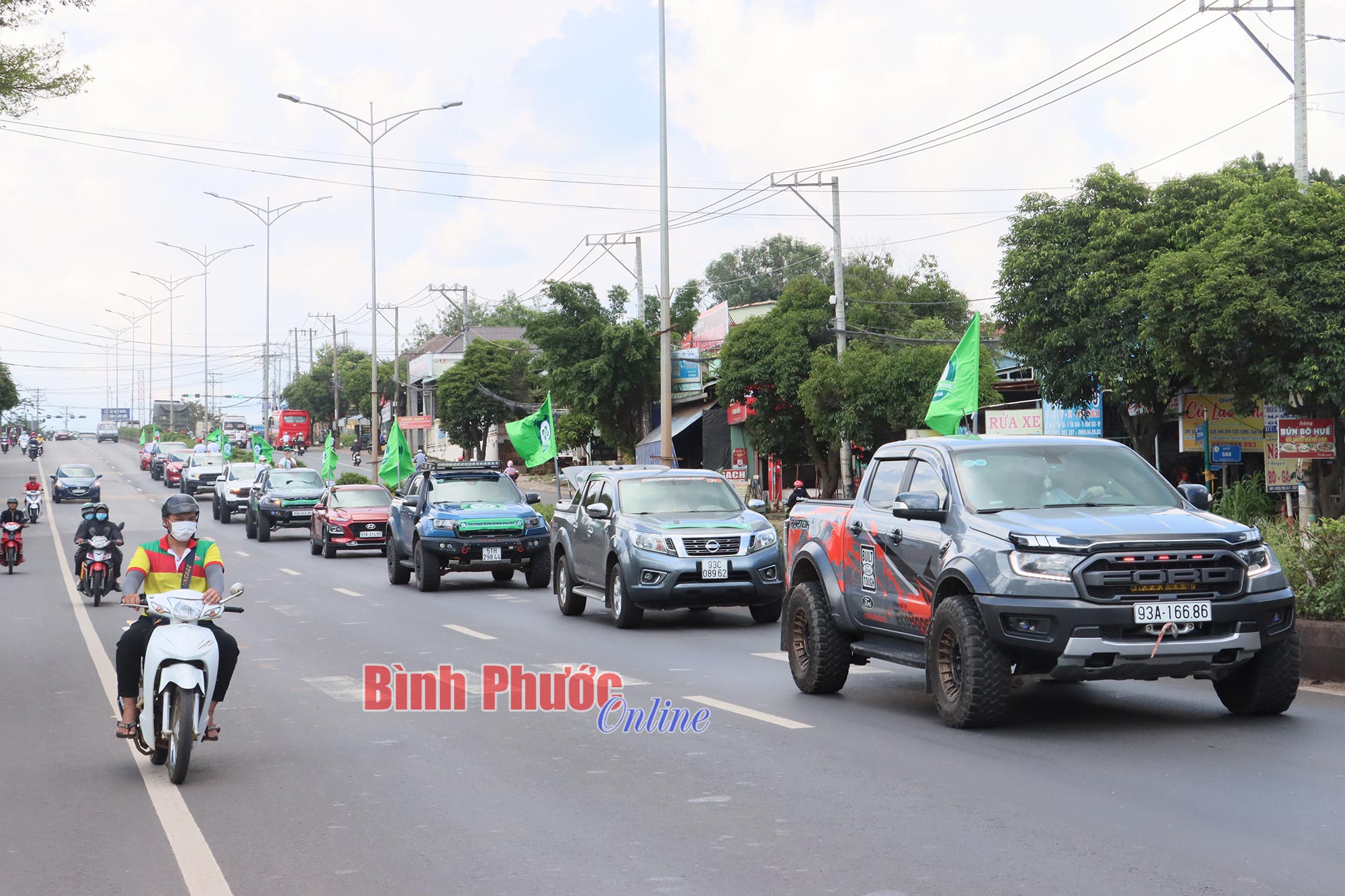 Đoàn xe diễu hành xuất phát từ Trung tâm huấn luyện và thi đấu thể dục thể thao ra quốc lộ 14 - đường Hùng Vương - đường Phú Riềng Đỏ đến Bệnh viện Hoàn Mỹ Bình Phước, quay về đường Nguyễn Huệ