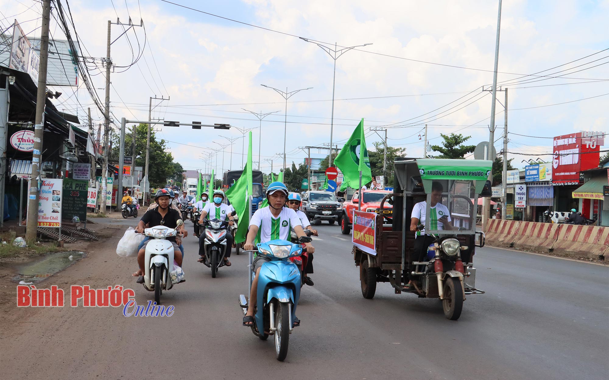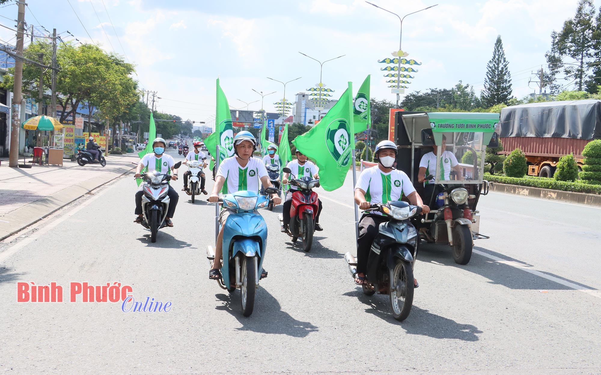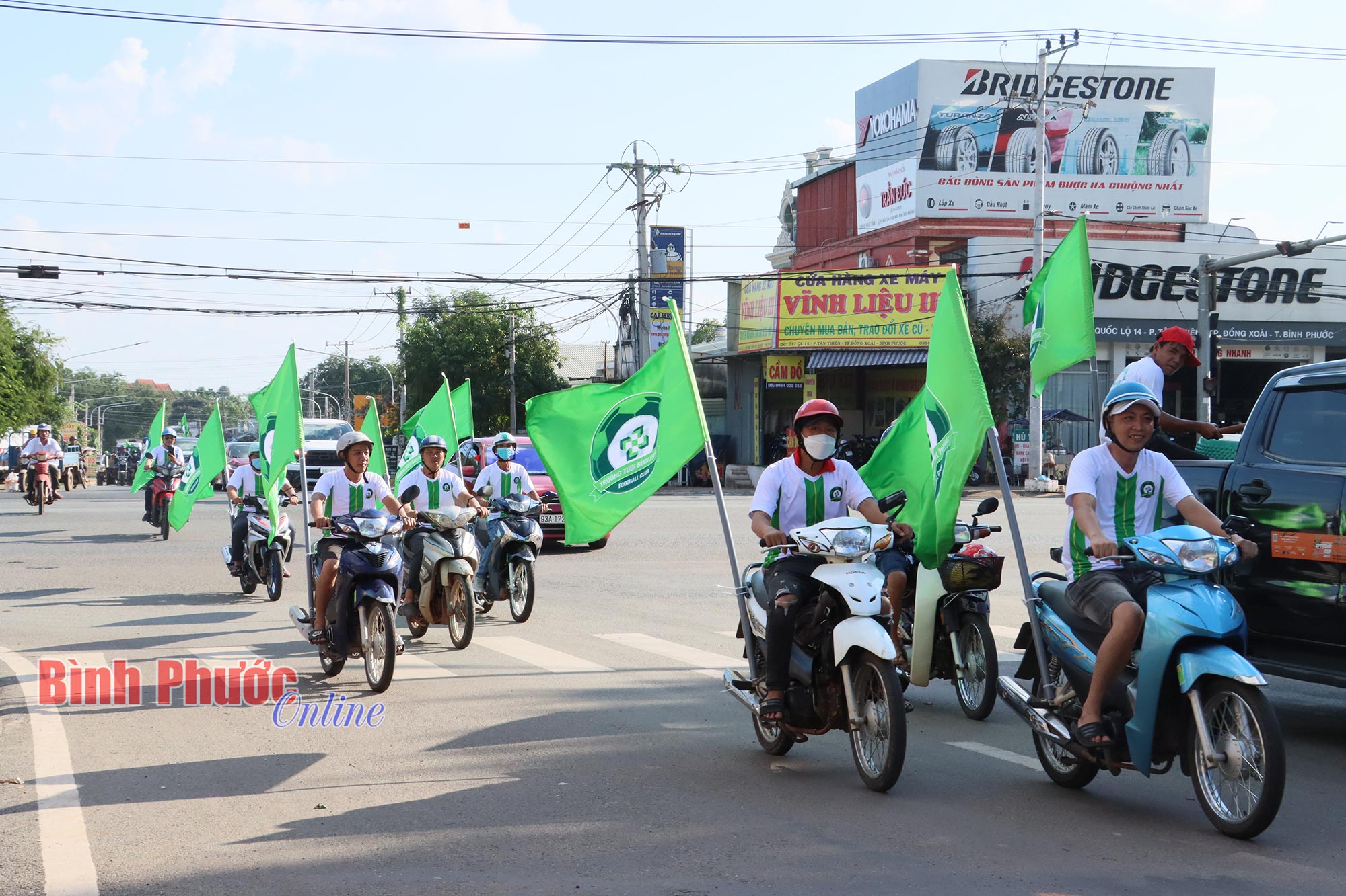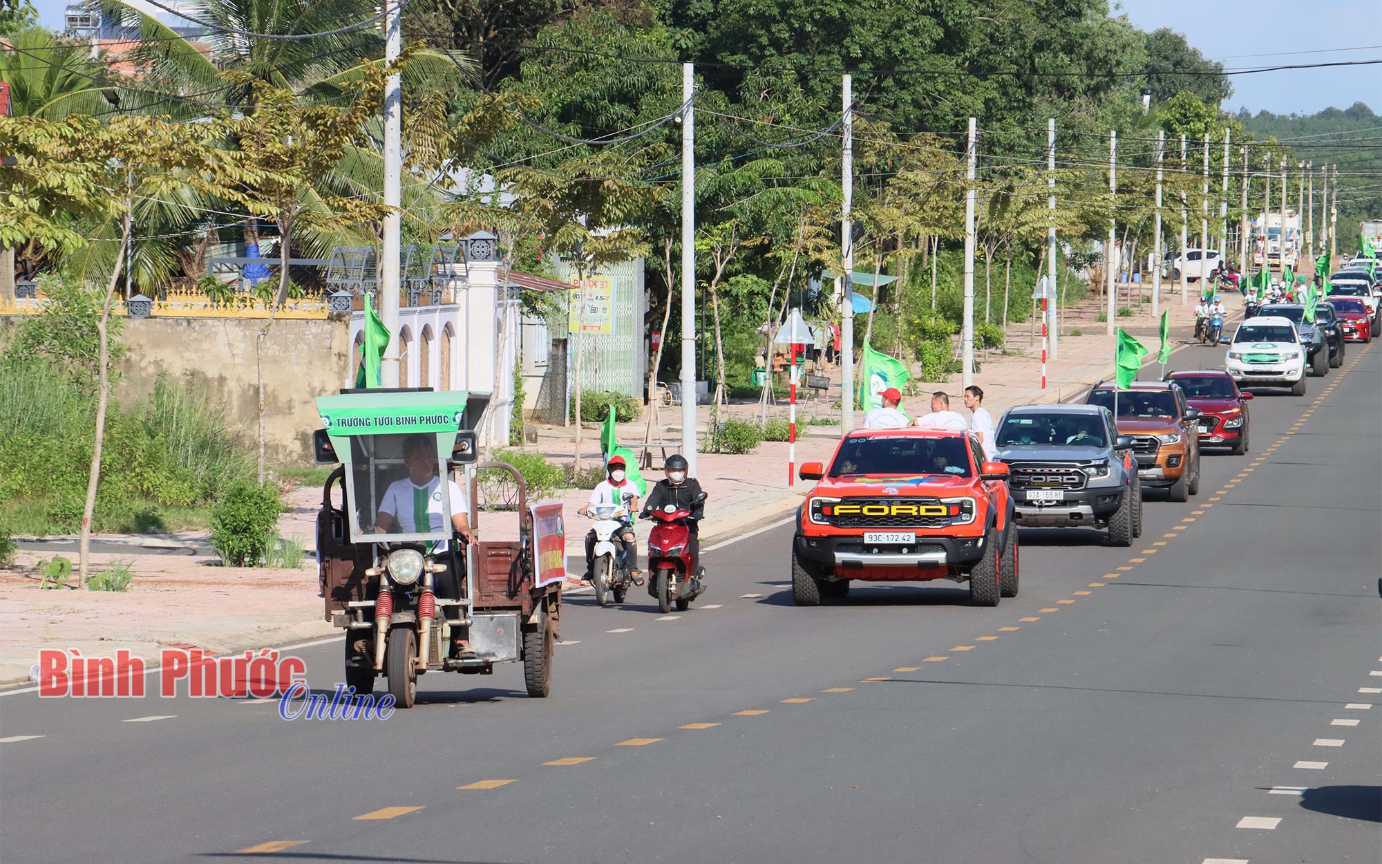 Đoàn xe diễu hành xuất phát từ Trung tâm huấn luyện và thi đấu thể dục thể thao ra quốc lộ 14 - đường Hùng Vương - đường Phú Riềng Đỏ đến Bệnh viện Hoàn Mỹ Bình Phước, quay về đường Nguyễn Huệ