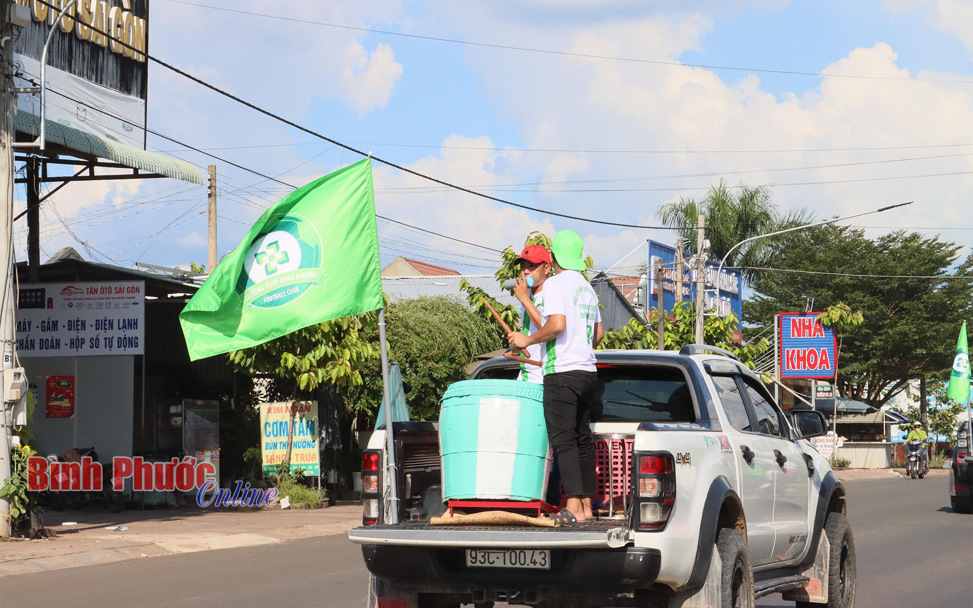 Khoảng 3 giờ trước khi trận đấu diễn ra, các thành viên hội cổ động viên CLB Bóng đá Trường Tươi Bình Phước đã chuẩn bị cờ, loa, kèn và tổ chức diễu hành