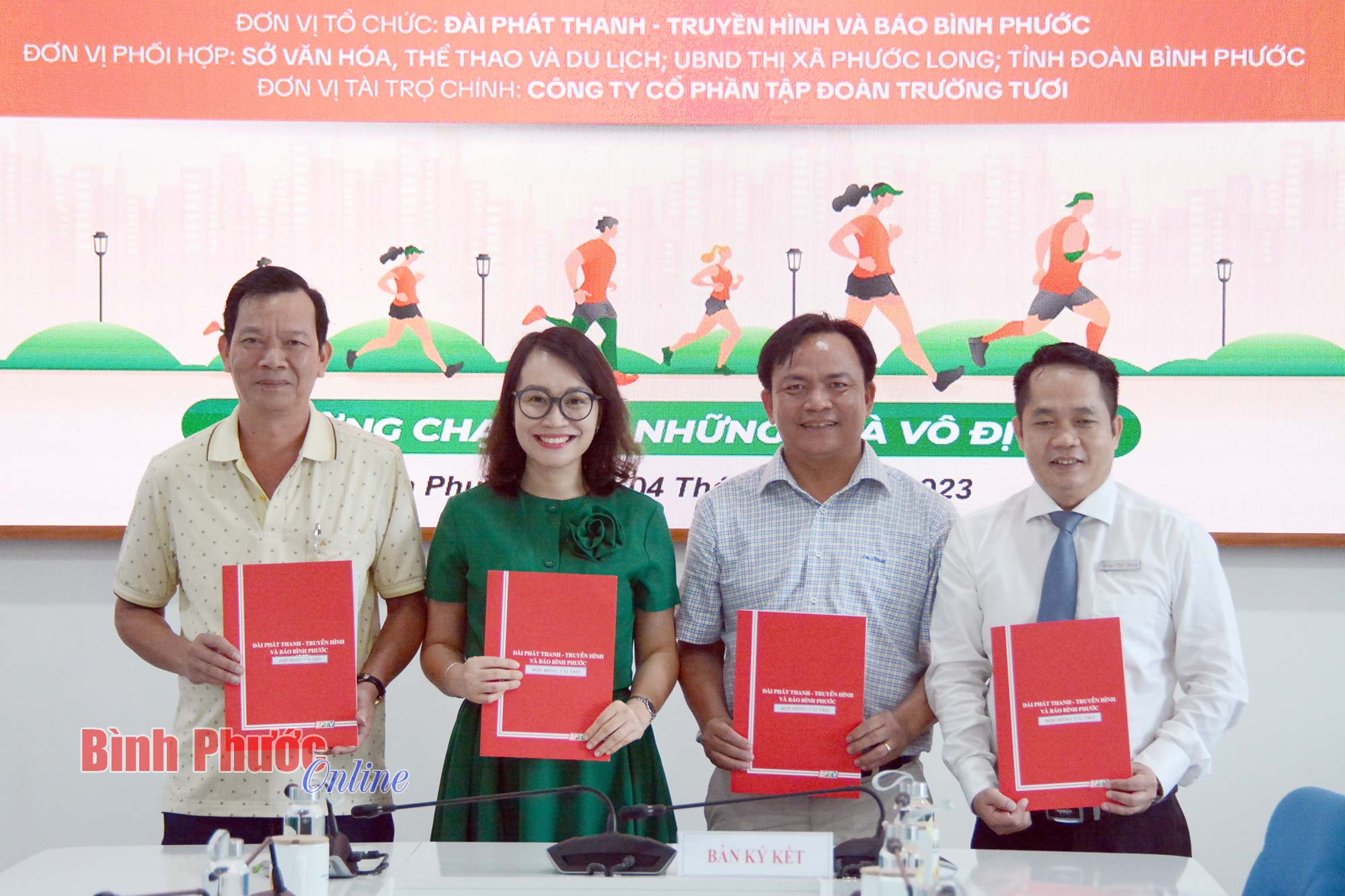 Tại buổi ký kết, đại diện các cá nhân, tổ chức, doanh nghiệp được lãnh đạo BPTV thông tin nhanh về giải cũng như các quyền lợi, nghĩa vụ liên quan. Giải Bình Phước marathon - Trường Tươi Group lần thứ I, năm 2023 được BPTV phối hợp với các sở, ban, ngành địa phương tổ chức trong 2 ngày 25 và 26-11 tại thị xã Phước Long. Cụ thể, khai mạc và đêm nhạc chào mừng giải: 19h ngày 25-11; xuất phát các cự ly: từ 4h00 ngày 26-11.