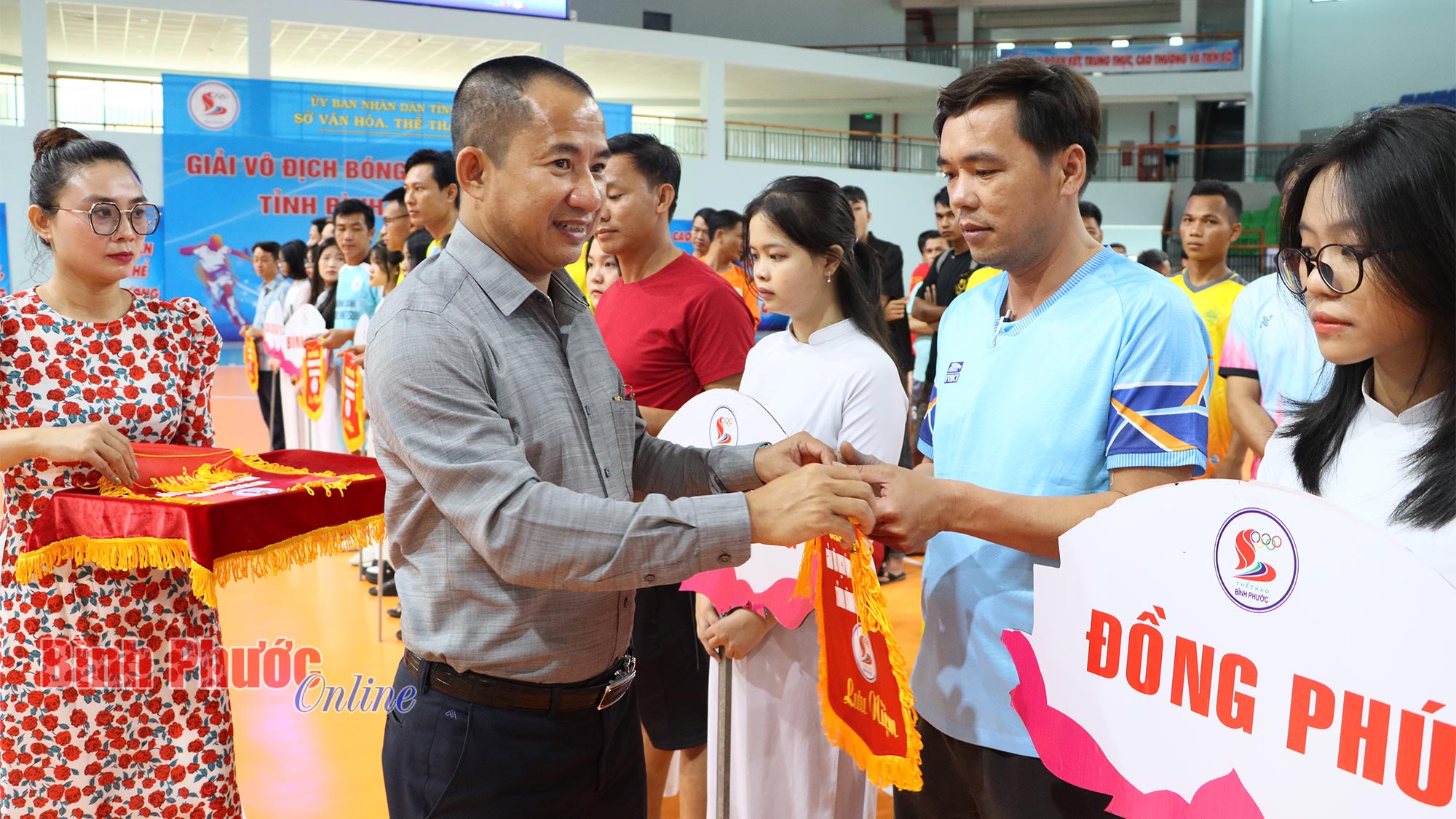Phó Giám đốc phụ trách Sở Văn hóa - Thể thao và Du lịch Trần Thế Anh tặng cờ cho các đội bóng