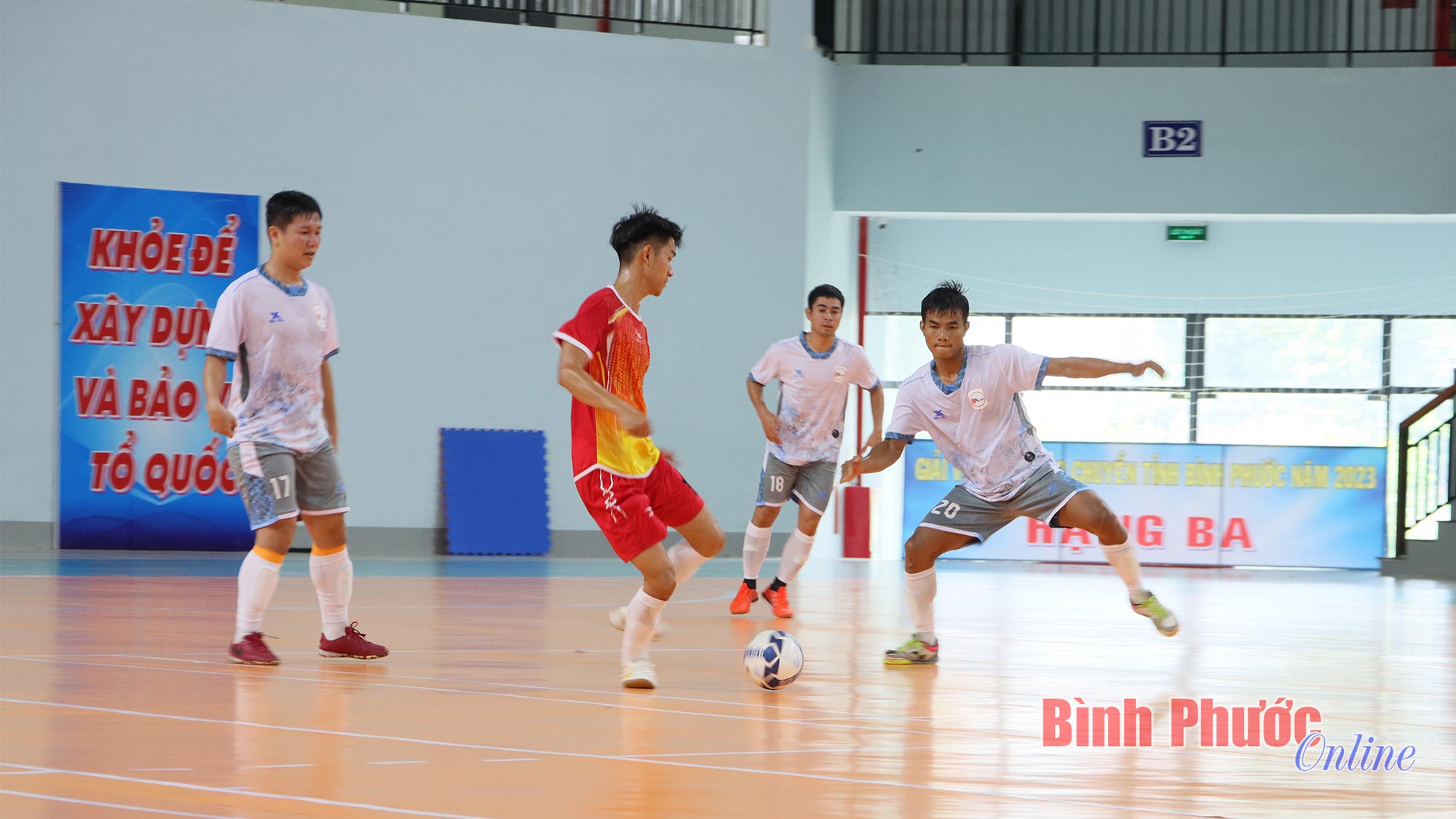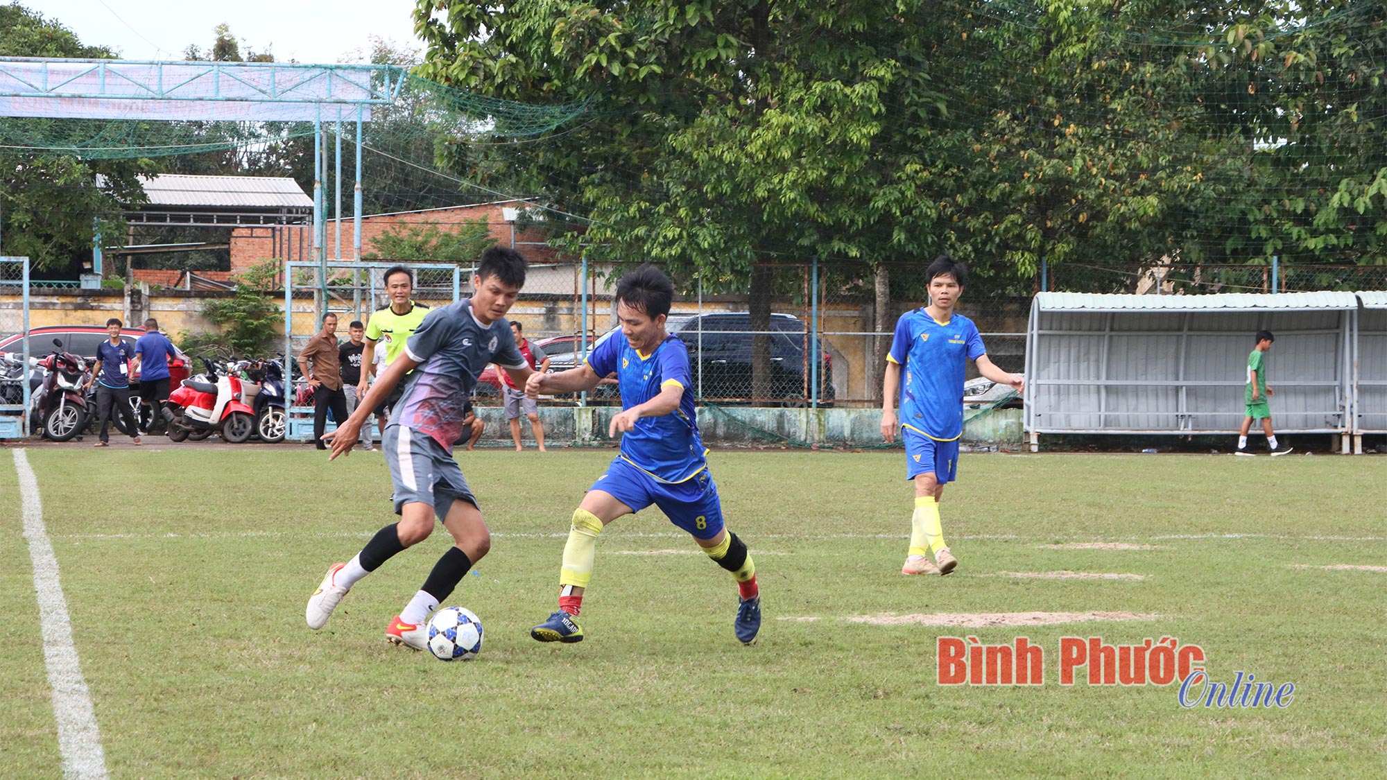 Một pha bóng tại trận khai mạc ở nội dung thanh niên giữa Bộ Chỉ huy Quân sự tỉnh và đội Đồng Phú