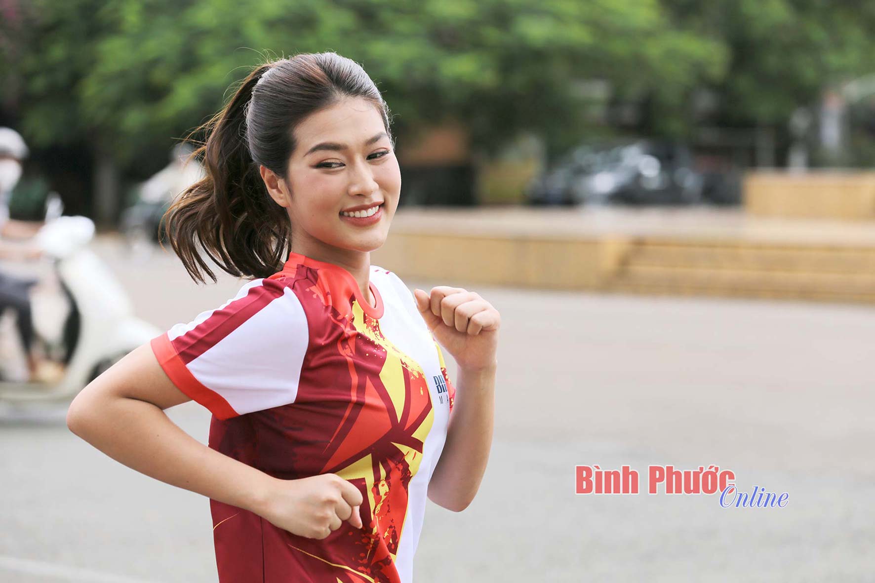 Một trong những sức hút của Giải Bình Phước marathon - Trường Tươi Group lần thứ I là sự có mặt của Hoa hậu Hòa bình Việt Nam 2022 Đoàn Thiên Ân.