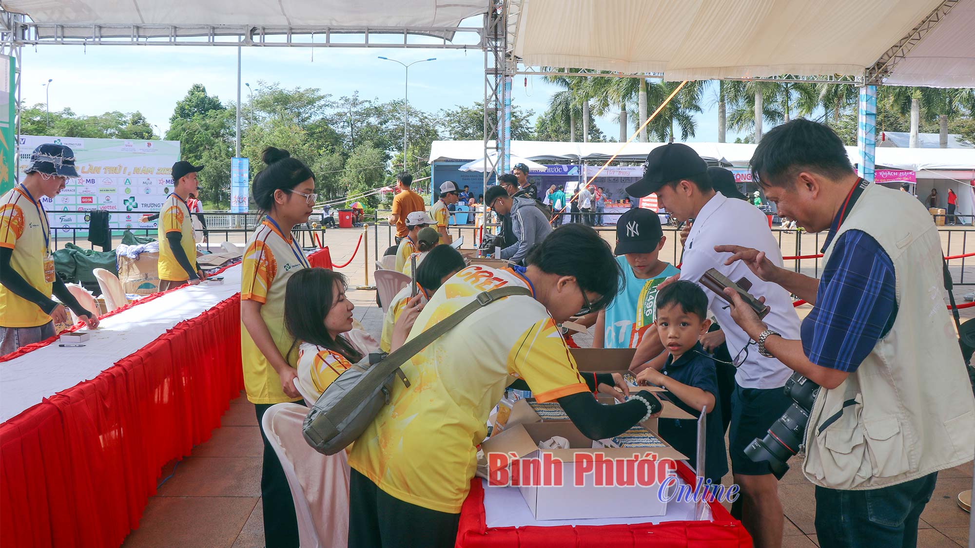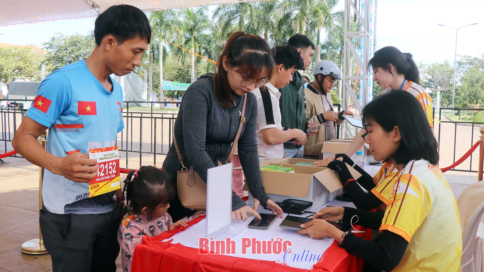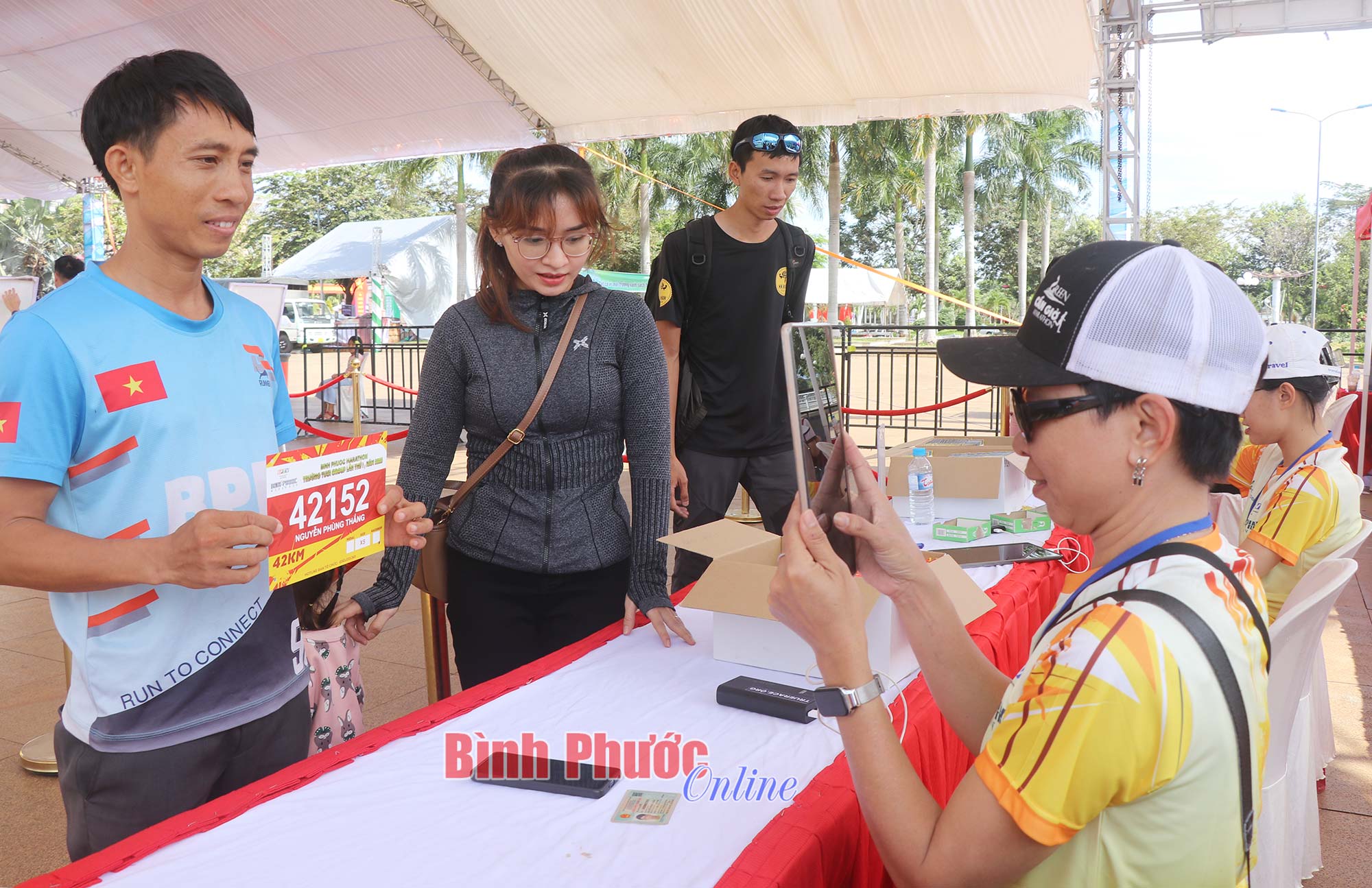 Mặc dù là ngày nghỉ, nhưng nhiều gia đình có mặt ở Quảng trường 6-1 từ rất sớm, làm thủ tục quét QR code, xuất trình CMND/CCCD/hộ chiếu, ký E-waiver (miễn trừ trách nhiệm) điện tử và nhận bib. Đến từ nhiều địa phương trong và ngoài tỉnh, có gia đình đưa cả con cái cùng đi, xem đây là dịp vừa hưởng ứng phong trào thể dục thể thao, rèn luyện sức khỏe, vừa tranh thủ đi thăm cảnh đẹp Phước Long.