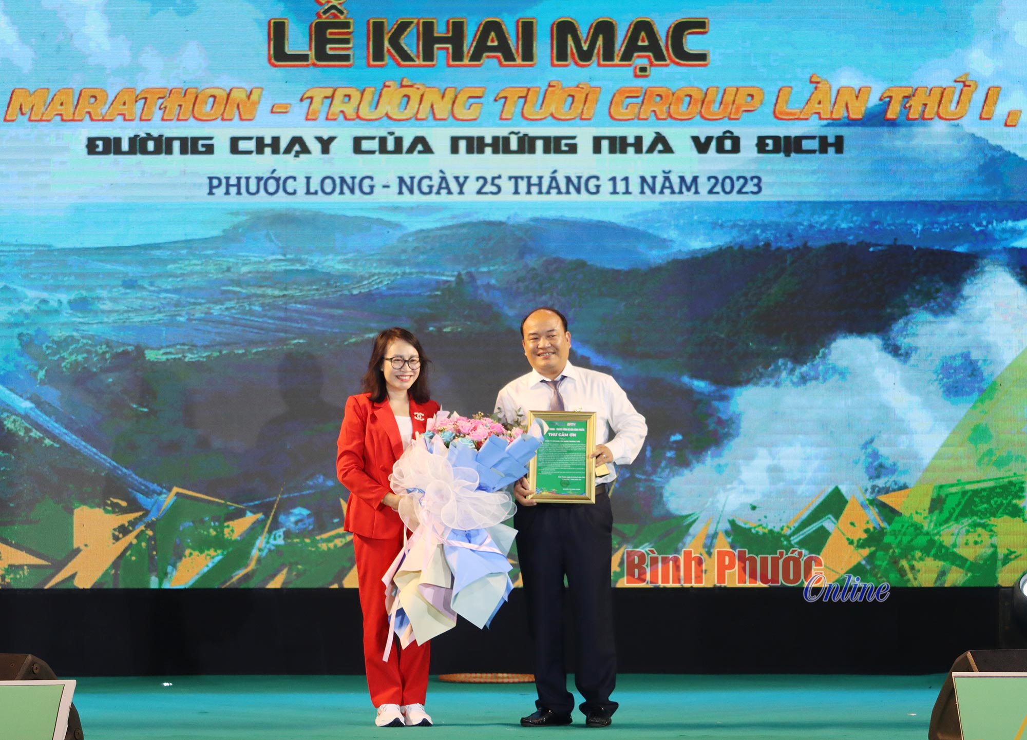 Tối 25-11, tại Quảng trường 6-1, Trung tâm hành chính thị xã Phước Long, tỉnh Bình Phước đã diễn ra lễ khai mạc giải “Bình Phước marathon - Trường Tươi Group lần thứ I, năm 2023”. Lễ khai mạc được truyền hình trực tiếp trên kênh BPTV1, BPTV2 và các hạ tầng số của Đài Phát thanh - Truyền hình và Báo Bình Phước (BPTV).