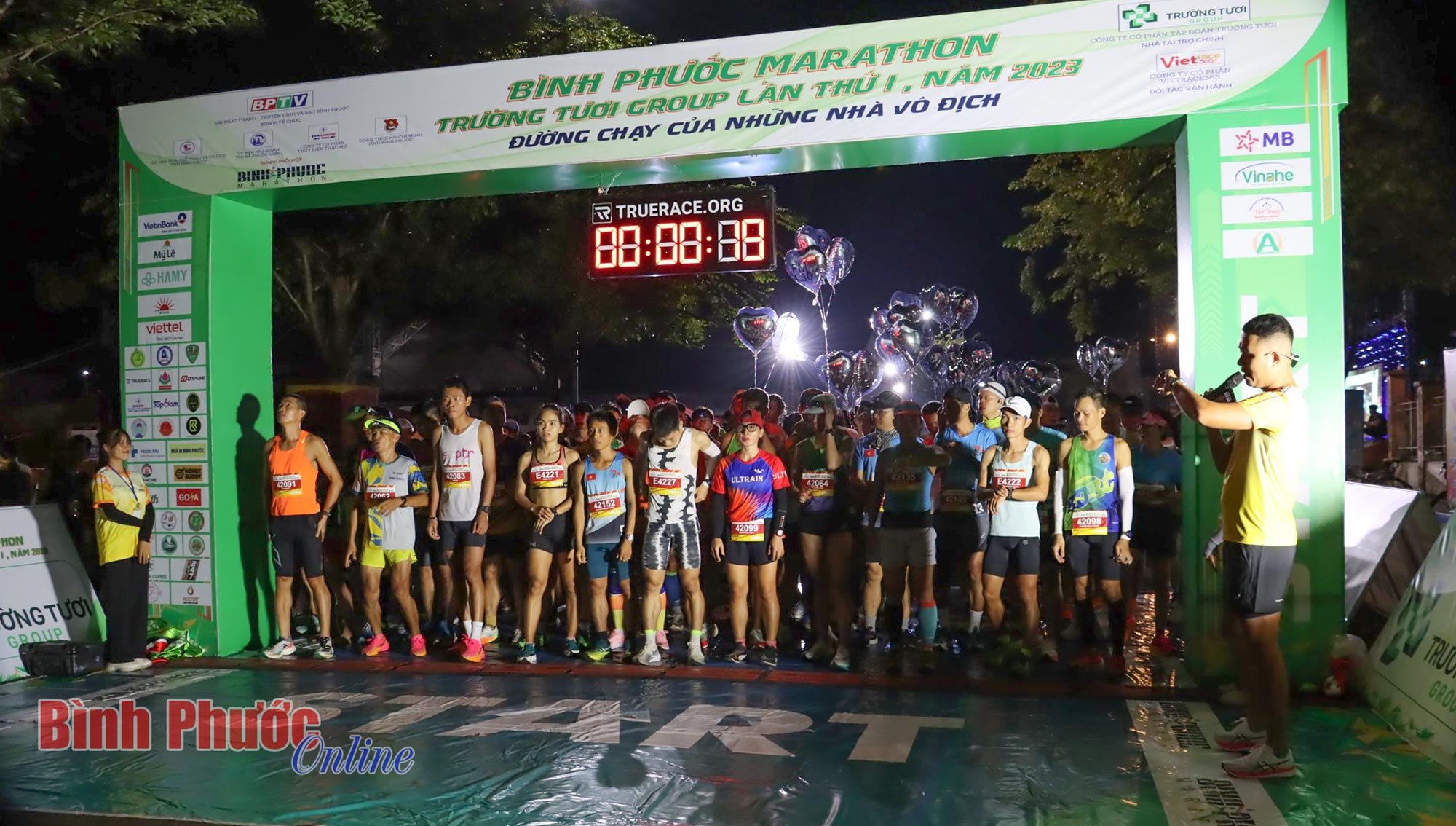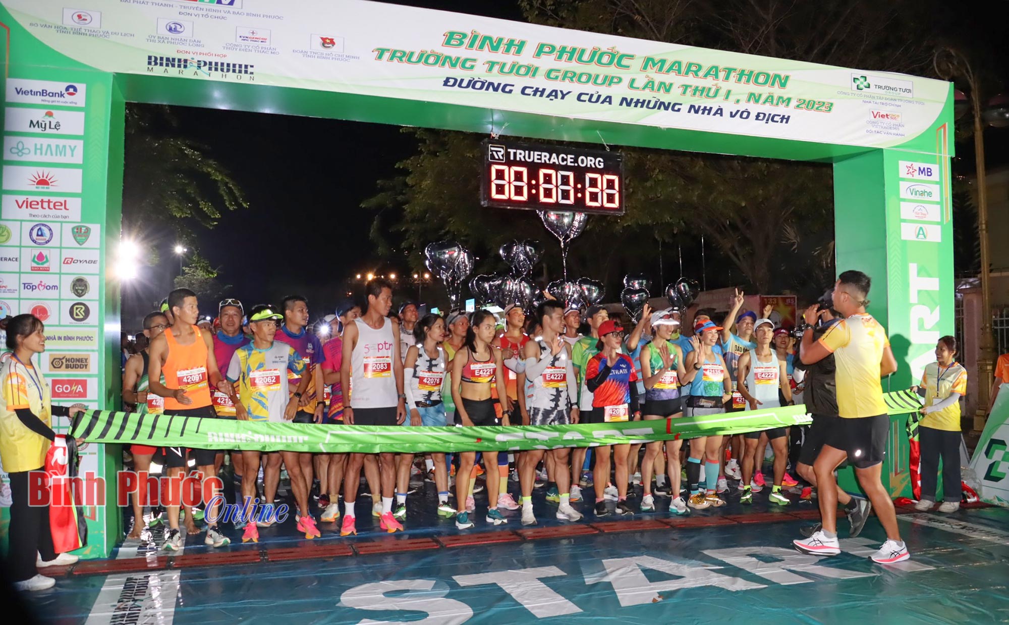 4 giờ sáng 26-11, các VĐV tranh tài ở cự ly 42km Giải Bình Phước marathon - Trường Tươi Group lần thứ I, năm 2023 chính thức xuất phát tại Quảng trường 6-1, Trung tâm hành chính thị xã Phước Long, tỉnh Bình Phước.
