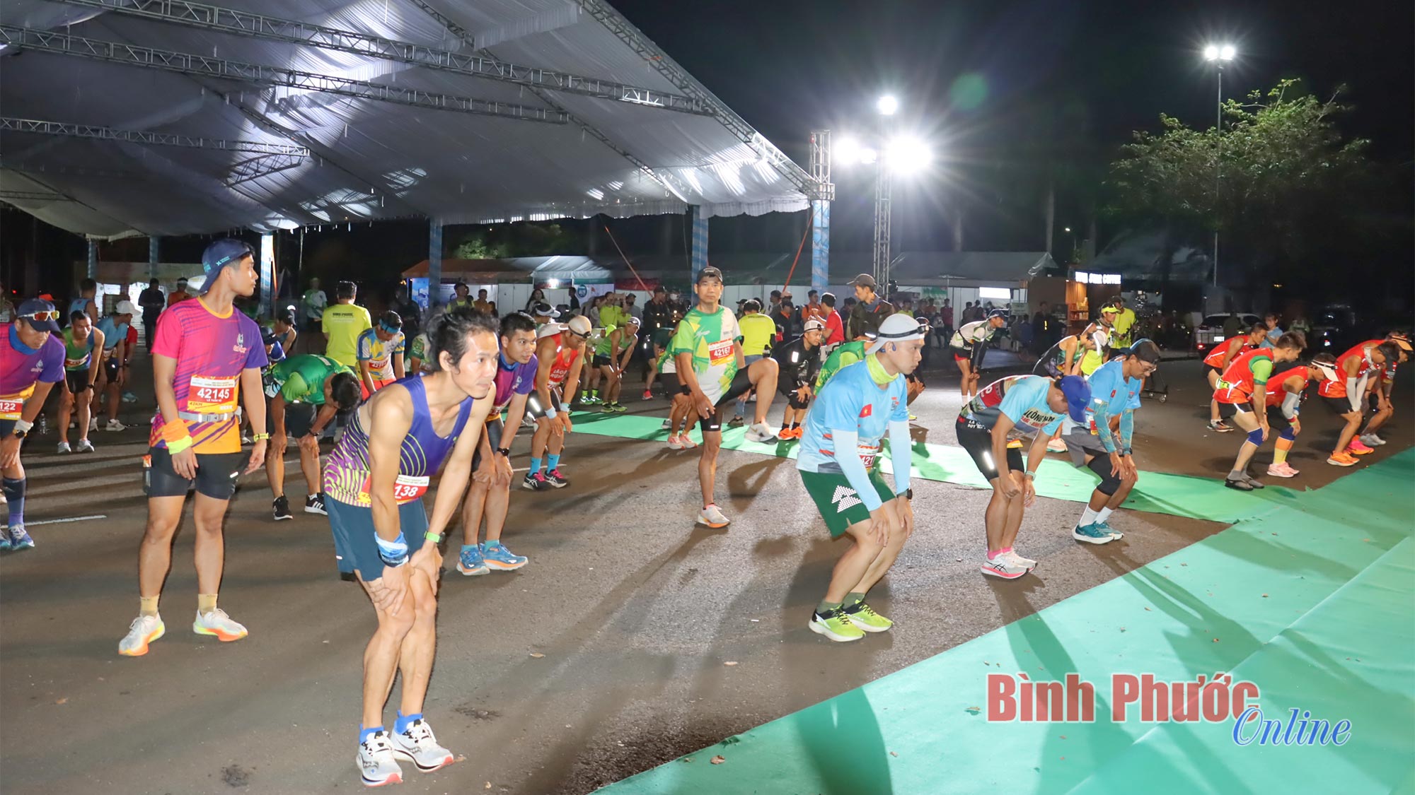Từ 3 giờ sáng các VĐV đã có mặt tại khu vực Quảng trường 6-1, Trung tâm hành chính thị xã Phước Long để khởi động