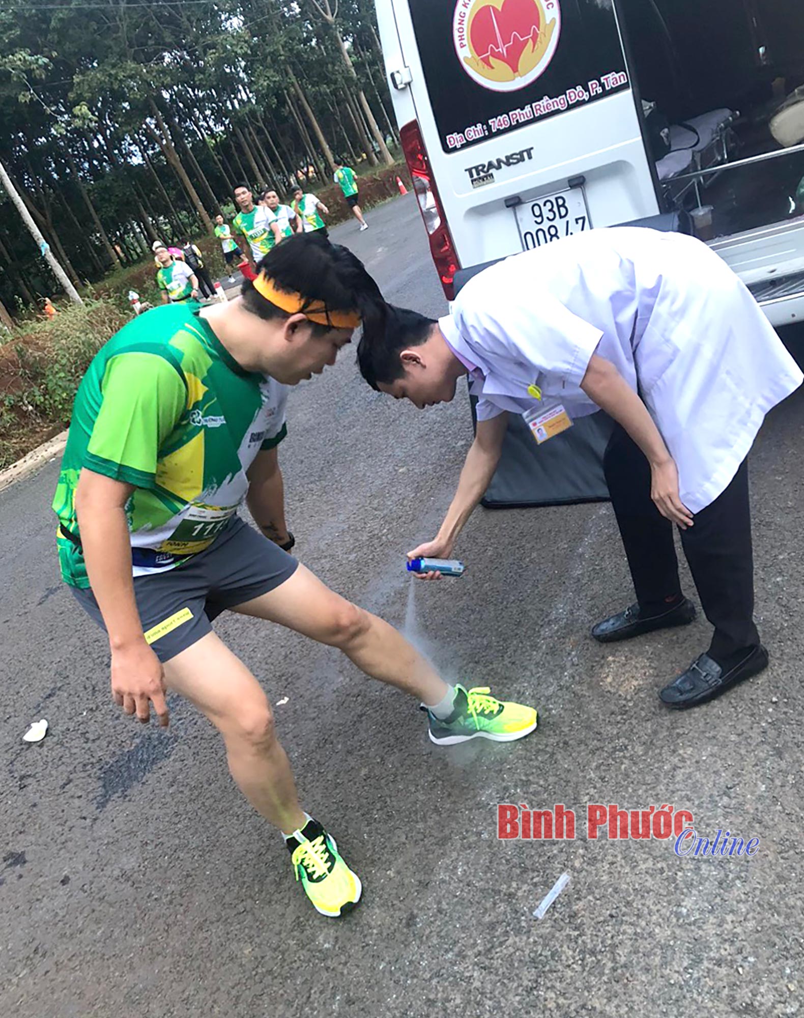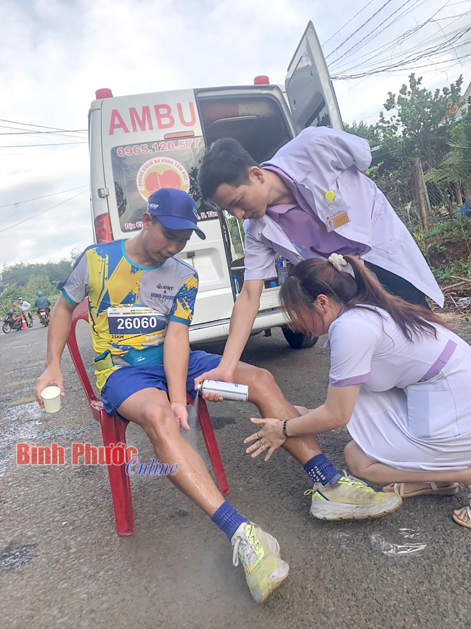 Vận động viên được đội ngũ y tế Phòng khám đa khoa Tâm Đức chăm sóc trên đường chạy