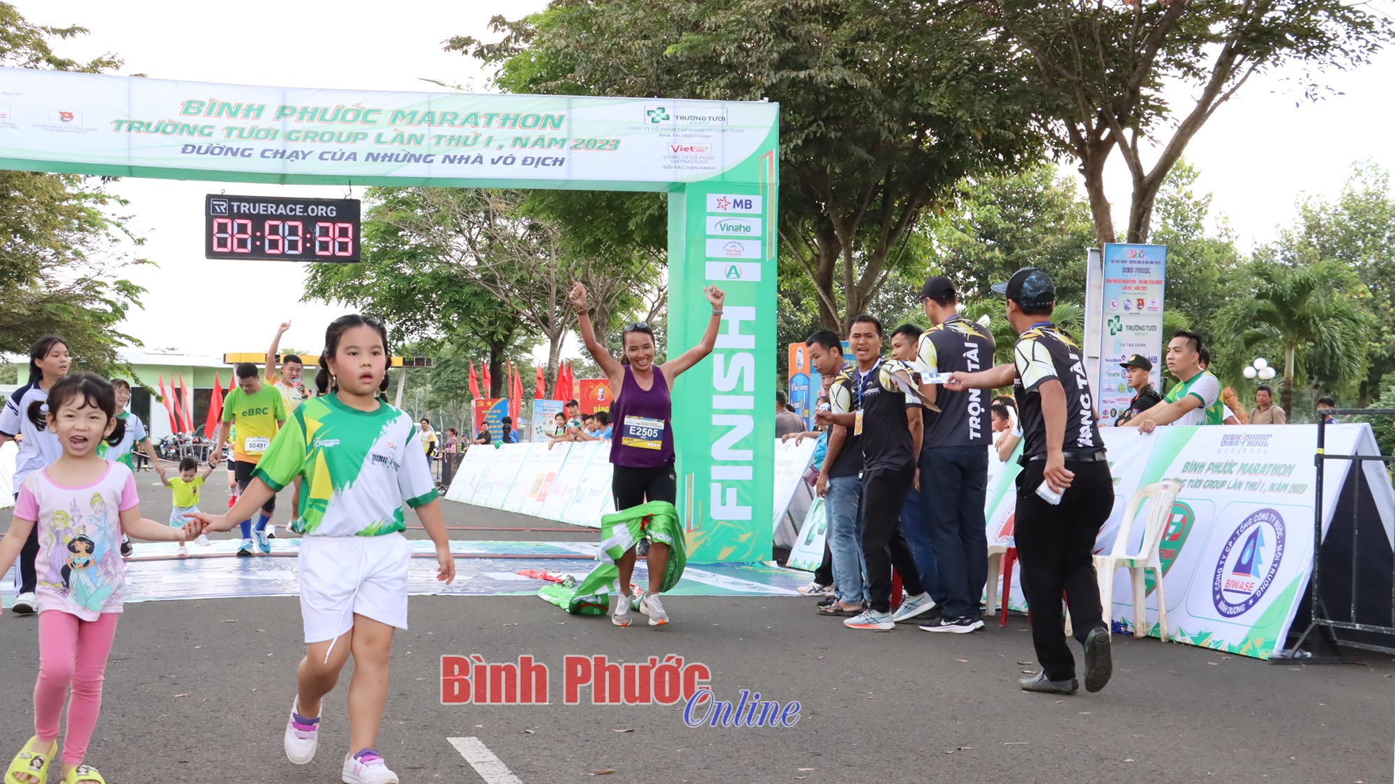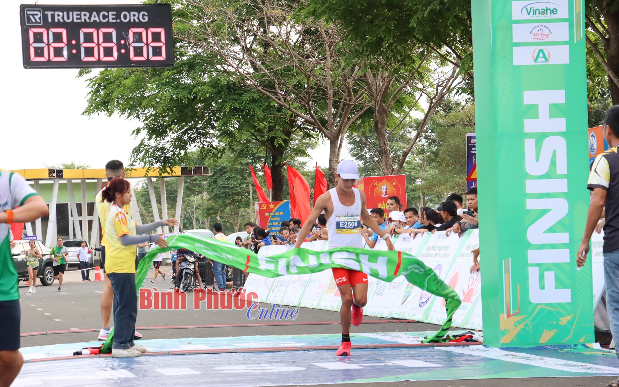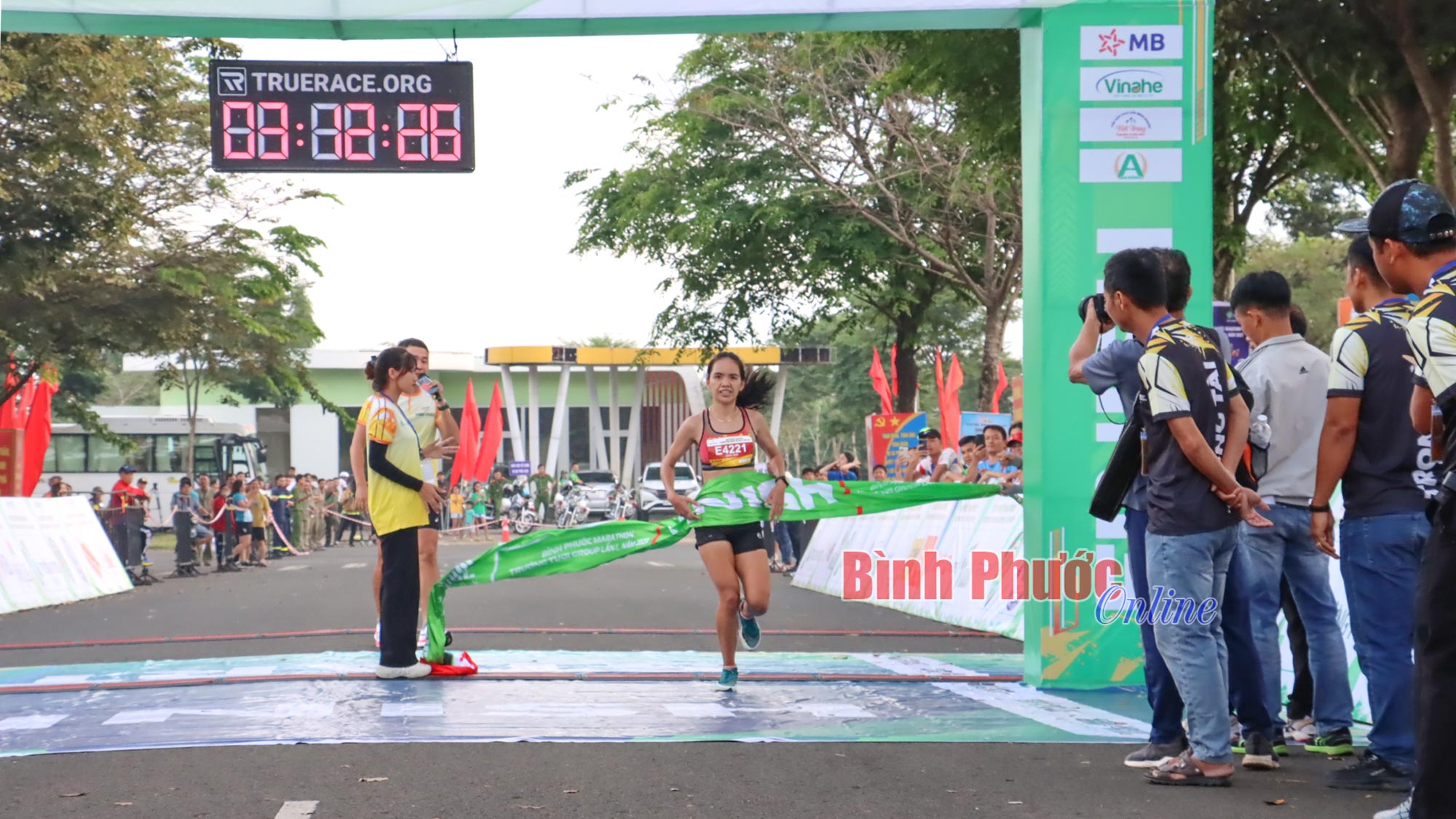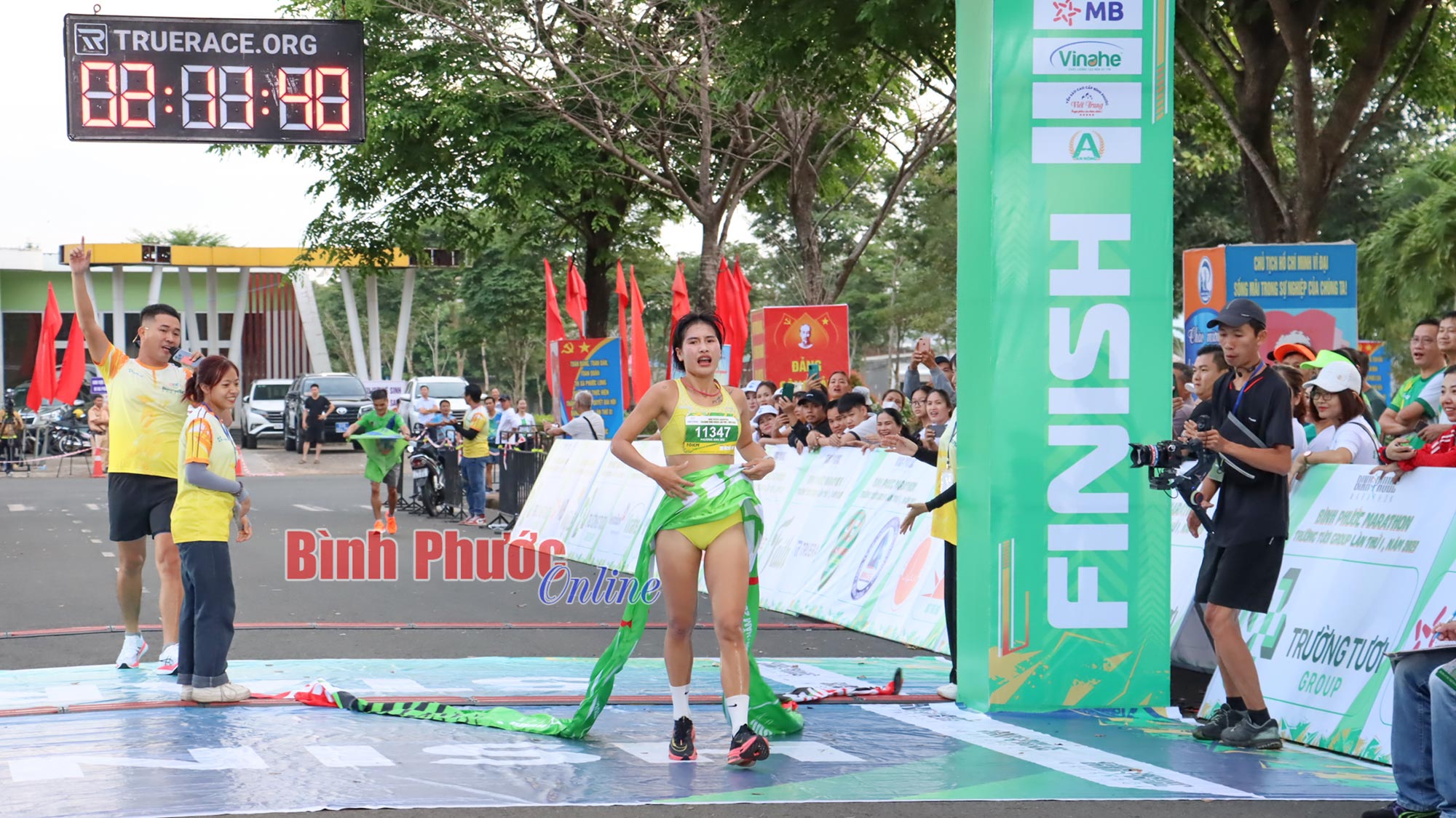 VĐV Hoàng Thị Ngọc Hoa của chủ nhà Bình Phước cán đích đầu tiên ở nội dung nữ chuyên nghiệp 42km với thời gian 3h12’24’’