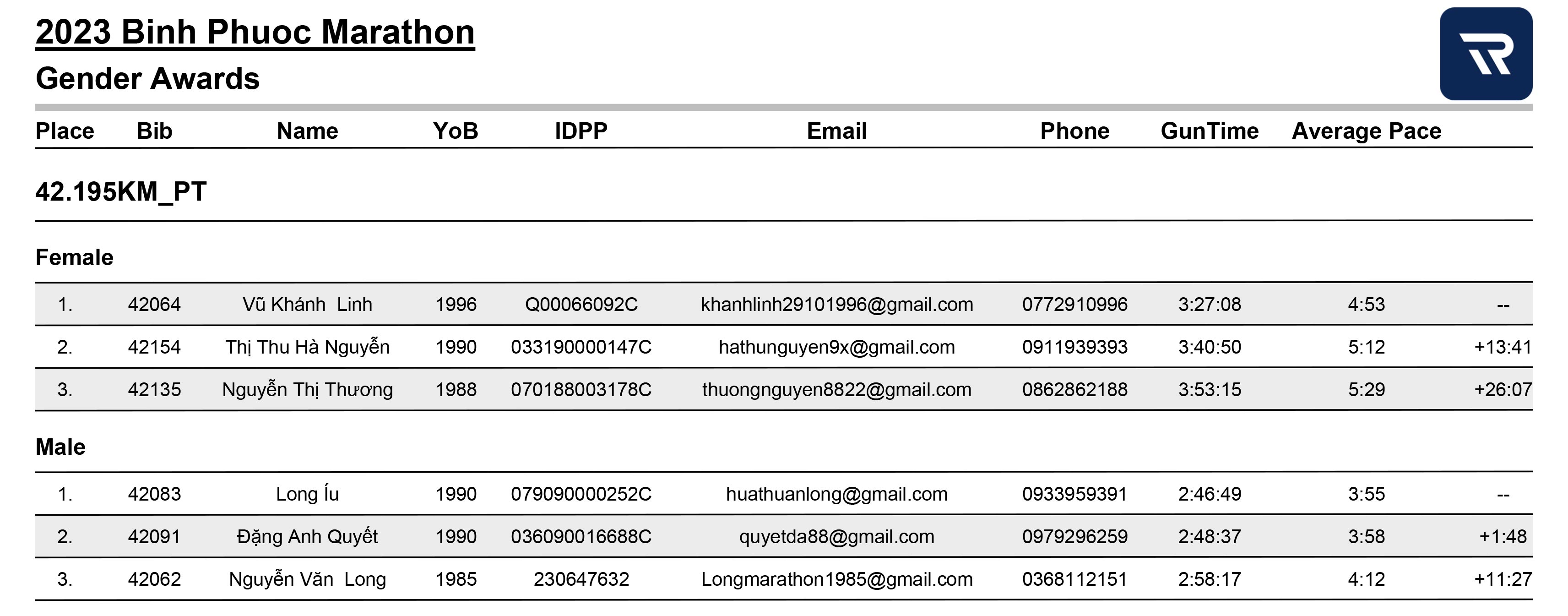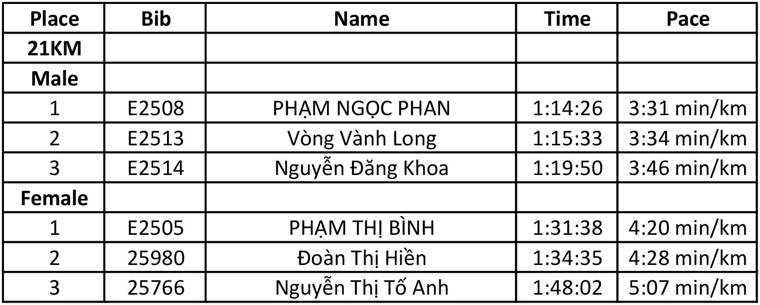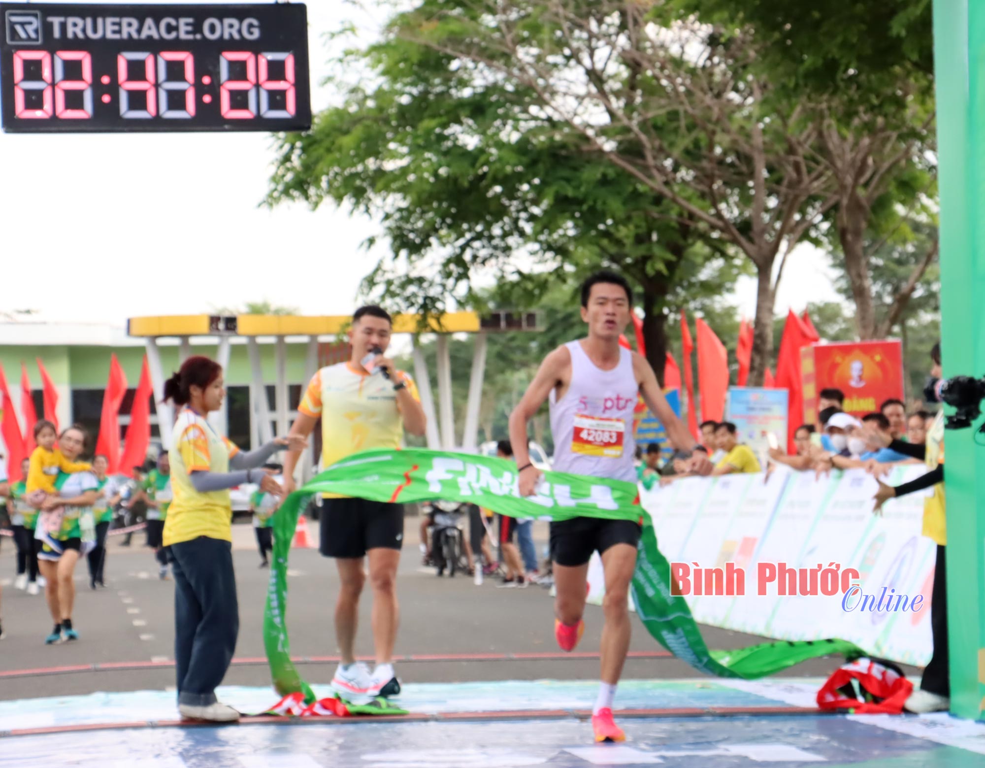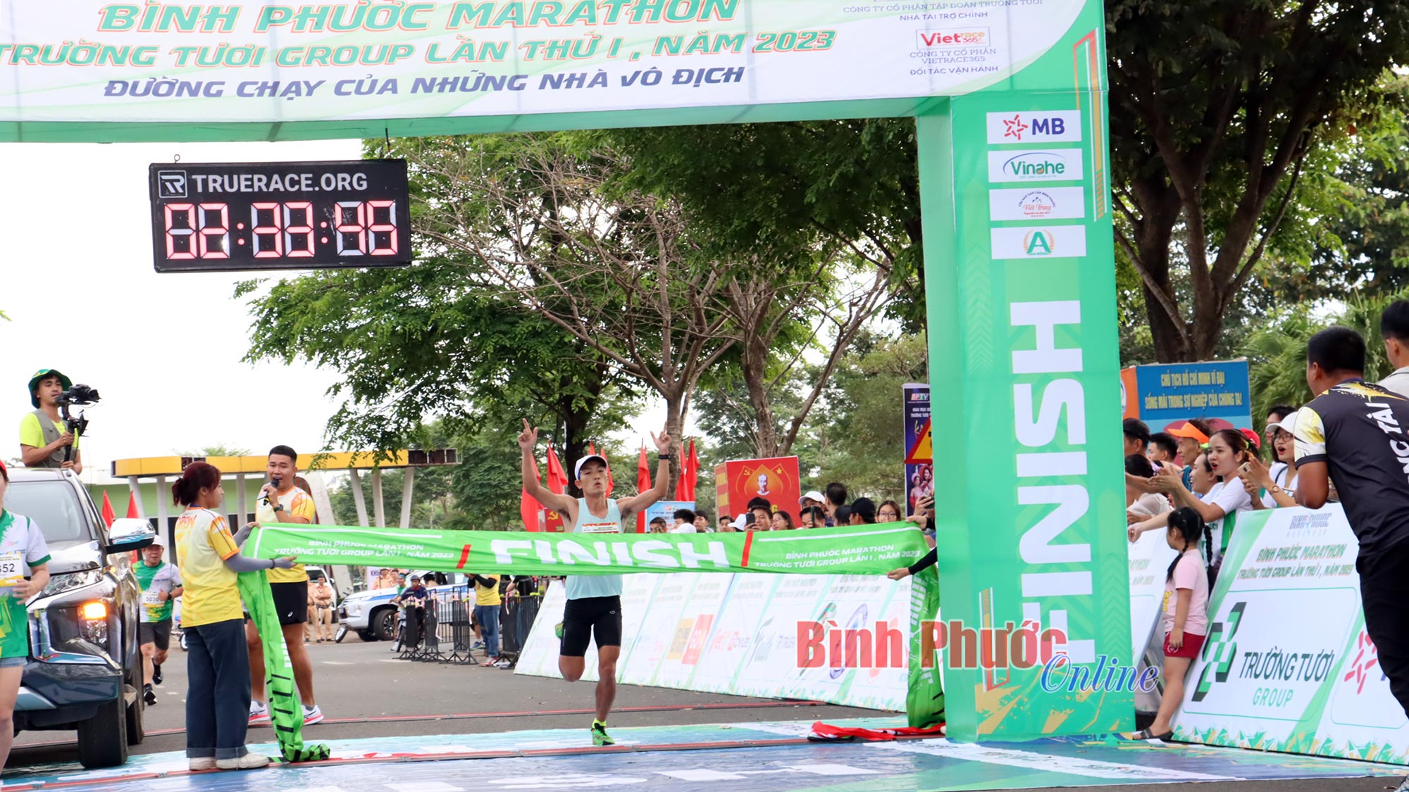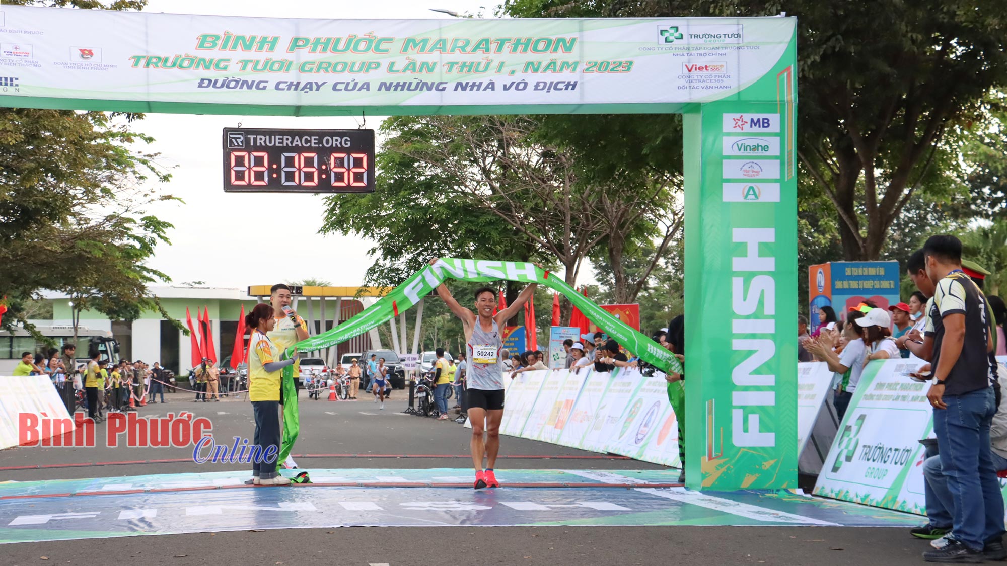 VĐV Hoàng Thị Ngọc Hoa của chủ nhà Bình Phước cán đích đầu tiên ở nội dung nữ chuyên nghiệp 42km với thời gian 3h12’24’’