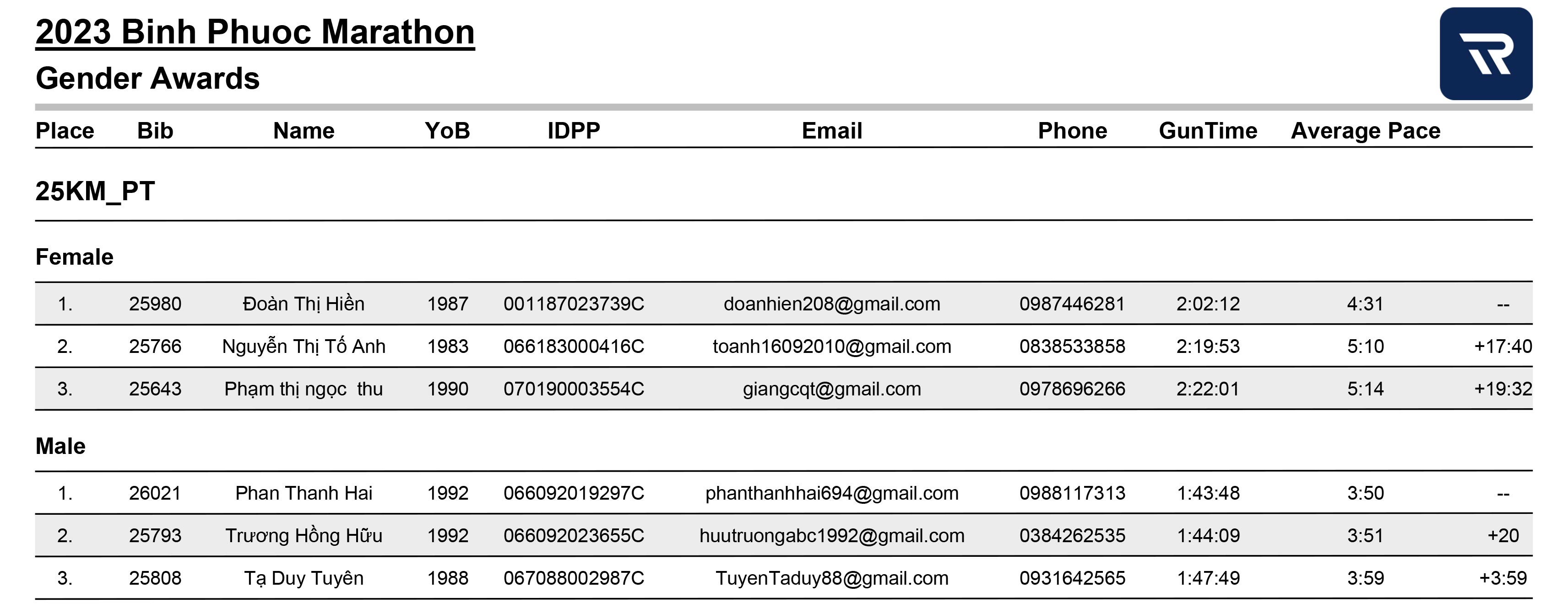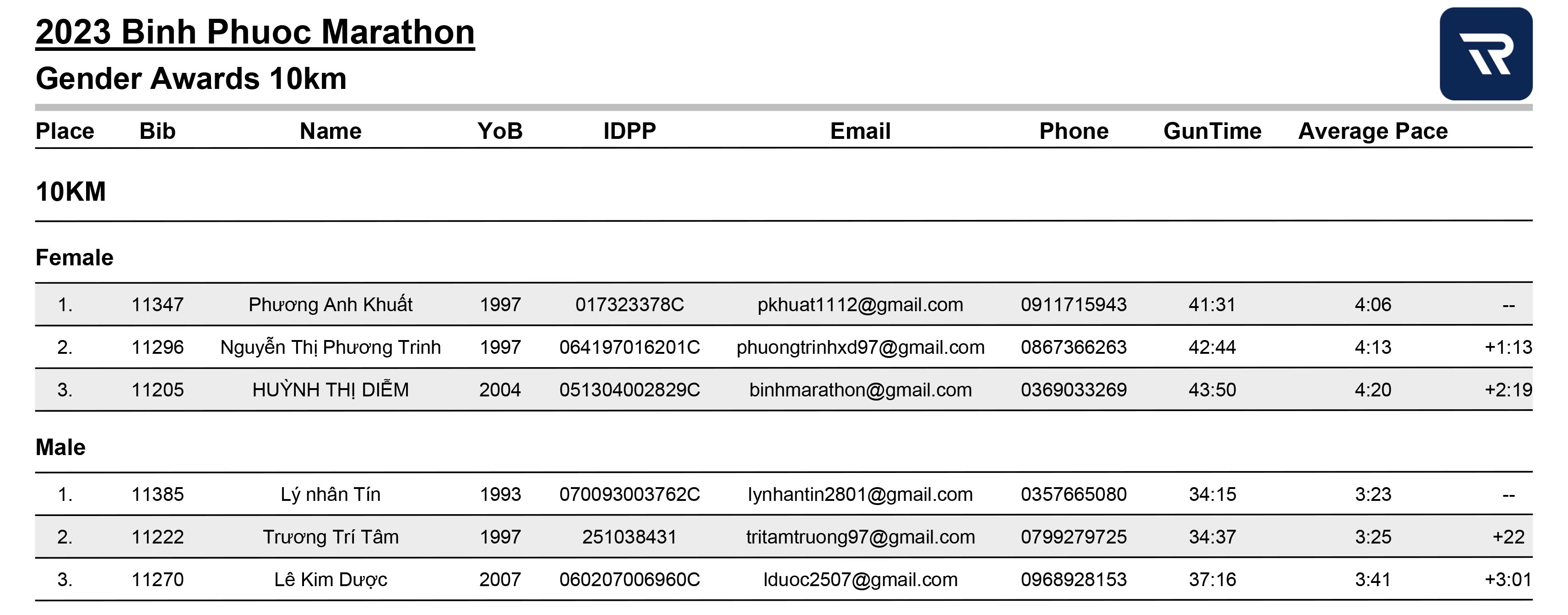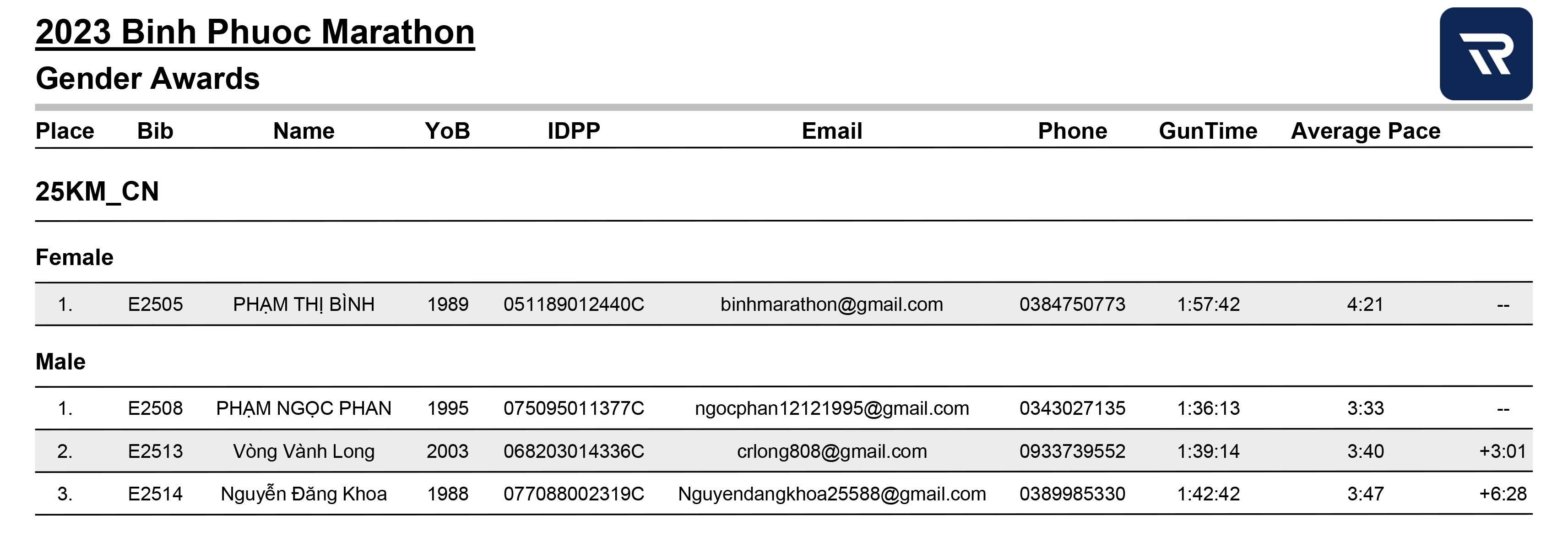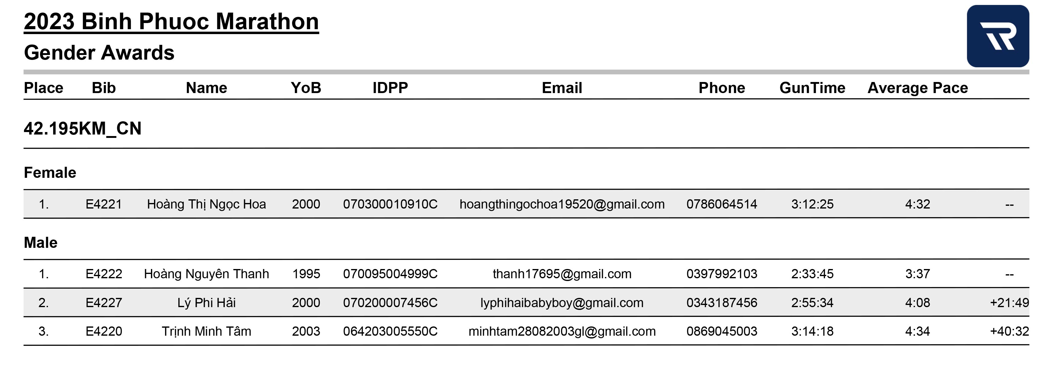 VĐV Hoàng Thị Ngọc Hoa của chủ nhà Bình Phước cán đích đầu tiên ở nội dung nữ chuyên nghiệp 42km với thời gian 3h12’24’’