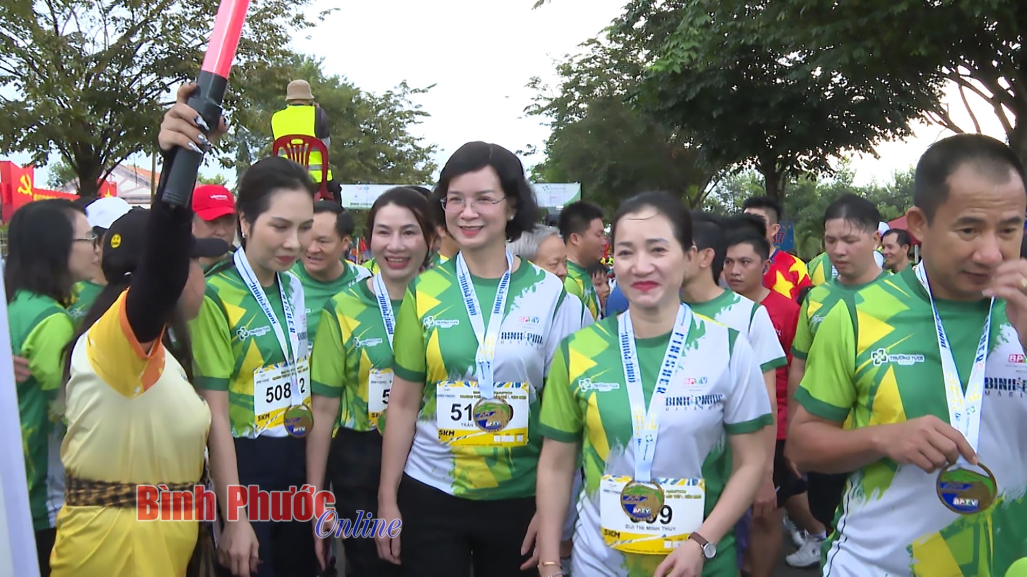 Ủy viên Ban Thường vụ Tỉnh ủy, Phó Chủ tịch UBND tỉnh Trần Tuyết Minh, lãnh đạo các sở, ban, ngành, thị xã Phước Long chinh phục cung đường 5km tại giải