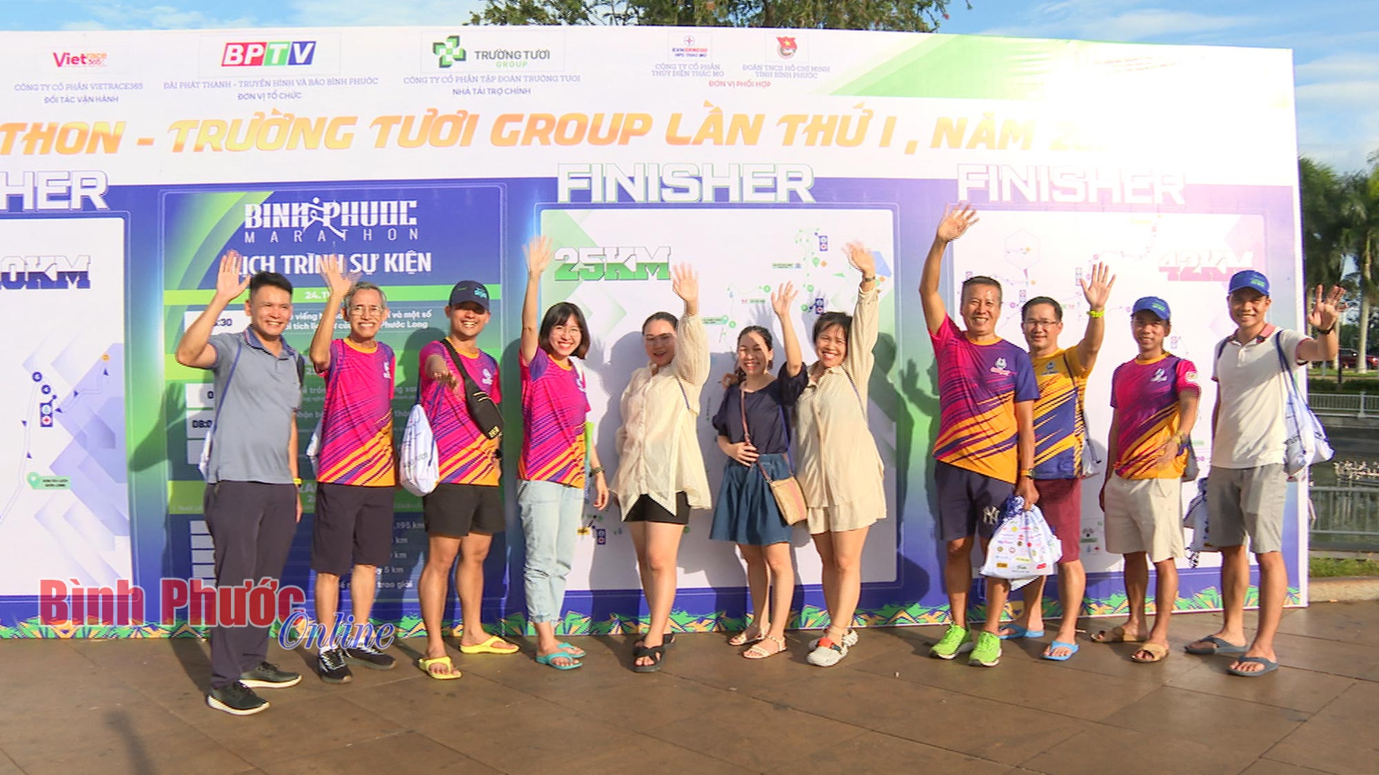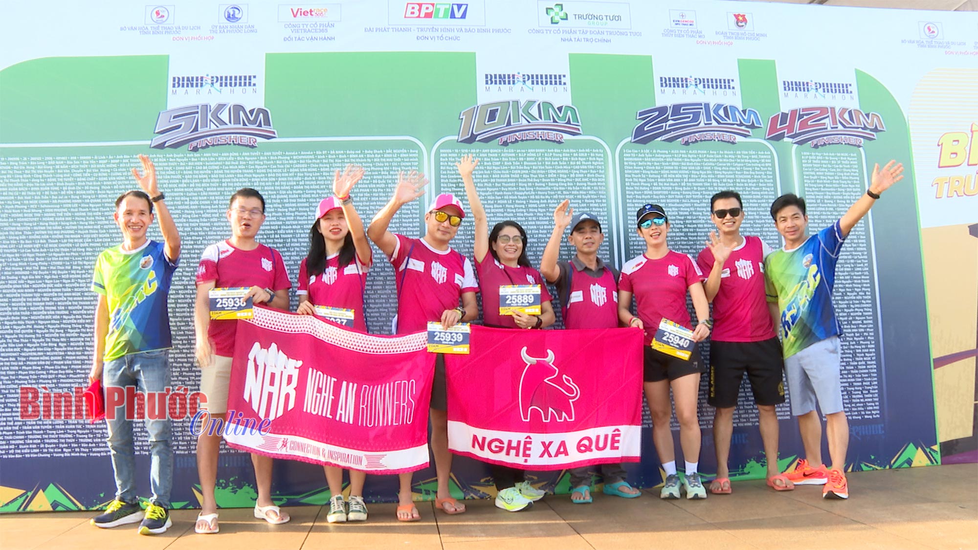 VĐV Huỳnh Thị Hoàng Vy đến từ tỉnh Bình Dương đã chọn cự ly 25km để thử thách bản thân. Không chỉ một mình tham gia giải mà Hoàng Vy còn vận động nhiều người đồng hành với mình. “Nhóm mình đến đây có 9 người, trước khi tham gia giải này, mình có tham gia một số giải chạy khác, mục tiêu là “vượt lên chính mình, chinh phục thử thách” để đạt thời gian chạy trong 3 giờ và mình đã làm được điều đó, mình rất vui và tự hào” - Hoàng Vy hào hứng bày tỏ sau khi hoàn thành lộ trình chạy của mình. VĐV Hoàng Tuệ Minh, 42 tuổi, đến từ thành phố Vinh, tỉnh Nghệ An cho biết: “Chạy bộ luôn có nhiều lợi ích, ngoài vấn đề sức khỏe, đây còn là hoạt động kết nối cộng đồng, là một giá trị tốt đẹp, bởi khi đến với chạy bộ chúng ta có thể kết nối con người với nhau, khám phá những vùng đất vô cùng xinh đẹp”.