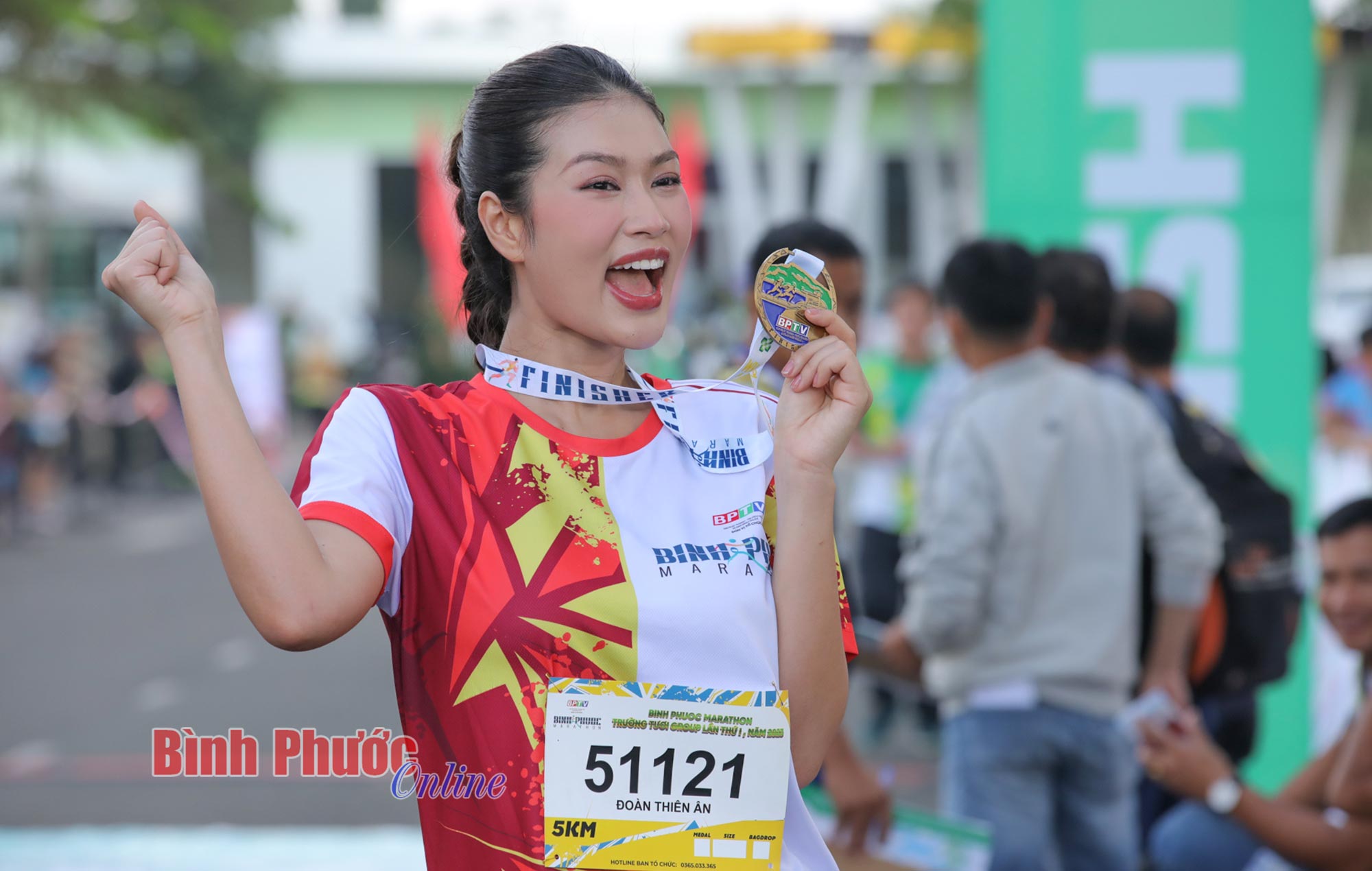 Hoa hậu Hòa Bình Việt Nam 2022 Đoàn Thiên Ân, đại sứ thương hiệu của Giải Bình Phước marathon - Trường Tươi Group lần thứ I, năm 2023. Tham gia ở cự ly 5km, Thiên Ân đã hoàn thành xuất sắc đường chạy của mình với một tinh thần thật tốt. Hoa hậu Hòa Bình Việt Nam 2022 Đoàn Thiên Ân hạnh phúc bày tỏ: “Đây là lần đầu tiên Thiên Ân tham gia một giải marathon với nhiều sự cổ vũ liên tục trong suốt chặng đường chạy nên mình rất vui và hạnh phúc. Tham gia giải chạy này, Thiên Ân muốn lan tỏa tinh thần yêu thể thao đến với mọi người, đặc biệt là đối với chị em phụ nữ. Chúng ta hãy yêu thương bản thân, thường xuyên tập luyện thể thao, tham gia chạy bộ để rèn luyện sức khỏe. Thiên Ân mong muốn tất cả chúng ta có sức khỏe dẻo dai nhất, để có thể phục vụ tốt cho chính đời sống của mình.