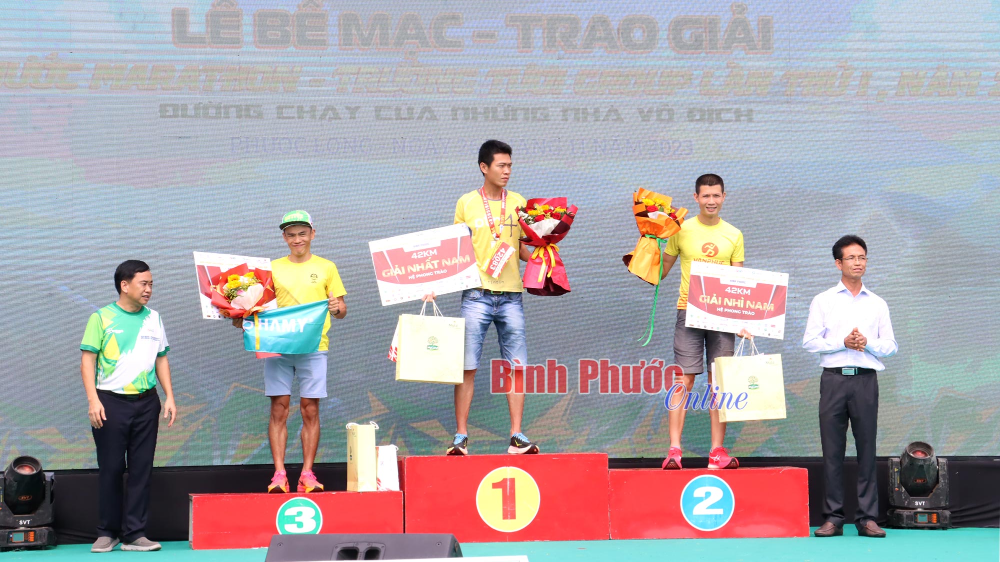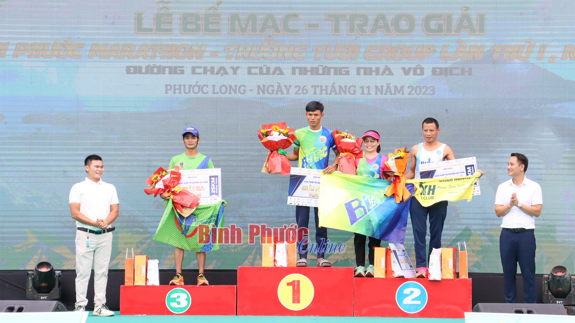 Ban tổ chức trao giải cho các VĐV ở cự ly 42km nam hệ phong trào