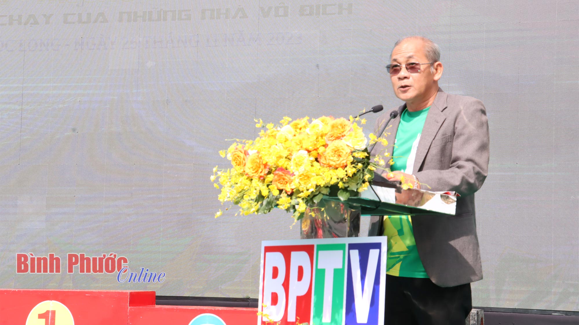 Phó Giám đốc - Phó Tổng biên tập BPTV Phan Văn Thảo báo cáo tổng kết Giải Bình Phước marathon - Trường Tươi Group lần thứ I, năm 2023