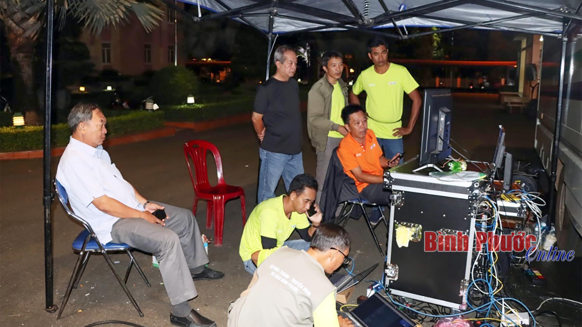 Đội kỹ thuật luôn theo dõi những điểm cầu truyền hình trực tiếp để kịp thời xử lý sự cố