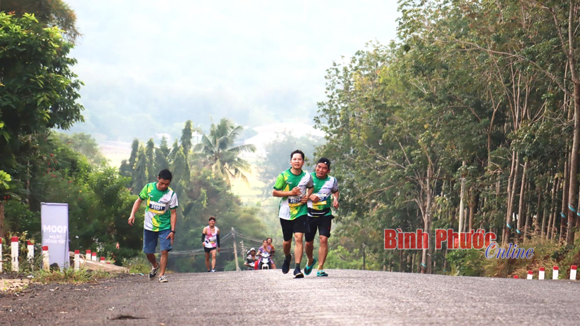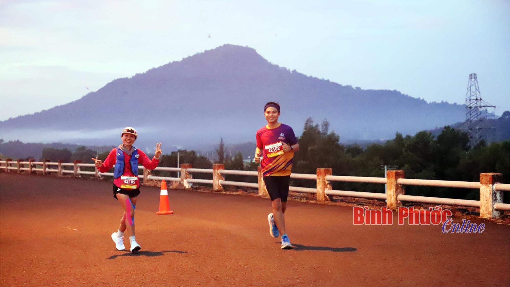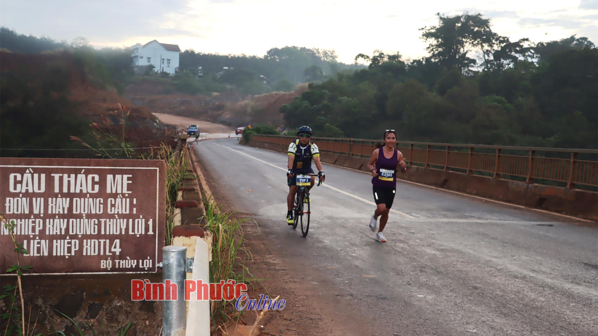 Ở cung đường tiếp theo, các vận động viên chạy và hòa mình vào thiên nhiên với vẻ đẹp của Thủy điện Thác Mơ, đập nước Suối Đá, núi Bà Rá