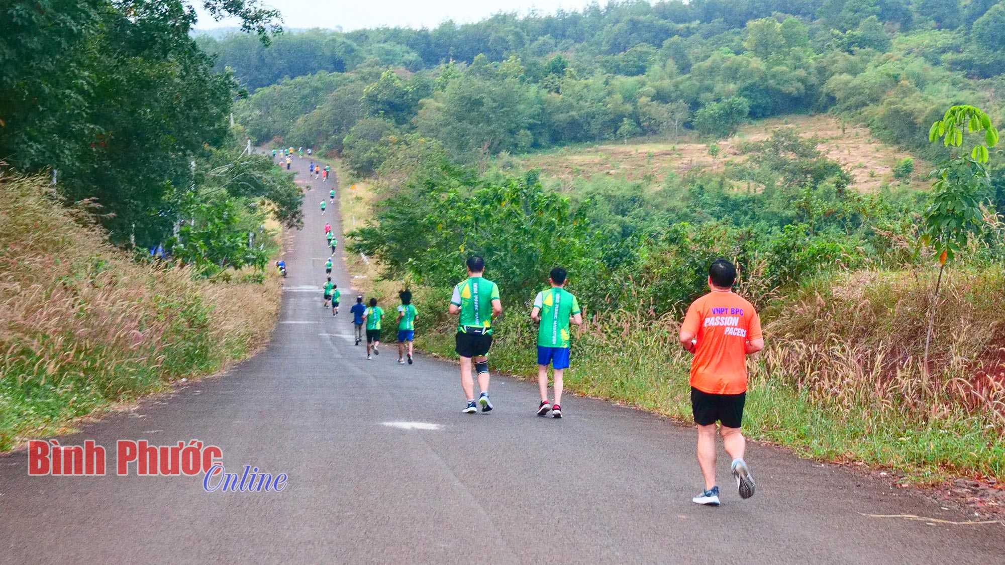 Các VĐV vừa chạy vừa ngắm bình minh và hít thở không khí trong lành nơi chân núi Bà Rá