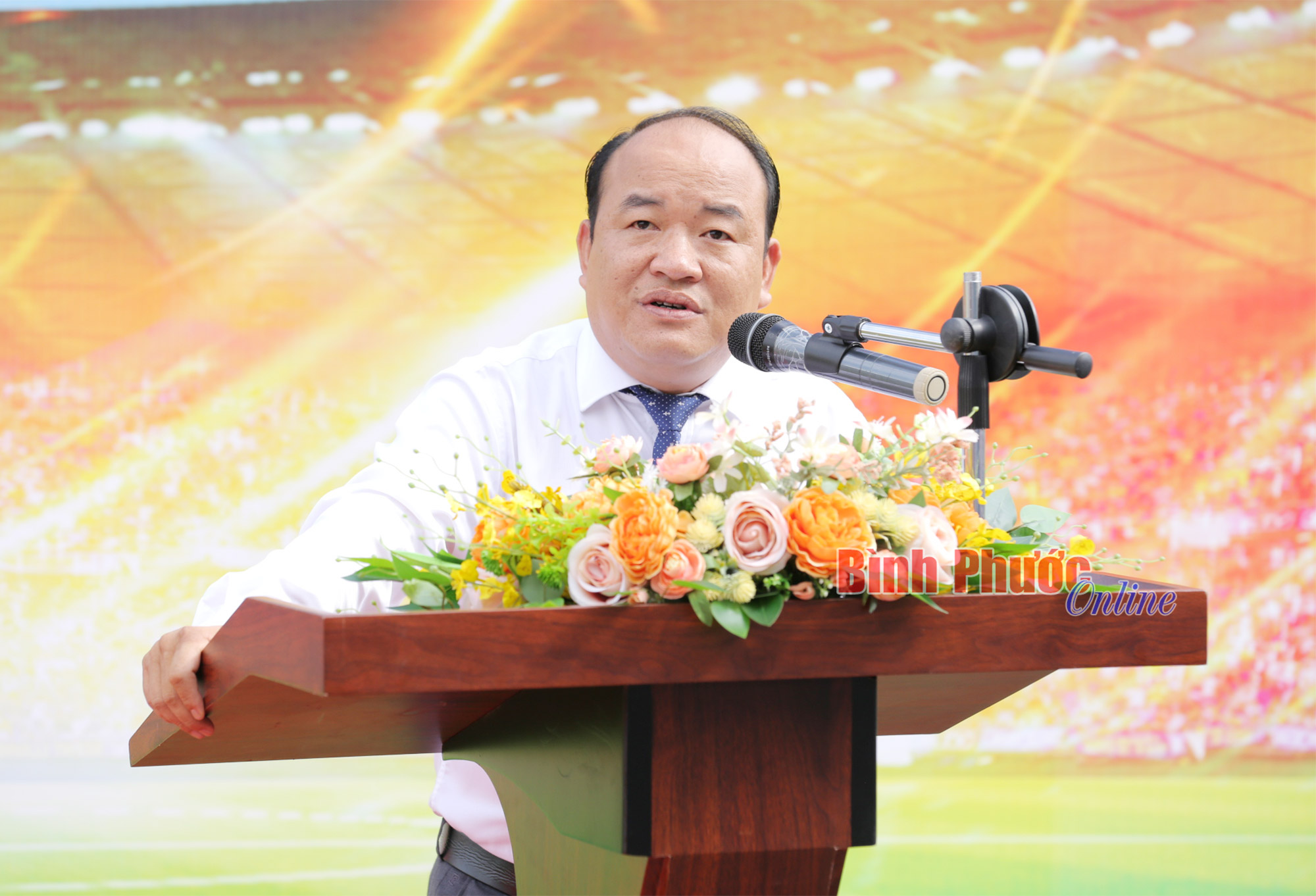 Ông Phạm Hương Sơn, Chủ tịch HĐQT Tập đoàn Trường Tươi, Chủ tịch CLB Bóng đá Trường Tươi Bình Phước phát biểu chào mừng
