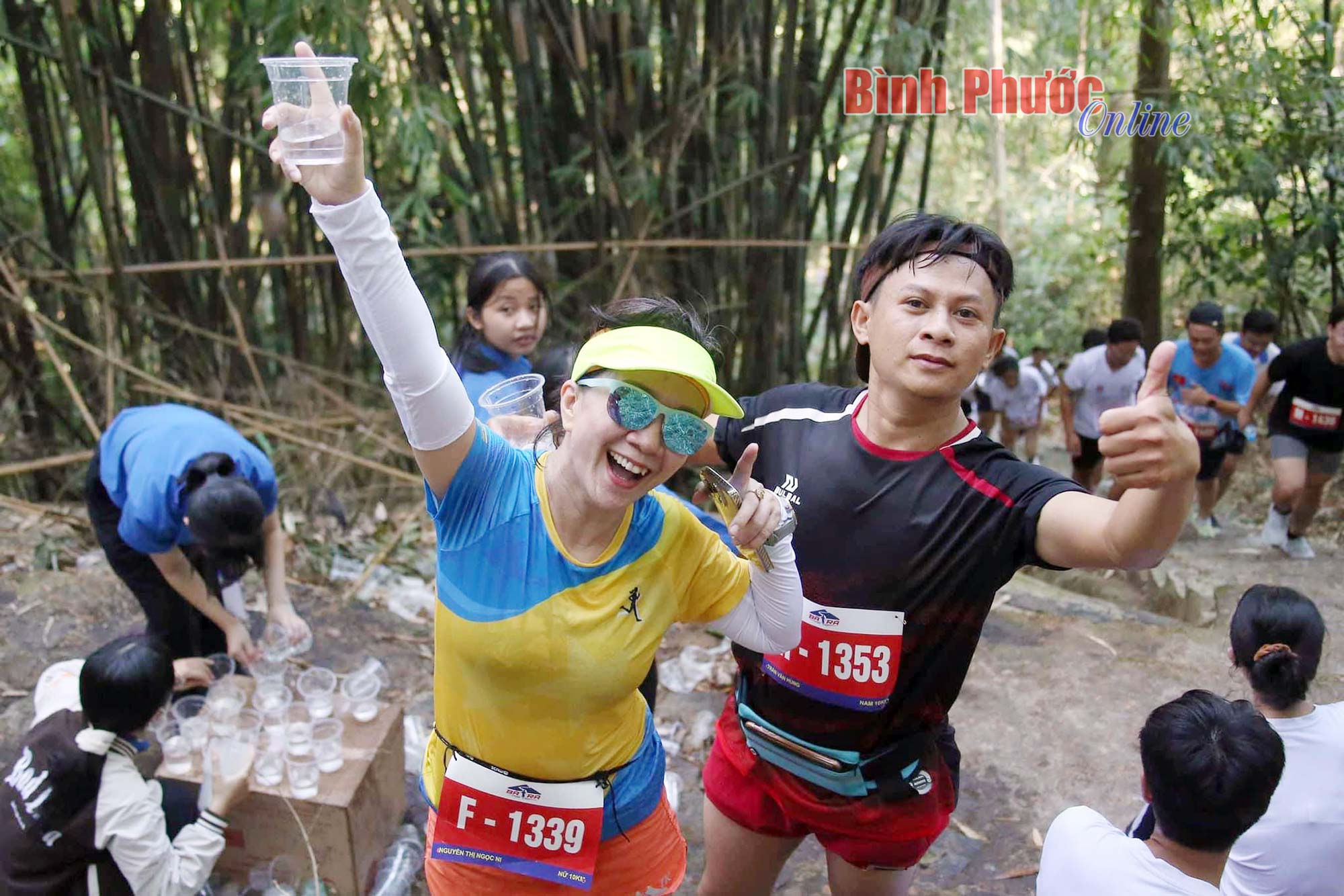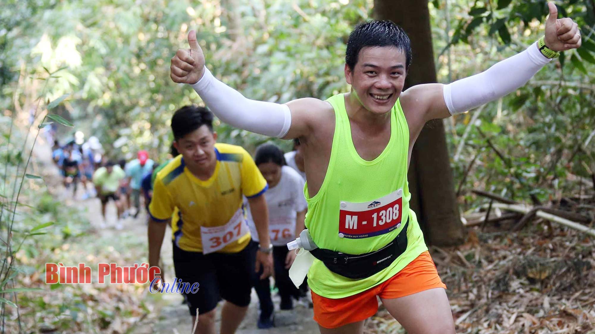 Địa hình phức tạp cũng tạo ra động lực chinh phục cho các VĐV. Ảnh: Nụ cười quyết tâm chinh phục đỉnh cao Bà Rá của VĐV mang số đeo M-1334