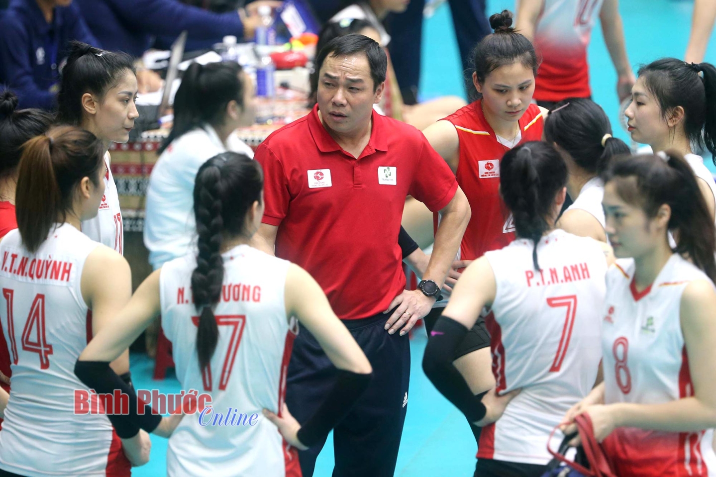HLV Phạm Minh Dũng chỉ đạo các cô gái Binh chủng Thông tin - Trường Tươi Bình Phước trong giờ nghỉ