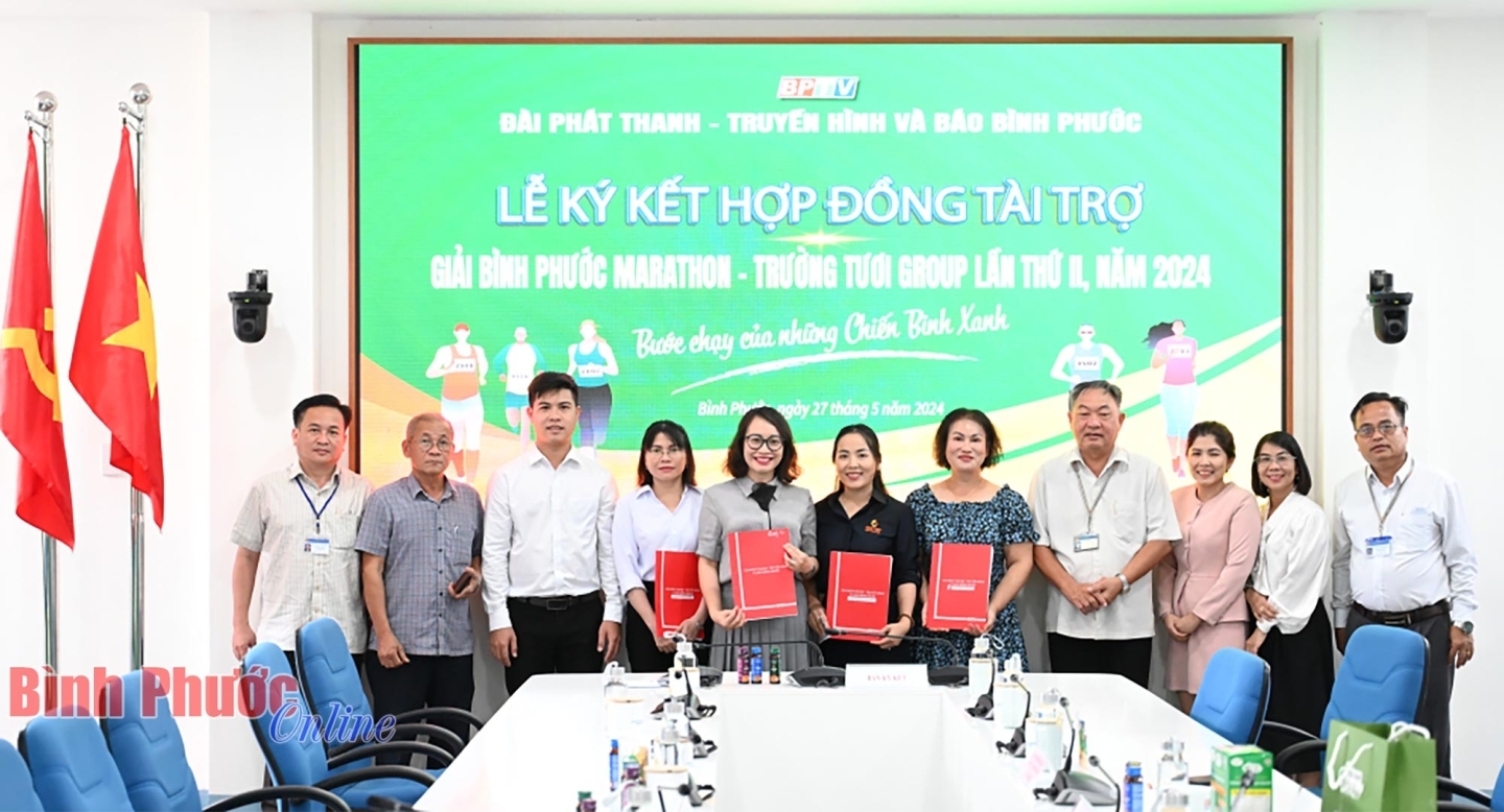 Các doanh nghiệp ký kết đồng hành cùng giải Bình Phước Marathon - Trường Tươi Group lần II, năm 2024 với BPTV