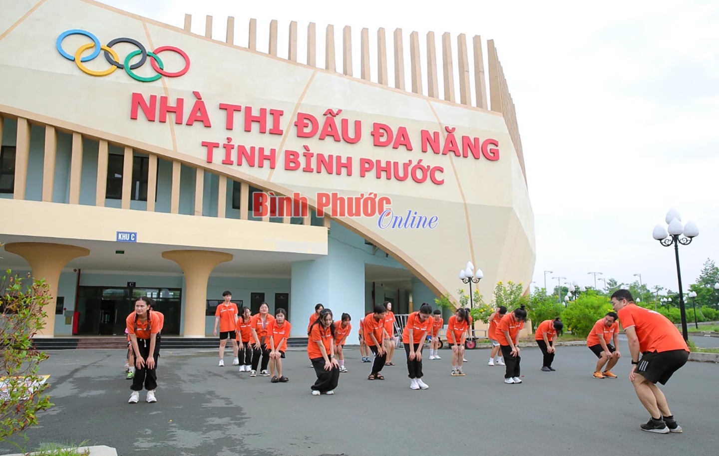 Các thành viên Phổ thông cao đẳng FPT Polytechnic Bình Phước khởi động chuẩn bị một buổi chạy để rèn luyện sức khỏe - Ảnh: Trương Hiện